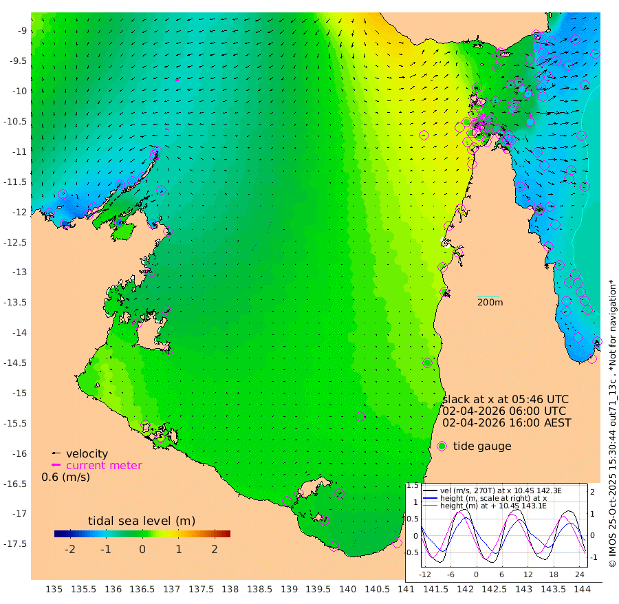 23cm/s -82T +3cm/s rms + 7cm/s -42T. ARA-GOC87 57m 1cm/s 20T +3cm/s rms + 2cm/s -2T. ARA-GOC87 60m 24cm/s -92T +2cm/s rms + 3cm/s 61T. ARA-GOC87 47m -117cm Daru -127cm Bobo Island -90cm Meer Island Barge -117cm Bramble Cay -124cm Unnamed Cay -129cm Pearce Cay -122cm Stephens Island -127cm Merrie England Shoals -122cm Mutacomal Reef -110cm Darnley Island Barge -104cm East Cay -109cm Yorke Island Barge -117cm Rennel Island -118cm Aureed Island -101cm Dungeness Reef -69cm Zagai Island -63cm Yam Island -13cm Dauan Island -12cm Saibai Island -31cm Phipi Reef -67cm Warrior Reef - West -4cm Mabuiag Island Barge -109cm Half Way Island -111cm Coconut Island -106cm Dugong Islet -86cm Poll Island -81cm Kirkcaldie Reef -73cm Suarji Island -71cm Sue Islet 28cm Hawkesbury Island -51cm Alert Patches -59cm Twin Island 11cm Badu Island -47cm St Pauls (Moa Island) -2cm Kubin (Moa Island) -27cm Ince Point -13cm Thursday Island -16cm Nardana Patches -5cm Turtle Head 6cm Round Island 17cm Goods Island 45cm Booby Island 22cm White Rocks Area 62cm Carpentaria -43cm Papou Point 21cm Bampfield Head 52cm Crab Island 39cm Red Wallis Island 3cm Packe Island -119cm Harrington Reef 34cm Herald Camp -3cm Sharp Point 3cm Red Island Point -28cm Possession Island -61cm Alpha Rock -85cm Frederick Point -122cm Wyborn Reef Light -113cm Tetley Island -83cm Triangle Reef -117cm Turtle Head Island -87cm Maclennan Cay -74cm Raine Island -116cm Mcsweeny Reef -109cm Collette Reef -85cm Shadwell Reef -123cm Hannibal Island -123cm Round Point 69cm Vrilya Point -105cm Cape Grenville -101cm Hicks Island -102cm Sir Charles Hardy Island -31cm Harvey Island -101cm Kay Reef -87cm Rocky Island -85cm Chapman Island -75cm Ham Reef -81cm Jubilee Reef -77cm Night Island -79cm Unnamed Reef No. 3 -91cm Morris Island -77cm 1st 3 Mile Opening -81cm Creech Reef -94cm Fife Island -99cm Eden Reef -87cm Stanley Island -104cm Normanby River -122cm Yabooma Island -158cm Hutchison River -123cm Elcho Island -111cm North West Crocodile Island -111cm Cape Wessel -129cm Stevens Island -122cm Guluwuru Island -113cm Hopeful Bay -109cm Auster Point -99cm Two Island Bay -140cm Cadell Strait -150cm Mallison Island -113cm Melville Bay (Gove Harbour) -119cm Truant Island -79cm Cape Arnhem -54cm Cape Grey -39cm Hawk Island -10cm Milner Bay (Groote Eylandt) -1cm Cape Beatrice 32cm West Island 38cm Centre Island 12cm Mornington Island 11cm West Wellesley Islands -11cm Bountiful Island 4cm Albert River Mouth 0cm Sweers Island 13cm Karumba 8cm Nassau River Offshore 10cm Christmas Creek 22cm Archer River 28cm Boyd Point 25cm Weipa (Humbug Point) 50cm Pennefather River 57cm Cullen Point