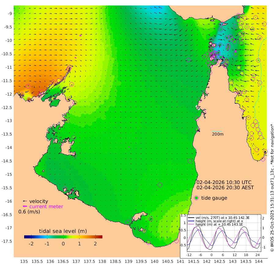 22cm/s 113T +3cm/s rms + 7cm/s -42T. ARA-GOC87 57m 11cm/s -41T +3cm/s rms + 2cm/s -2T. ARA-GOC87 60m 26cm/s 101T +2cm/s rms + 3cm/s 61T. ARA-GOC87 47m 15cm Daru 27cm Bobo Island 53cm Meer Island Barge 62cm Bramble Cay 39cm Unnamed Cay 43cm Pearce Cay 45cm Stephens Island 53cm Merrie England Shoals 23cm Mutacomal Reef 38cm Darnley Island Barge 66cm East Cay 20cm Yorke Island Barge 30cm Rennel Island 17cm Aureed Island 2cm Dungeness Reef -46cm Zagai Island -47cm Yam Island -75cm Dauan Island -79cm Saibai Island -46cm Phipi Reef -49cm Warrior Reef - West -57cm Mabuiag Island Barge 21cm Half Way Island 9cm Coconut Island 4cm Dugong Islet -20cm Poll Island -13cm Kirkcaldie Reef -46cm Suarji Island -31cm Sue Islet -2cm Hawkesbury Island -32cm Alert Patches -36cm Twin Island -6cm Badu Island -55cm St Pauls (Moa Island) -23cm Kubin (Moa Island) -39cm Ince Point -35cm Thursday Island -38cm Nardana Patches -16cm Turtle Head -12cm Round Island 3cm Goods Island -1cm Booby Island 7cm White Rocks Area -38cm Carpentaria -38cm Papou Point 0cm Bampfield Head 8cm Crab Island -5cm Red Wallis Island -10cm Packe Island 9cm Harrington Reef -21cm Herald Camp -28cm Sharp Point -2cm Red Island Point -24cm Possession Island -37cm Alpha Rock -16cm Frederick Point 16cm Wyborn Reef Light 4cm Tetley Island 38cm Triangle Reef 25cm Turtle Head Island 45cm Maclennan Cay 65cm Raine Island 36cm Mcsweeny Reef 44cm Collette Reef 51cm Shadwell Reef 53cm Hannibal Island 71cm Round Point 0cm Vrilya Point 57cm Cape Grenville 59cm Hicks Island 47cm Sir Charles Hardy Island 16cm Harvey Island 69cm Kay Reef 63cm Rocky Island 70cm Chapman Island 60cm Ham Reef 60cm Jubilee Reef 53cm Night Island 65cm Unnamed Reef No. 3 68cm Morris Island 59cm 1st 3 Mile Opening 61cm Creech Reef 70cm Fife Island 82cm Eden Reef 69cm Stanley Island 79cm Normanby River 158cm Yabooma Island 184cm Hutchison River 158cm Elcho Island 150cm North West Crocodile Island 85cm Cape Wessel 145cm Stevens Island 72cm Guluwuru Island 136cm Hopeful Bay 108cm Auster Point 96cm Two Island Bay 149cm Cadell Strait 65cm Mallison Island 74cm Melville Bay (Gove Harbour) 74cm Truant Island 42cm Cape Arnhem 29cm Cape Grey 22cm Hawk Island -2cm Milner Bay (Groote Eylandt) -4cm Cape Beatrice -43cm West Island -40cm Centre Island -3cm Mornington Island -8cm West Wellesley Islands 5cm Bountiful Island 29cm Albert River Mouth 32cm Sweers Island 32cm Karumba 8cm Nassau River Offshore 7cm Christmas Creek 22cm Archer River -1cm Boyd Point 13cm Weipa (Humbug Point) 13cm Pennefather River -12cm Cullen Point