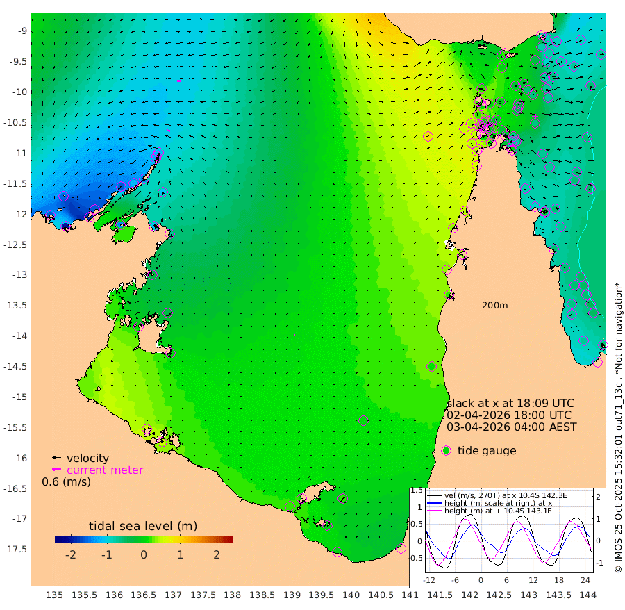 23cm/s -81T +3cm/s rms + 7cm/s -42T. ARA-GOC87 57m 7cm/s 66T +3cm/s rms + 2cm/s -2T. ARA-GOC87 60m 24cm/s -99T +2cm/s rms + 3cm/s 61T. ARA-GOC87 47m -76cm Daru -86cm Bobo Island -58cm Meer Island Barge -84cm Bramble Cay -80cm Unnamed Cay -92cm Pearce Cay -82cm Stephens Island -89cm Merrie England Shoals -81cm Mutacomal Reef -70cm Darnley Island Barge -73cm East Cay -66cm Yorke Island Barge -78cm Rennel Island -71cm Aureed Island -57cm Dungeness Reef -25cm Zagai Island -24cm Yam Island 12cm Dauan Island 17cm Saibai Island -5cm Phipi Reef -30cm Warrior Reef - West 21cm Mabuiag Island Barge -70cm Half Way Island -66cm Coconut Island -62cm Dugong Islet -45cm Poll Island -43cm Kirkcaldie Reef -13cm Suarji Island -30cm Sue Islet 15cm Hawkesbury Island -12cm Alert Patches -19cm Twin Island 20cm Badu Island -6cm St Pauls (Moa Island) 10cm Kubin (Moa Island) 2cm Ince Point 14cm Thursday Island 11cm Nardana Patches 15cm Turtle Head 17cm Round Island 26cm Goods Island 52cm Booby Island 36cm White Rocks Area 84cm Carpentaria -12cm Papou Point 50cm Bampfield Head 41cm Crab Island 40cm Red Wallis Island 12cm Packe Island -71cm Harrington Reef 40cm Herald Camp 5cm Sharp Point 5cm Red Island Point -1cm Possession Island -23cm Alpha Rock -44cm Frederick Point -79cm Wyborn Reef Light -72cm Tetley Island -55cm Triangle Reef -78cm Turtle Head Island -53cm Maclennan Cay -50cm Raine Island -75cm Mcsweeny Reef -72cm Collette Reef -55cm Shadwell Reef -82cm Hannibal Island -92cm Round Point 54cm Vrilya Point -70cm Cape Grenville -69cm Hicks Island -59cm Sir Charles Hardy Island -21cm Harvey Island -68cm Kay Reef -57cm Rocky Island -58cm Chapman Island -50cm Ham Reef -53cm Jubilee Reef -52cm Night Island -54cm Unnamed Reef No. 3 -61cm Morris Island -42cm 1st 3 Mile Opening -51cm Creech Reef -71cm Fife Island -69cm Eden Reef -58cm Stanley Island -75cm Normanby River -158cm Yabooma Island -195cm Hutchison River -162cm Elcho Island -157cm North West Crocodile Island -114cm Cape Wessel -161cm Stevens Island -113cm Guluwuru Island -144cm Hopeful Bay -123cm Auster Point -126cm Two Island Bay -185cm Cadell Strait -139cm Mallison Island -106cm Melville Bay (Gove Harbour) -110cm Truant Island -68cm Cape Arnhem -37cm Cape Grey -36cm Hawk Island 9cm Milner Bay (Groote Eylandt) 7cm Cape Beatrice 54cm West Island 59cm Centre Island 13cm Mornington Island 22cm West Wellesley Islands 16cm Bountiful Island -6cm Albert River Mouth -4cm Sweers Island -11cm Karumba 6cm Nassau River Offshore 11cm Christmas Creek 15cm Archer River 30cm Boyd Point 28cm Weipa (Humbug Point) 30cm Pennefather River 50cm Cullen Point