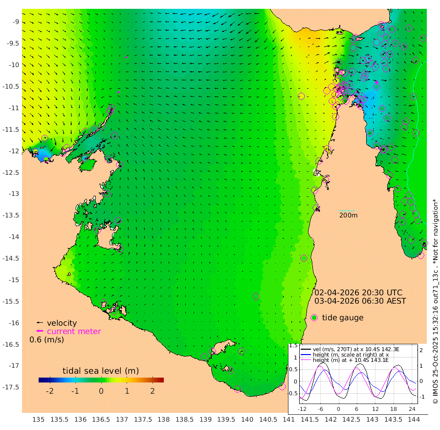 23cm/s -97T +3cm/s rms + 7cm/s -42T. ARA-GOC87 57m 2cm/s -80T +3cm/s rms + 2cm/s -2T. ARA-GOC87 60m 22cm/s -114T +2cm/s rms + 3cm/s 61T. ARA-GOC87 47m -77cm Daru -84cm Bobo Island -14cm Meer Island Barge -30cm Bramble Cay -48cm Unnamed Cay -70cm Pearce Cay -50cm Stephens Island -44cm Merrie England Shoals -64cm Mutacomal Reef -46cm Darnley Island Barge -17cm East Cay -62cm Yorke Island Barge -60cm Rennel Island -75cm Aureed Island -70cm Dungeness Reef -87cm Zagai Island -73cm Yam Island -57cm Dauan Island -59cm Saibai Island -66cm Phipi Reef -89cm Warrior Reef - West -25cm Mabuiag Island Barge -60cm Half Way Island -80cm Coconut Island -64cm Dugong Islet -75cm Poll Island -69cm Kirkcaldie Reef -69cm Suarji Island -71cm Sue Islet 54cm Hawkesbury Island -49cm Alert Patches -60cm Twin Island 32cm Badu Island -64cm St Pauls (Moa Island) 17cm Kubin (Moa Island) -29cm Ince Point -10cm Thursday Island -15cm Nardana Patches 17cm Turtle Head 33cm Round Island 61cm Goods Island 86cm Booby Island 81cm White Rocks Area 72cm Carpentaria -56cm Papou Point 83cm Bampfield Head 62cm Crab Island 72cm Red Wallis Island 35cm Packe Island -80cm Harrington Reef 66cm Herald Camp -26cm Sharp Point 6cm Red Island Point -25cm Possession Island -54cm Alpha Rock -71cm Frederick Point -72cm Wyborn Reef Light -75cm Tetley Island -22cm Triangle Reef -72cm Turtle Head Island -12cm Maclennan Cay 7cm Raine Island -51cm Mcsweeny Reef -41cm Collette Reef -12cm Shadwell Reef -43cm Hannibal Island -30cm Round Point 62cm Vrilya Point -18cm Cape Grenville -18cm Hicks Island -7cm Sir Charles Hardy Island -8cm Harvey Island -2cm Kay Reef 2cm Rocky Island 8cm Chapman Island 7cm Ham Reef 3cm Jubilee Reef -4cm Night Island 5cm Unnamed Reef No. 3 3cm Morris Island 12cm 1st 3 Mile Opening 3cm Creech Reef -8cm Fife Island 8cm Eden Reef 8cm Stanley Island 2cm Normanby River 50cm Yabooma Island 28cm Hutchison River 34cm Elcho Island 35cm North West Crocodile Island -15cm Cape Wessel 11cm Stevens Island -49cm Guluwuru Island 21cm Hopeful Bay 0cm Auster Point -4cm Two Island Bay -26cm Cadell Strait -109cm Mallison Island -35cm Melville Bay (Gove Harbour) -39cm Truant Island -35cm Cape Arnhem -22cm Cape Grey -23cm Hawk Island -5cm Milner Bay (Groote Eylandt) -3cm Cape Beatrice 7cm West Island 3cm Centre Island -12cm Mornington Island 0cm West Wellesley Islands 21cm Bountiful Island 10cm Albert River Mouth 4cm Sweers Island 2cm Karumba 7cm Nassau River Offshore 16cm Christmas Creek 37cm Archer River 39cm Boyd Point 57cm Weipa (Humbug Point) 34cm Pennefather River 60cm Cullen Point