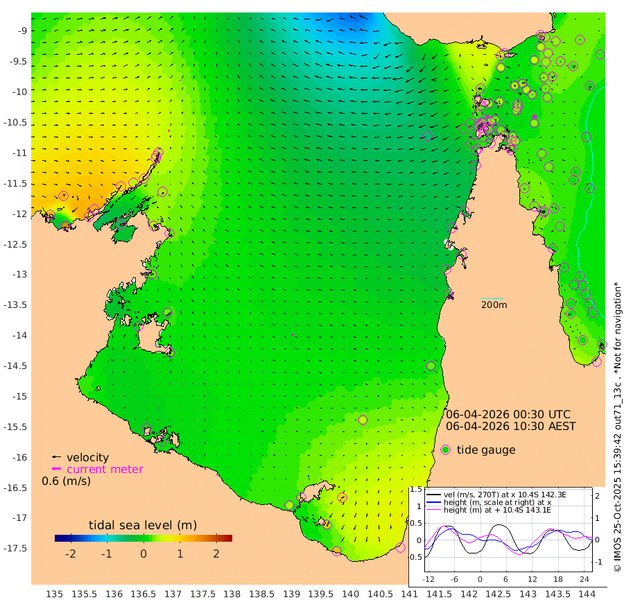 9cm/s -88T +3cm/s rms + 7cm/s -42T. ARA-GOC87 57m 13cm/s -113T +3cm/s rms + 2cm/s -2T. ARA-GOC87 60m 7cm/s -79T +2cm/s rms + 3cm/s 61T. ARA-GOC87 47m 41cm Daru 33cm Bobo Island 12cm Meer Island Barge 29cm Bramble Cay 37cm Unnamed Cay 34cm Pearce Cay 28cm Stephens Island 35cm Merrie England Shoals 43cm Mutacomal Reef 18cm Darnley Island Barge 16cm East Cay 24cm Yorke Island Barge 36cm Rennel Island 26cm Aureed Island 40cm Dungeness Reef 34cm Zagai Island 40cm Yam Island 49cm Dauan Island 33cm Saibai Island 60cm Phipi Reef 47cm Warrior Reef - West 29cm Mabuiag Island Barge 29cm Half Way Island 33cm Coconut Island 33cm Dugong Islet 36cm Poll Island 35cm Kirkcaldie Reef 39cm Suarji Island 27cm Sue Islet 20cm Hawkesbury Island 31cm Alert Patches 29cm Twin Island 34cm Badu Island 32cm St Pauls (Moa Island) 26cm Kubin (Moa Island) 27cm Ince Point 21cm Thursday Island 25cm Nardana Patches 28cm Turtle Head 16cm Round Island 21cm Goods Island -1cm Booby Island 12cm White Rocks Area -53cm Carpentaria 25cm Papou Point -16cm Bampfield Head -10cm Crab Island -1cm Red Wallis Island 19cm Packe Island 32cm Harrington Reef 1cm Herald Camp 6cm Sharp Point 19cm Red Island Point 16cm Possession Island 26cm Alpha Rock 31cm Frederick Point 38cm Wyborn Reef Light 37cm Tetley Island 14cm Triangle Reef 30cm Turtle Head Island 13cm Maclennan Cay 10cm Raine Island 29cm Mcsweeny Reef 24cm Collette Reef 15cm Shadwell Reef 28cm Hannibal Island 28cm Round Point -33cm Vrilya Point 19cm Cape Grenville 19cm Hicks Island 19cm Sir Charles Hardy Island 5cm Harvey Island 15cm Kay Reef 14cm Rocky Island 9cm Chapman Island 5cm Ham Reef 10cm Jubilee Reef 8cm Night Island 5cm Unnamed Reef No. 3 15cm Morris Island 10cm 1st 3 Mile Opening 8cm Creech Reef 11cm Fife Island 13cm Eden Reef 9cm Stanley Island 15cm Normanby River 123cm Yabooma Island 150cm Hutchison River 124cm Elcho Island 126cm North West Crocodile Island 45cm Cape Wessel 99cm Stevens Island 45cm Guluwuru Island 86cm Hopeful Bay 62cm Auster Point 60cm Two Island Bay 101cm Cadell Strait -34cm Mallison Island 50cm Melville Bay (Gove Harbour) 42cm Truant Island 25cm Cape Arnhem 28cm Cape Grey 26cm Hawk Island 15cm Milner Bay (Groote Eylandt) 24cm Cape Beatrice 6cm West Island -5cm Centre Island 46cm Mornington Island 45cm West Wellesley Islands 93cm Bountiful Island 120cm Albert River Mouth 105cm Sweers Island 110cm Karumba 50cm Nassau River Offshore 30cm Christmas Creek 7cm Archer River -7cm Boyd Point 8cm Weipa (Humbug Point) -25cm Pennefather River -25cm Cullen Point