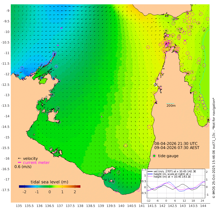 35cm/s -92T +3cm/s rms + 7cm/s -42T. ARA-GOC87 57m 26cm/s 174T +3cm/s rms + 2cm/s -2T. ARA-GOC87 60m 41cm/s -99T +2cm/s rms + 3cm/s 61T. ARA-GOC87 47m 52cm Daru 50cm Bobo Island 42cm Meer Island Barge 49cm Bramble Cay 55cm Unnamed Cay 60cm Pearce Cay 57cm Stephens Island 58cm Merrie England Shoals 59cm Mutacomal Reef 50cm Darnley Island Barge 53cm East Cay 50cm Yorke Island Barge 61cm Rennel Island 57cm Aureed Island 59cm Dungeness Reef 31cm Zagai Island 45cm Yam Island 29cm Dauan Island 25cm Saibai Island 41cm Phipi Reef 42cm Warrior Reef - West 43cm Mabuiag Island Barge 60cm Half Way Island 55cm Coconut Island 65cm Dugong Islet 55cm Poll Island 62cm Kirkcaldie Reef 64cm Suarji Island 49cm Sue Islet 91cm Hawkesbury Island 72cm Alert Patches 66cm Twin Island 67cm Badu Island 59cm St Pauls (Moa Island) 74cm Kubin (Moa Island) 68cm Ince Point 73cm Thursday Island 70cm Nardana Patches 81cm Turtle Head 76cm Round Island 88cm Goods Island 94cm Booby Island 94cm White Rocks Area 82cm Carpentaria 49cm Papou Point 94cm Bampfield Head 73cm Crab Island 95cm Red Wallis Island 93cm Packe Island 71cm Harrington Reef 101cm Herald Camp 13cm Sharp Point 76cm Red Island Point 68cm Possession Island 55cm Alpha Rock 66cm Frederick Point 53cm Wyborn Reef Light 53cm Tetley Island 45cm Triangle Reef 59cm Turtle Head Island 52cm Maclennan Cay 40cm Raine Island 57cm Mcsweeny Reef 53cm Collette Reef 43cm Shadwell Reef 55cm Hannibal Island 58cm Round Point 74cm Vrilya Point 58cm Cape Grenville 51cm Hicks Island 57cm Sir Charles Hardy Island 18cm Harvey Island 55cm Kay Reef 48cm Rocky Island 49cm Chapman Island 46cm Ham Reef 43cm Jubilee Reef 45cm Night Island 50cm Unnamed Reef No. 3 49cm Morris Island 43cm 1st 3 Mile Opening 49cm Creech Reef 52cm Fife Island 48cm Eden Reef 51cm Stanley Island 55cm Normanby River -118cm Yabooma Island -147cm Hutchison River -132cm Elcho Island -122cm North West Crocodile Island -100cm Cape Wessel -132cm Stevens Island -116cm Guluwuru Island -110cm Hopeful Bay -105cm Auster Point -110cm Two Island Bay -146cm Cadell Strait -145cm Mallison Island -99cm Melville Bay (Gove Harbour) -105cm Truant Island -72cm Cape Arnhem -53cm Cape Grey -41cm Hawk Island -38cm Milner Bay (Groote Eylandt) -21cm Cape Beatrice 9cm West Island 6cm Centre Island 17cm Mornington Island 20cm West Wellesley Islands 21cm Bountiful Island -36cm Albert River Mouth -33cm Sweers Island -9cm Karumba 53cm Nassau River Offshore 71cm Christmas Creek 70cm Archer River 69cm Boyd Point 74cm Weipa (Humbug Point) 58cm Pennefather River 76cm Cullen Point