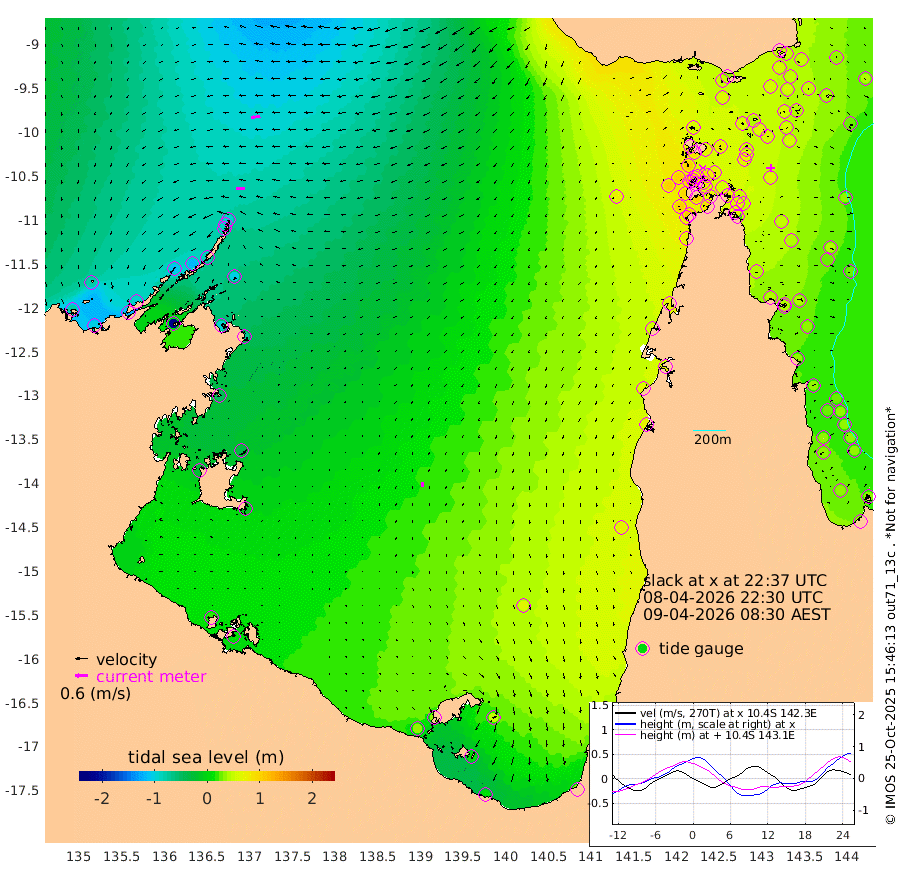 39cm/s -92T +3cm/s rms + 7cm/s -42T. ARA-GOC87 57m 22cm/s -174T +3cm/s rms + 2cm/s -2T. ARA-GOC87 60m 43cm/s -99T +2cm/s rms + 3cm/s 61T. ARA-GOC87 47m 52cm Daru 47cm Bobo Island 30cm Meer Island Barge 37cm Bramble Cay 47cm Unnamed Cay 57cm Pearce Cay 50cm Stephens Island 47cm Merrie England Shoals 54cm Mutacomal Reef 39cm Darnley Island Barge 40cm East Cay 44cm Yorke Island Barge 58cm Rennel Island 53cm Aureed Island 64cm Dungeness Reef 40cm Zagai Island 56cm Yam Island 47cm Dauan Island 34cm Saibai Island 65cm Phipi Reef 54cm Warrior Reef - West 55cm Mabuiag Island Barge 57cm Half Way Island 56cm Coconut Island 65cm Dugong Islet 61cm Poll Island 68cm Kirkcaldie Reef 78cm Suarji Island 51cm Sue Islet 101cm Hawkesbury Island 81cm Alert Patches 75cm Twin Island 82cm Badu Island 72cm St Pauls (Moa Island) 87cm Kubin (Moa Island) 79cm Ince Point 84cm Thursday Island 81cm Nardana Patches 93cm Turtle Head 87cm Round Island 98cm Goods Island 100cm Booby Island 102cm White Rocks Area 69cm Carpentaria 61cm Papou Point 93cm Bampfield Head 78cm Crab Island 99cm Red Wallis Island 100cm Packe Island 72cm Harrington Reef 107cm Herald Camp 17cm Sharp Point 87cm Red Island Point 79cm Possession Island 56cm Alpha Rock 71cm Frederick Point 50cm Wyborn Reef Light 51cm Tetley Island 34cm Triangle Reef 60cm Turtle Head Island 41cm Maclennan Cay 27cm Raine Island 49cm Mcsweeny Reef 42cm Collette Reef 30cm Shadwell Reef 42cm Hannibal Island 45cm Round Point 71cm Vrilya Point 44cm Cape Grenville 41cm Hicks Island 41cm Sir Charles Hardy Island 14cm Harvey Island 37cm Kay Reef 34cm Rocky Island 31cm Chapman Island 29cm Ham Reef 28cm Jubilee Reef 32cm Night Island 32cm Unnamed Reef No. 3 35cm Morris Island 31cm 1st 3 Mile Opening 34cm Creech Reef 37cm Fife Island 30cm Eden Reef 34cm Stanley Island 38cm Normanby River -79cm Yabooma Island -98cm Hutchison River -90cm Elcho Island -79cm North West Crocodile Island -94cm Cape Wessel -106cm Stevens Island -115cm Guluwuru Island -89cm Hopeful Bay -89cm Auster Point -93cm Two Island Bay -117cm Cadell Strait -224cm Mallison Island -93cm Melville Bay (Gove Harbour) -102cm Truant Island -71cm Cape Arnhem -47cm Cape Grey -34cm Hawk Island -29cm Milner Bay (Groote Eylandt) -10cm Cape Beatrice 18cm West Island 14cm Centre Island 35cm Mornington Island 35cm West Wellesley Islands 51cm Bountiful Island 10cm Albert River Mouth 10cm Sweers Island 36cm Karumba 67cm Nassau River Offshore 74cm Christmas Creek 68cm Archer River 64cm Boyd Point 74cm Weipa (Humbug Point) 53cm Pennefather River 71cm Cullen Point