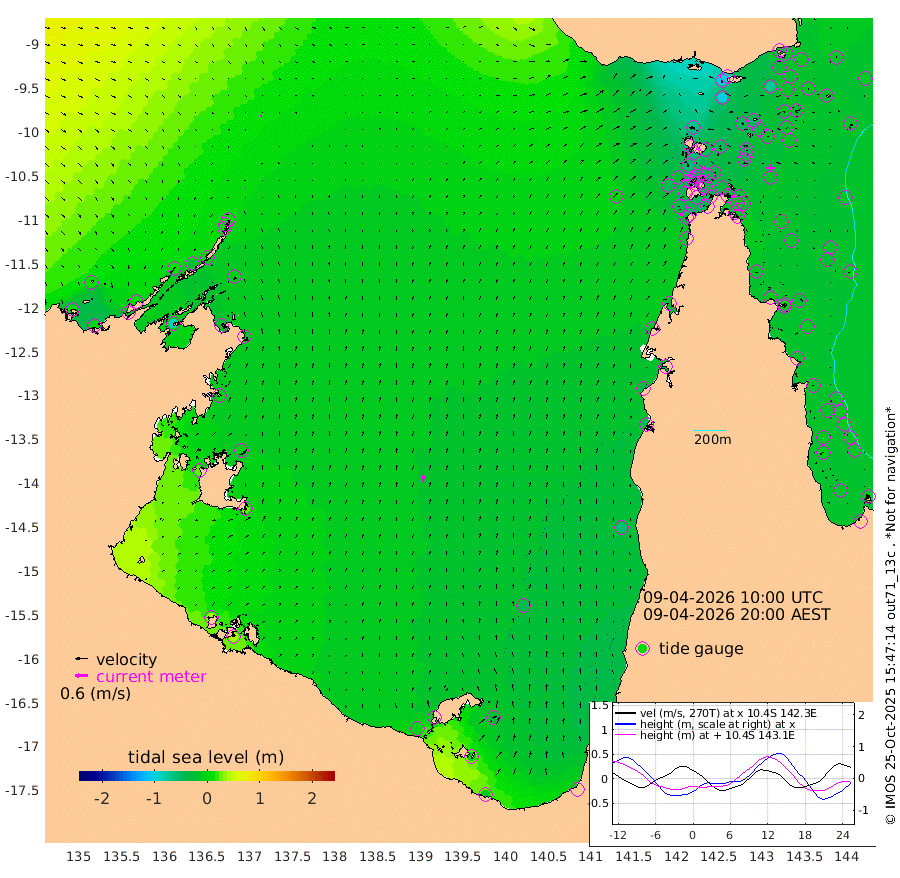 6cm/s 2T +3cm/s rms + 7cm/s -42T. ARA-GOC87 57m 31cm/s 7T +3cm/s rms + 2cm/s -2T. ARA-GOC87 60m 7cm/s 77T +2cm/s rms + 3cm/s 61T. ARA-GOC87 47m -31cm Daru -20cm Bobo Island -19cm Meer Island Barge -17cm Bramble Cay -23cm Unnamed Cay -19cm Pearce Cay -15cm Stephens Island -15cm Merrie England Shoals -24cm Mutacomal Reef -23cm Darnley Island Barge -12cm East Cay -27cm Yorke Island Barge -18cm Rennel Island -21cm Aureed Island -35cm Dungeness Reef -52cm Zagai Island -49cm Yam Island -103cm Dauan Island -91cm Saibai Island -103cm Phipi Reef -69cm Warrior Reef - West -62cm Mabuiag Island Barge -15cm Half Way Island -22cm Coconut Island -22cm Dugong Islet -32cm Poll Island -30cm Kirkcaldie Reef -39cm Suarji Island -41cm Sue Islet -60cm Hawkesbury Island -41cm Alert Patches -34cm Twin Island -66cm Badu Island -45cm St Pauls (Moa Island) -53cm Kubin (Moa Island) -43cm Ince Point -42cm Thursday Island -44cm Nardana Patches -52cm Turtle Head -50cm Round Island -50cm Goods Island -39cm Booby Island -26cm White Rocks Area -4cm Carpentaria -31cm Papou Point -36cm Bampfield Head -27cm Crab Island -31cm Red Wallis Island -46cm Packe Island -9cm Harrington Reef -58cm Herald Camp -13cm Sharp Point -37cm Red Island Point -37cm Possession Island -28cm Alpha Rock -26cm Frederick Point -22cm Wyborn Reef Light -25cm Tetley Island -22cm Triangle Reef -18cm Turtle Head Island -15cm Maclennan Cay -14cm Raine Island -18cm Mcsweeny Reef -20cm Collette Reef -23cm Shadwell Reef -20cm Hannibal Island -13cm Round Point -17cm Vrilya Point -12cm Cape Grenville -15cm Hicks Island -27cm Sir Charles Hardy Island -4cm Harvey Island -11cm Kay Reef -18cm Rocky Island -17cm Chapman Island -16cm Ham Reef -17cm Jubilee Reef -12cm Night Island -11cm Unnamed Reef No. 3 -14cm Morris Island -18cm 1st 3 Mile Opening -15cm Creech Reef -7cm Fife Island -18cm Eden Reef -13cm Stanley Island -6cm Normanby River 6cm Yabooma Island -4cm Hutchison River 8cm Elcho Island 9cm North West Crocodile Island 14cm Cape Wessel 9cm Stevens Island -25cm Guluwuru Island 3cm Hopeful Bay 10cm Auster Point 5cm Two Island Bay -19cm Cadell Strait -83cm Mallison Island -19cm Melville Bay (Gove Harbour) -15cm Truant Island -13cm Cape Arnhem -2cm Cape Grey -3cm Hawk Island 29cm Milner Bay (Groote Eylandt) 25cm Cape Beatrice 42cm West Island 45cm Centre Island -9cm Mornington Island -2cm West Wellesley Islands -32cm Bountiful Island -14cm Albert River Mouth -7cm Sweers Island -23cm Karumba -40cm Nassau River Offshore -54cm Christmas Creek -46cm Archer River -41cm Boyd Point -50cm Weipa (Humbug Point) -22cm Pennefather River -29cm Cullen Point