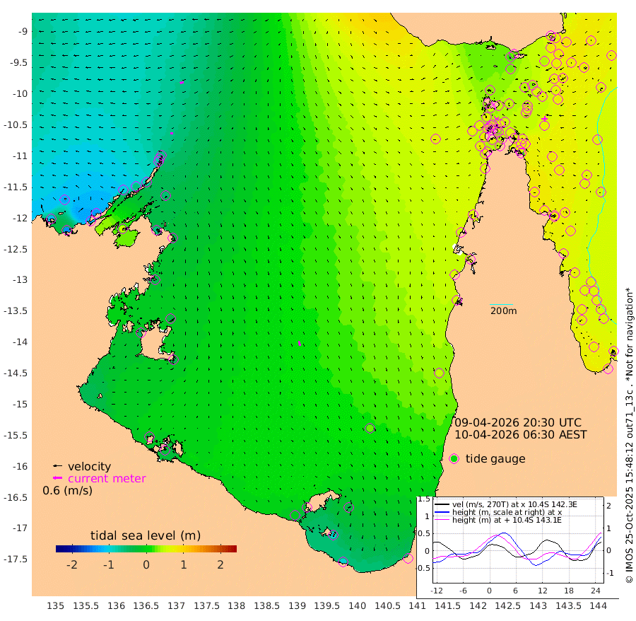 17cm/s -100T +3cm/s rms + 7cm/s -42T. ARA-GOC87 57m 31cm/s 166T +3cm/s rms + 2cm/s -2T. ARA-GOC87 60m 27cm/s -102T +2cm/s rms + 3cm/s 61T. ARA-GOC87 47m 67cm Daru 64cm Bobo Island 62cm Meer Island Barge 73cm Bramble Cay 78cm Unnamed Cay 71cm Pearce Cay 74cm Stephens Island 85cm Merrie England Shoals 81cm Mutacomal Reef 71cm Darnley Island Barge 72cm East Cay 68cm Yorke Island Barge 72cm Rennel Island 67cm Aureed Island 61cm Dungeness Reef 33cm Zagai Island 42cm Yam Island 21cm Dauan Island 26cm Saibai Island 23cm Phipi Reef 40cm Warrior Reef - West 33cm Mabuiag Island Barge 70cm Half Way Island 64cm Coconut Island 72cm Dugong Islet 55cm Poll Island 59cm Kirkcaldie Reef 49cm Suarji Island 56cm Sue Islet 72cm Hawkesbury Island 61cm Alert Patches 58cm Twin Island 48cm Badu Island 47cm St Pauls (Moa Island) 57cm Kubin (Moa Island) 54cm Ince Point 57cm Thursday Island 54cm Nardana Patches 61cm Turtle Head 60cm Round Island 66cm Goods Island 71cm Booby Island 69cm White Rocks Area 74cm Carpentaria 37cm Papou Point 81cm Bampfield Head 54cm Crab Island 76cm Red Wallis Island 78cm Packe Island 74cm Harrington Reef 82cm Herald Camp 10cm Sharp Point 52cm Red Island Point 52cm Possession Island 61cm Alpha Rock 65cm Frederick Point 74cm Wyborn Reef Light 71cm Tetley Island 63cm Triangle Reef 68cm Turtle Head Island 66cm Maclennan Cay 57cm Raine Island 75cm Mcsweeny Reef 76cm Collette Reef 66cm Shadwell Reef 81cm Hannibal Island 82cm Round Point 60cm Vrilya Point 81cm Cape Grenville 68cm Hicks Island 80cm Sir Charles Hardy Island 23cm Harvey Island 81cm Kay Reef 67cm Rocky Island 72cm Chapman Island 68cm Ham Reef 64cm Jubilee Reef 62cm Night Island 72cm Unnamed Reef No. 3 68cm Morris Island 58cm 1st 3 Mile Opening 67cm Creech Reef 72cm Fife Island 73cm Eden Reef 74cm Stanley Island 76cm Normanby River -115cm Yabooma Island -142cm Hutchison River -128cm Elcho Island -126cm North West Crocodile Island -66cm Cape Wessel -104cm Stevens Island -65cm Guluwuru Island -85cm Hopeful Bay -81cm Auster Point -86cm Two Island Bay -117cm Cadell Strait 48cm Mallison Island -60cm Melville Bay (Gove Harbour) -60cm Truant Island -41cm Cape Arnhem -45cm Cape Grey -35cm Hawk Island -48cm Milner Bay (Groote Eylandt) -39cm Cape Beatrice -25cm West Island -27cm Centre Island -21cm Mornington Island -15cm West Wellesley Islands -32cm Bountiful Island -95cm Albert River Mouth -94cm Sweers Island -74cm Karumba 23cm Nassau River Offshore 52cm Christmas Creek 59cm Archer River 62cm Boyd Point 62cm Weipa (Humbug Point) 50cm Pennefather River 66cm Cullen Point