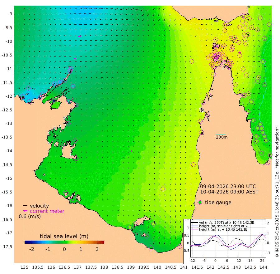 38cm/s -92T +3cm/s rms + 7cm/s -42T. ARA-GOC87 57m 24cm/s -174T +3cm/s rms + 2cm/s -2T. ARA-GOC87 60m 43cm/s -98T +2cm/s rms + 3cm/s 61T. ARA-GOC87 47m 65cm Daru 59cm Bobo Island 26cm Meer Island Barge 39cm Bramble Cay 54cm Unnamed Cay 65cm Pearce Cay 54cm Stephens Island 53cm Merrie England Shoals 67cm Mutacomal Reef 41cm Darnley Island Barge 37cm East Cay 51cm Yorke Island Barge 67cm Rennel Island 63cm Aureed Island 76cm Dungeness Reef 59cm Zagai Island 74cm Yam Island 68cm Dauan Island 54cm Saibai Island 85cm Phipi Reef 76cm Warrior Reef - West 69cm Mabuiag Island Barge 64cm Half Way Island 71cm Coconut Island 74cm Dugong Islet 78cm Poll Island 80cm Kirkcaldie Reef 96cm Suarji Island 65cm Sue Islet 103cm Hawkesbury Island 96cm Alert Patches 91cm Twin Island 88cm Badu Island 91cm St Pauls (Moa Island) 96cm Kubin (Moa Island) 92cm Ince Point 94cm Thursday Island 93cm Nardana Patches 100cm Turtle Head 94cm Round Island 98cm Goods Island 95cm Booby Island 99cm White Rocks Area 63cm Carpentaria 75cm Papou Point 92cm Bampfield Head 74cm Crab Island 98cm Red Wallis Island 109cm Packe Island 84cm Harrington Reef 109cm Herald Camp 23cm Sharp Point 91cm Red Island Point 90cm Possession Island 73cm Alpha Rock 87cm Frederick Point 65cm Wyborn Reef Light 68cm Tetley Island 36cm Triangle Reef 69cm Turtle Head Island 39cm Maclennan Cay 21cm Raine Island 55cm Mcsweeny Reef 46cm Collette Reef 28cm Shadwell Reef 46cm Hannibal Island 48cm Round Point 64cm Vrilya Point 44cm Cape Grenville 39cm Hicks Island 39cm Sir Charles Hardy Island 14cm Harvey Island 33cm Kay Reef 29cm Rocky Island 26cm Chapman Island 23cm Ham Reef 23cm Jubilee Reef 29cm Night Island 27cm Unnamed Reef No. 3 29cm Morris Island 23cm 1st 3 Mile Opening 28cm Creech Reef 34cm Fife Island 22cm Eden Reef 27cm Stanley Island 31cm Normanby River -80cm Yabooma Island -96cm Hutchison River -89cm Elcho Island -78cm North West Crocodile Island -89cm Cape Wessel -101cm Stevens Island -109cm Guluwuru Island -86cm Hopeful Bay -86cm Auster Point -89cm Two Island Bay -113cm Cadell Strait -201cm Mallison Island -86cm Melville Bay (Gove Harbour) -94cm Truant Island -65cm Cape Arnhem -47cm Cape Grey -29cm Hawk Island -31cm Milner Bay (Groote Eylandt) -12cm Cape Beatrice 12cm West Island 9cm Centre Island 35cm Mornington Island 32cm West Wellesley Islands 45cm Bountiful Island 7cm Albert River Mouth 6cm Sweers Island 34cm Karumba 66cm Nassau River Offshore 73cm Christmas Creek 64cm Archer River 61cm Boyd Point 69cm Weipa (Humbug Point) 49cm Pennefather River 69cm Cullen Point
