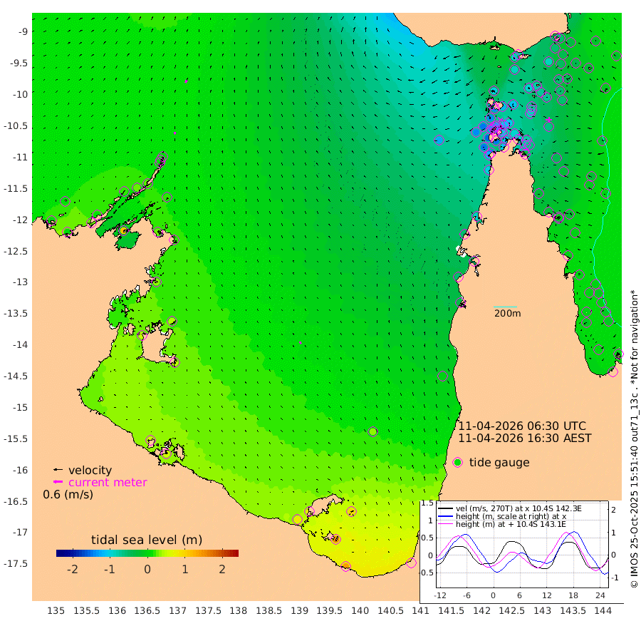 15cm/s 21T +3cm/s rms + 7cm/s -42T. ARA-GOC87 57m 16cm/s -32T +3cm/s rms + 2cm/s -2T. ARA-GOC87 60m 21cm/s 29T +2cm/s rms + 3cm/s 61T. ARA-GOC87 47m -57cm Daru -53cm Bobo Island -10cm Meer Island Barge -19cm Bramble Cay -38cm Unnamed Cay -52cm Pearce Cay -38cm Stephens Island -32cm Merrie England Shoals -56cm Mutacomal Reef -25cm Darnley Island Barge -15cm East Cay -40cm Yorke Island Barge -55cm Rennel Island -55cm Aureed Island -71cm Dungeness Reef -82cm Zagai Island -94cm Yam Island -94cm Dauan Island -80cm Saibai Island -85cm Phipi Reef -88cm Warrior Reef - West -100cm Mabuiag Island Barge -56cm Half Way Island -74cm Coconut Island -67cm Dugong Islet -88cm Poll Island -83cm Kirkcaldie Reef -110cm Suarji Island -72cm Sue Islet -137cm Hawkesbury Island -109cm Alert Patches -112cm Twin Island -130cm Badu Island -117cm St Pauls (Moa Island) -136cm Kubin (Moa Island) -118cm Ince Point -125cm Thursday Island -123cm Nardana Patches -127cm Turtle Head -129cm Round Island -135cm Goods Island -141cm Booby Island -143cm White Rocks Area -123cm Carpentaria -104cm Papou Point -150cm Bampfield Head -113cm Crab Island -144cm Red Wallis Island -145cm Packe Island -80cm Harrington Reef -144cm Herald Camp -27cm Sharp Point -107cm Red Island Point -111cm Possession Island -92cm Alpha Rock -97cm Frederick Point -67cm Wyborn Reef Light -75cm Tetley Island -27cm Triangle Reef -72cm Turtle Head Island -24cm Maclennan Cay -6cm Raine Island -40cm Mcsweeny Reef -27cm Collette Reef -10cm Shadwell Reef -25cm Hannibal Island -25cm Round Point -101cm Vrilya Point -20cm Cape Grenville -19cm Hicks Island -23cm Sir Charles Hardy Island -7cm Harvey Island -7cm Kay Reef -6cm Rocky Island -5cm Chapman Island -3cm Ham Reef -5cm Jubilee Reef -12cm Night Island -7cm Unnamed Reef No. 3 -7cm Morris Island -8cm 1st 3 Mile Opening -8cm Creech Reef -8cm Fife Island 3cm Eden Reef -2cm Stanley Island -3cm Normanby River 2cm Yabooma Island 4cm Hutchison River 10cm Elcho Island 9cm North West Crocodile Island 5cm Cape Wessel 17cm Stevens Island 30cm Guluwuru Island 23cm Hopeful Bay 10cm Auster Point 7cm Two Island Bay 24cm Cadell Strait 116cm Mallison Island 23cm Melville Bay (Gove Harbour) 17cm Truant Island 18cm Cape Arnhem 36cm Cape Grey 38cm Hawk Island 51cm Milner Bay (Groote Eylandt) 51cm Cape Beatrice 55cm West Island 56cm Centre Island 79cm Mornington Island 82cm West Wellesley Islands 97cm Bountiful Island 136cm Albert River Mouth 157cm Sweers Island 125cm Karumba 36cm Nassau River Offshore -3cm Christmas Creek -31cm Archer River -57cm Boyd Point -59cm Weipa (Humbug Point) -55cm Pennefather River -96cm Cullen Point