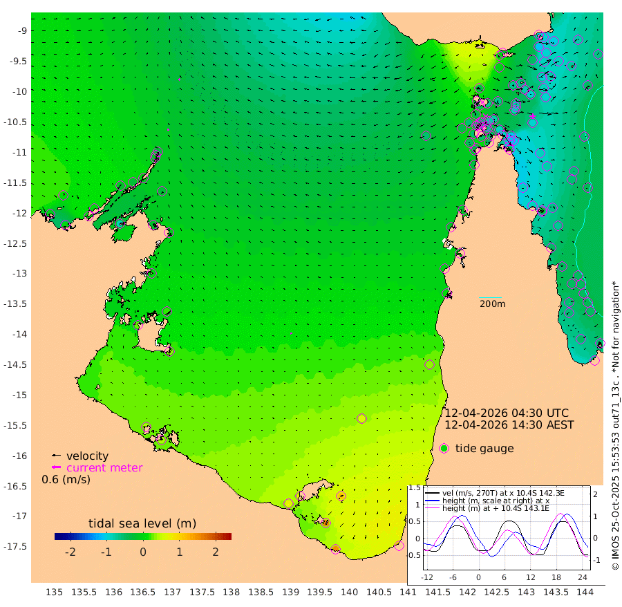 14cm/s -66T +3cm/s rms + 7cm/s -42T. ARA-GOC87 57m 14cm/s -90T +3cm/s rms + 2cm/s -2T. ARA-GOC87 60m 13cm/s -47T +2cm/s rms + 3cm/s 61T. ARA-GOC87 47m -92cm Daru -93cm Bobo Island -52cm Meer Island Barge -78cm Bramble Cay -95cm Unnamed Cay -89cm Pearce Cay -87cm Stephens Island -103cm Merrie England Shoals -108cm Mutacomal Reef -74cm Darnley Island Barge -65cm East Cay -80cm Yorke Island Barge -93cm Rennel Island -84cm Aureed Island -78cm Dungeness Reef -60cm Zagai Island -68cm Yam Island -6cm Dauan Island -19cm Saibai Island -2cm Phipi Reef -51cm Warrior Reef - West -38cm Mabuiag Island Barge -92cm Half Way Island -97cm Coconut Island -93cm Dugong Islet -83cm Poll Island -86cm Kirkcaldie Reef -72cm Suarji Island -76cm Sue Islet -45cm Hawkesbury Island -75cm Alert Patches -82cm Twin Island -39cm Badu Island -71cm St Pauls (Moa Island) -50cm Kubin (Moa Island) -65cm Ince Point -61cm Thursday Island -60cm Nardana Patches -48cm Turtle Head -45cm Round Island -42cm Goods Island -40cm Booby Island -55cm White Rocks Area -57cm Carpentaria -69cm Papou Point -59cm Bampfield Head -30cm Crab Island -50cm Red Wallis Island -56cm Packe Island -110cm Harrington Reef -37cm Herald Camp -16cm Sharp Point -46cm Red Island Point -58cm Possession Island -88cm Alpha Rock -94cm Frederick Point -110cm Wyborn Reef Light -108cm Tetley Island -54cm Triangle Reef -106cm Turtle Head Island -57cm Maclennan Cay -41cm Raine Island -89cm Mcsweeny Reef -80cm Collette Reef -53cm Shadwell Reef -88cm Hannibal Island -85cm Round Point -32cm Vrilya Point -76cm Cape Grenville -64cm Hicks Island -66cm Sir Charles Hardy Island -21cm Harvey Island -71cm Kay Reef -49cm Rocky Island -48cm Chapman Island -45cm Ham Reef -48cm Jubilee Reef -46cm Night Island -51cm Unnamed Reef No. 3 -53cm Morris Island -41cm 1st 3 Mile Opening -48cm Creech Reef -55cm Fife Island -49cm Eden Reef -54cm Stanley Island -63cm Normanby River -2cm Yabooma Island 2cm Hutchison River 7cm Elcho Island 10cm North West Crocodile Island -36cm Cape Wessel -20cm Stevens Island -24cm Guluwuru Island -7cm Hopeful Bay -19cm Auster Point -12cm Two Island Bay 0cm Cadell Strait -85cm Mallison Island -17cm Melville Bay (Gove Harbour) -27cm Truant Island -12cm Cape Arnhem 4cm Cape Grey 19cm Hawk Island 25cm Milner Bay (Groote Eylandt) 32cm Cape Beatrice 38cm West Island 42cm Centre Island 82cm Mornington Island 74cm West Wellesley Islands 106cm Bountiful Island 147cm Albert River Mouth 154cm Sweers Island 147cm Karumba 62cm Nassau River Offshore 34cm Christmas Creek 10cm Archer River -6cm Boyd Point 3cm Weipa (Humbug Point) -12cm Pennefather River -22cm Cullen Point