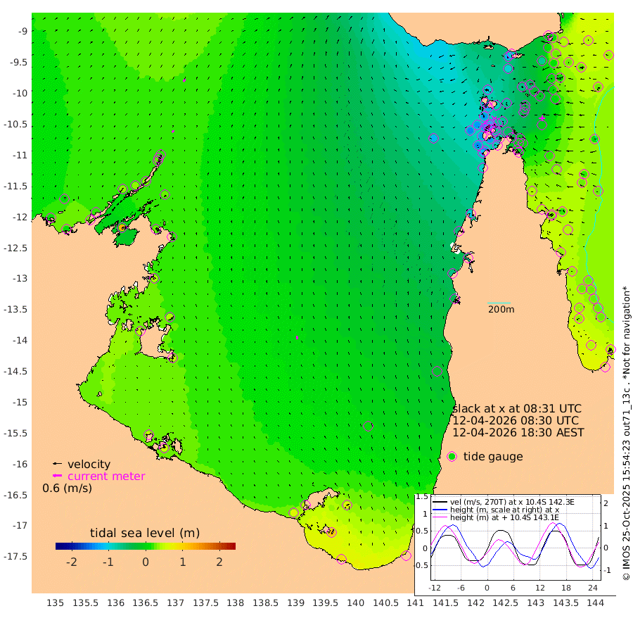 17cm/s 33T +3cm/s rms + 7cm/s -42T. ARA-GOC87 57m 22cm/s -11T +3cm/s rms + 2cm/s -2T. ARA-GOC87 60m 22cm/s 40T +2cm/s rms + 3cm/s 61T. ARA-GOC87 47m 4cm Daru 12cm Bobo Island 28cm Meer Island Barge 38cm Bramble Cay 28cm Unnamed Cay 12cm Pearce Cay 26cm Stephens Island 41cm Merrie England Shoals 14cm Mutacomal Reef 27cm Darnley Island Barge 35cm East Cay 14cm Yorke Island Barge 11cm Rennel Island 3cm Aureed Island -20cm Dungeness Reef -56cm Zagai Island -64cm Yam Island -116cm Dauan Island -97cm Saibai Island -93cm Phipi Reef -70cm Warrior Reef - West -98cm Mabuiag Island Barge 6cm Half Way Island -11cm Coconut Island -7cm Dugong Islet -40cm Poll Island -31cm Kirkcaldie Reef -71cm Suarji Island -32cm Sue Islet -129cm Hawkesbury Island -69cm Alert Patches -70cm Twin Island -128cm Badu Island -86cm St Pauls (Moa Island) -123cm Kubin (Moa Island) -92cm Ince Point -102cm Thursday Island -101cm Nardana Patches -112cm Turtle Head -112cm Round Island -128cm Goods Island -137cm Booby Island -128cm White Rocks Area -115cm Carpentaria -72cm Papou Point -128cm Bampfield Head -109cm Crab Island -136cm Red Wallis Island -129cm Packe Island -5cm Harrington Reef -137cm Herald Camp -21cm Sharp Point -88cm Red Island Point -78cm Possession Island -48cm Alpha Rock -41cm Frederick Point 3cm Wyborn Reef Light -8cm Tetley Island 9cm Triangle Reef 2cm Turtle Head Island 17cm Maclennan Cay 26cm Raine Island 22cm Mcsweeny Reef 31cm Collette Reef 29cm Shadwell Reef 39cm Hannibal Island 39cm Round Point -97cm Vrilya Point 37cm Cape Grenville 30cm Hicks Island 19cm Sir Charles Hardy Island 10cm Harvey Island 45cm Kay Reef 31cm Rocky Island 31cm Chapman Island 29cm Ham Reef 30cm Jubilee Reef 24cm Night Island 30cm Unnamed Reef No. 3 34cm Morris Island 24cm 1st 3 Mile Opening 28cm Creech Reef 36cm Fife Island 42cm Eden Reef 40cm Stanley Island 47cm Normanby River 12cm Yabooma Island 14cm Hutchison River 17cm Elcho Island 14cm North West Crocodile Island 21cm Cape Wessel 34cm Stevens Island 33cm Guluwuru Island 36cm Hopeful Bay 26cm Auster Point 15cm Two Island Bay 25cm Cadell Strait 123cm Mallison Island 29cm Melville Bay (Gove Harbour) 27cm Truant Island 21cm Cape Arnhem 38cm Cape Grey 39cm Hawk Island 51cm Milner Bay (Groote Eylandt) 48cm Cape Beatrice 52cm West Island 53cm Centre Island 59cm Mornington Island 63cm West Wellesley Islands 65cm Bountiful Island 88cm Albert River Mouth 117cm Sweers Island 83cm Karumba 15cm Nassau River Offshore -20cm Christmas Creek -39cm Archer River -63cm Boyd Point -70cm Weipa (Humbug Point) -53cm Pennefather River -99cm Cullen Point