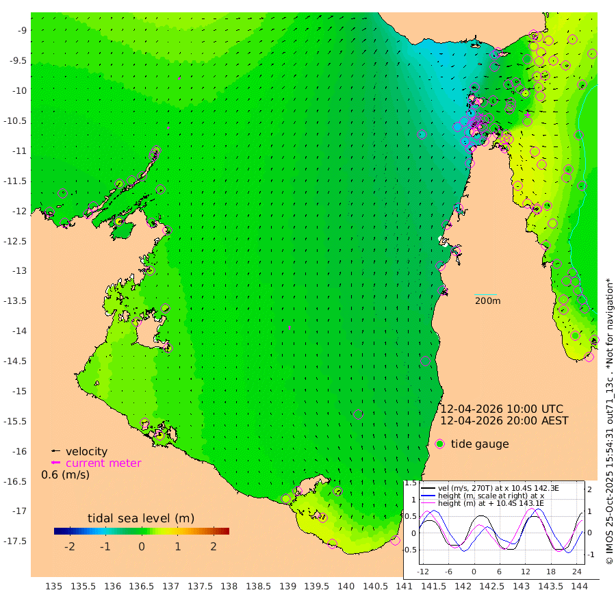 15cm/s 34T +3cm/s rms + 7cm/s -42T. ARA-GOC87 57m 27cm/s 2T +3cm/s rms + 2cm/s -2T. ARA-GOC87 60m 19cm/s 48T +2cm/s rms + 3cm/s 61T. ARA-GOC87 47m 40cm Daru 48cm Bobo Island 22cm Meer Island Barge 44cm Bramble Cay 50cm Unnamed Cay 41cm Pearce Cay 44cm Stephens Island 62cm Merrie England Shoals 52cm Mutacomal Reef 36cm Darnley Island Barge 34cm East Cay 36cm Yorke Island Barge 42cm Rennel Island 36cm Aureed Island 18cm Dungeness Reef -5cm Zagai Island -11cm Yam Island -81cm Dauan Island -58cm Saibai Island -58cm Phipi Reef -21cm Warrior Reef - West -52cm Mabuiag Island Barge 37cm Half Way Island 38cm Coconut Island 29cm Dugong Islet 11cm Poll Island 16cm Kirkcaldie Reef -6cm Suarji Island 13cm Sue Islet -98cm Hawkesbury Island -12cm Alert Patches -9cm Twin Island -90cm Badu Island -24cm St Pauls (Moa Island) -82cm Kubin (Moa Island) -39cm Ince Point -52cm Thursday Island -50cm Nardana Patches -73cm Turtle Head -75cm Round Island -98cm Goods Island -110cm Booby Island -92cm White Rocks Area -84cm Carpentaria -15cm Papou Point -92cm Bampfield Head -88cm Crab Island -103cm Red Wallis Island -89cm Packe Island 47cm Harrington Reef -110cm Herald Camp -2cm Sharp Point -49cm Red Island Point -29cm Possession Island 7cm Alpha Rock 15cm Frederick Point 49cm Wyborn Reef Light 42cm Tetley Island 15cm Triangle Reef 43cm Turtle Head Island 17cm Maclennan Cay 14cm Raine Island 44cm Mcsweeny Reef 45cm Collette Reef 25cm Shadwell Reef 52cm Hannibal Island 48cm Round Point -80cm Vrilya Point 41cm Cape Grenville 30cm Hicks Island 17cm Sir Charles Hardy Island 11cm Harvey Island 40cm Kay Reef 21cm Rocky Island 19cm Chapman Island 17cm Ham Reef 18cm Jubilee Reef 17cm Night Island 21cm Unnamed Reef No. 3 24cm Morris Island 10cm 1st 3 Mile Opening 17cm Creech Reef 28cm Fife Island 21cm Eden Reef 26cm Stanley Island 36cm Normanby River -2cm Yabooma Island 1cm Hutchison River 4cm Elcho Island 2cm North West Crocodile Island 23cm Cape Wessel 25cm Stevens Island 19cm Guluwuru Island 20cm Hopeful Bay 20cm Auster Point 5cm Two Island Bay 4cm Cadell Strait 72cm Mallison Island 19cm Melville Bay (Gove Harbour) 20cm Truant Island 16cm Cape Arnhem 32cm Cape Grey 31cm Hawk Island 48cm Milner Bay (Groote Eylandt) 42cm Cape Beatrice 51cm West Island 53cm Centre Island 35cm Mornington Island 38cm West Wellesley Islands 30cm Bountiful Island 42cm Albert River Mouth 69cm Sweers Island 38cm Karumba -10cm Nassau River Offshore -38cm Christmas Creek -50cm Archer River -64cm Boyd Point -76cm Weipa (Humbug Point) -51cm Pennefather River -86cm Cullen Point