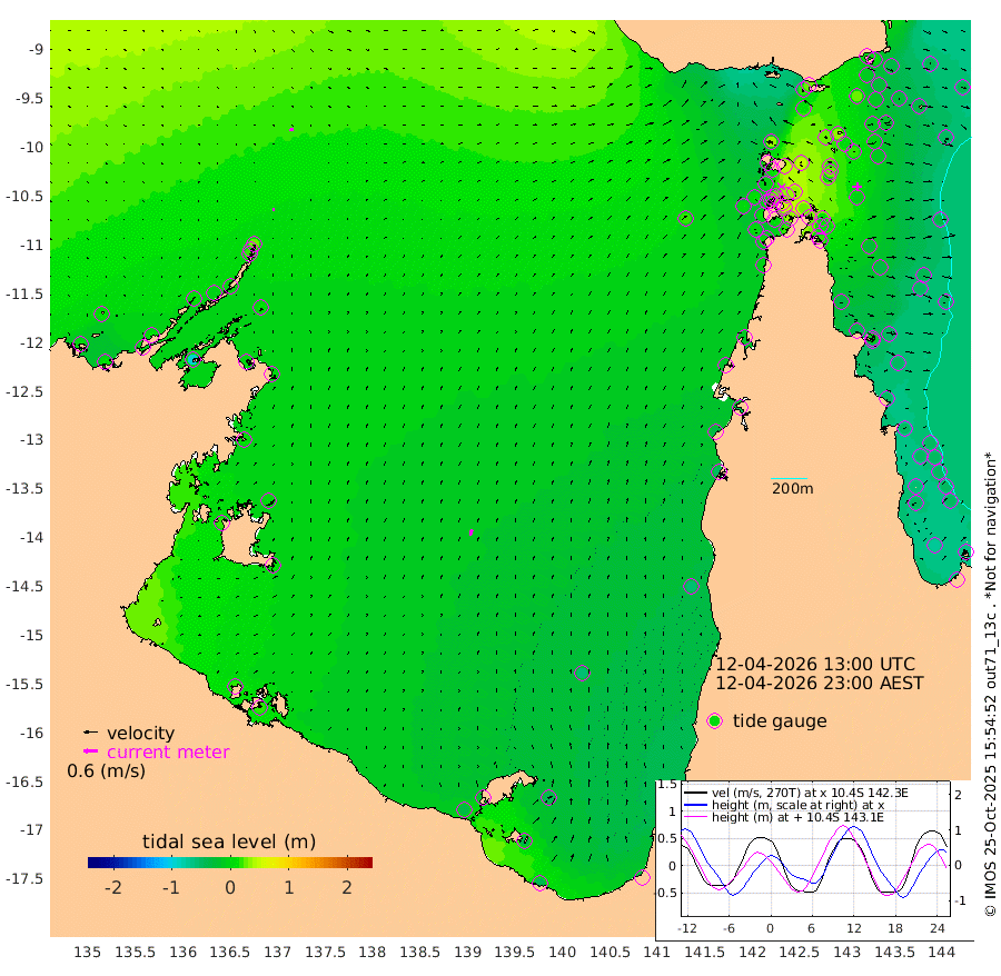 8cm/s 85T +3cm/s rms + 7cm/s -42T. ARA-GOC87 57m 28cm/s 13T +3cm/s rms + 2cm/s -2T. ARA-GOC87 60m 14cm/s 100T +2cm/s rms + 3cm/s 61T. ARA-GOC87 47m -6cm Daru 1cm Bobo Island -47cm Meer Island Barge -42cm Bramble Cay -28cm Unnamed Cay -13cm Pearce Cay -28cm Stephens Island -33cm Merrie England Shoals -11cm Mutacomal Reef -35cm Darnley Island Barge -44cm East Cay -18cm Yorke Island Barge -12cm Rennel Island -2cm Aureed Island 1cm Dungeness Reef 35cm Zagai Island 29cm Yam Island 17cm Dauan Island 28cm Saibai Island 15cm Phipi Reef 24cm Warrior Reef - West 36cm Mabuiag Island Barge -13cm Half Way Island 17cm Coconut Island -6cm Dugong Islet 23cm Poll Island 14cm Kirkcaldie Reef 48cm Suarji Island 18cm Sue Islet -2cm Hawkesbury Island 31cm Alert Patches 37cm Twin Island 17cm Badu Island 43cm St Pauls (Moa Island) 12cm Kubin (Moa Island) 31cm Ince Point 28cm Thursday Island 29cm Nardana Patches 11cm Turtle Head 13cm Round Island -1cm Goods Island 0cm Booby Island 11cm White Rocks Area 21cm Carpentaria 45cm Papou Point 14cm Bampfield Head 2cm Crab Island 5cm Red Wallis Island 2cm Packe Island 13cm Harrington Reef -8cm Herald Camp 15cm Sharp Point 22cm Red Island Point 32cm Possession Island 29cm Alpha Rock 27cm Frederick Point 4cm Wyborn Reef Light 12cm Tetley Island -31cm Triangle Reef 2cm Turtle Head Island -38cm Maclennan Cay -48cm Raine Island -23cm Mcsweeny Reef -31cm Collette Reef -46cm Shadwell Reef -37cm Hannibal Island -42cm Round Point -2cm Vrilya Point -44cm Cape Grenville -42cm Hicks Island -50cm Sir Charles Hardy Island -13cm Harvey Island -52cm Kay Reef -51cm Rocky Island -52cm Chapman Island -50cm Ham Reef -50cm Jubilee Reef -46cm Night Island -49cm Unnamed Reef No. 3 -53cm Morris Island -52cm 1st 3 Mile Opening -52cm Creech Reef -52cm Fife Island -68cm Eden Reef -61cm Stanley Island -59cm Normanby River 7cm Yabooma Island 13cm Hutchison River 14cm Elcho Island 15cm North West Crocodile Island 25cm Cape Wessel 13cm Stevens Island 0cm Guluwuru Island 1cm Hopeful Bay 18cm Auster Point 9cm Two Island Bay -2cm Cadell Strait -95cm Mallison Island 2cm Melville Bay (Gove Harbour) 8cm Truant Island 5cm Cape Arnhem 10cm Cape Grey 2cm Hawk Island 22cm Milner Bay (Groote Eylandt) 9cm Cape Beatrice 17cm West Island 22cm Centre Island -29cm Mornington Island -32cm West Wellesley Islands -41cm Bountiful Island -38cm Albert River Mouth -31cm Sweers Island -43cm Karumba -56cm Nassau River Offshore -60cm Christmas Creek -45cm Archer River -31cm Boyd Point -41cm Weipa (Humbug Point) -20cm Pennefather River -12cm Cullen Point