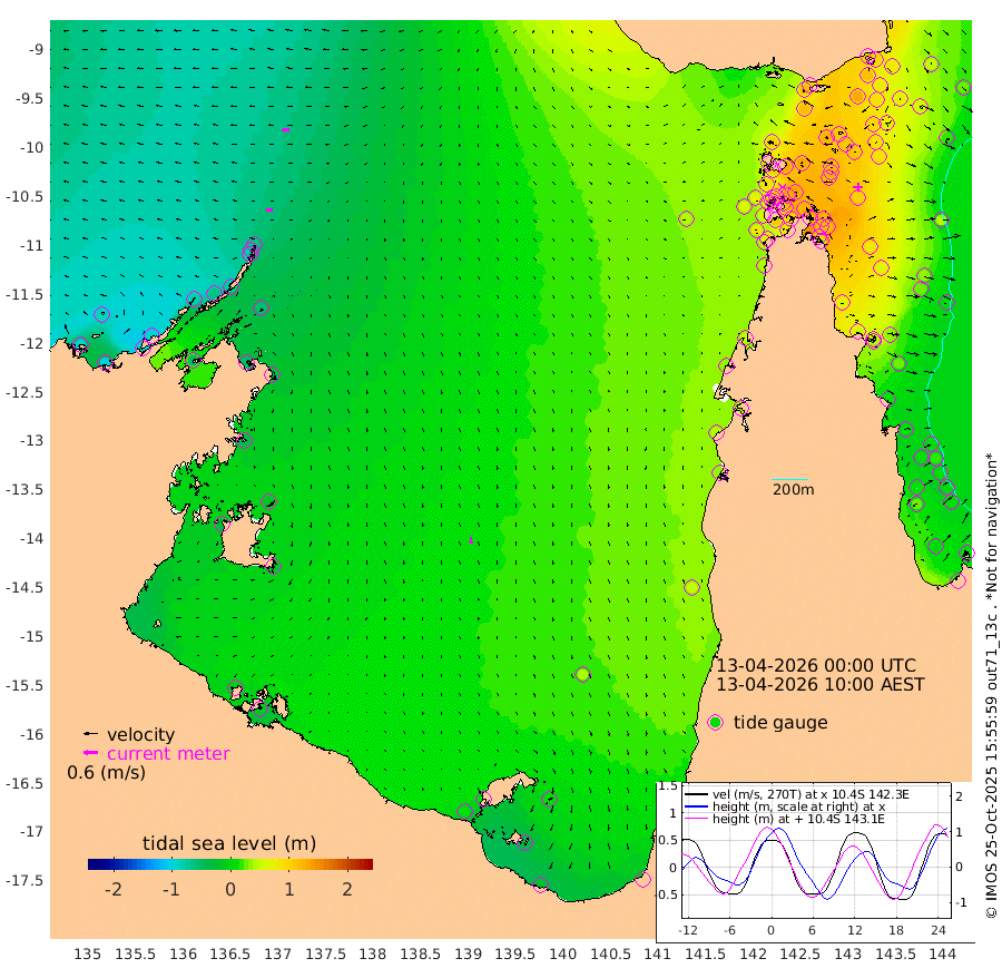 25cm/s -93T +3cm/s rms + 7cm/s -42T. ARA-GOC87 57m 27cm/s 177T +3cm/s rms + 2cm/s -2T. ARA-GOC87 60m 33cm/s -97T +2cm/s rms + 3cm/s 61T. ARA-GOC87 47m 105cm Daru 93cm Bobo Island 19cm Meer Island Barge 49cm Bramble Cay 81cm Unnamed Cay 85cm Pearce Cay 68cm Stephens Island 82cm Merrie England Shoals 113cm Mutacomal Reef 53cm Darnley Island Barge 29cm East Cay 74cm Yorke Island Barge 94cm Rennel Island 89cm Aureed Island 106cm Dungeness Reef 112cm Zagai Island 122cm Yam Island 115cm Dauan Island 104cm Saibai Island 118cm Phipi Reef 129cm Warrior Reef - West 100cm Mabuiag Island Barge 90cm Half Way Island 111cm Coconut Island 104cm Dugong Islet 121cm Poll Island 116cm Kirkcaldie Reef 133cm Suarji Island 108cm Sue Islet 87cm Hawkesbury Island 128cm Alert Patches 130cm Twin Island 87cm Badu Island 133cm St Pauls (Moa Island) 101cm Kubin (Moa Island) 119cm Ince Point 111cm Thursday Island 113cm Nardana Patches 102cm Turtle Head 86cm Round Island 78cm Goods Island 63cm Booby Island 72cm White Rocks Area 41cm Carpentaria 109cm Papou Point 58cm Bampfield Head 49cm Crab Island 79cm Red Wallis Island 109cm Packe Island 118cm Harrington Reef 81cm Herald Camp 42cm Sharp Point 84cm Red Island Point 100cm Possession Island 123cm Alpha Rock 126cm Frederick Point 114cm Wyborn Reef Light 120cm Tetley Island 41cm Triangle Reef 98cm Turtle Head Island 31cm Maclennan Cay 4cm Raine Island 77cm Mcsweeny Reef 63cm Collette Reef 28cm Shadwell Reef 65cm Hannibal Island 56cm Round Point 40cm Vrilya Point 46cm Cape Grenville 33cm Hicks Island 35cm Sir Charles Hardy Island 13cm Harvey Island 28cm Kay Reef 14cm Rocky Island 11cm Chapman Island 7cm Ham Reef 9cm Jubilee Reef 20cm Night Island 13cm Unnamed Reef No. 3 14cm Morris Island 2cm 1st 3 Mile Opening 11cm Creech Reef 23cm Fife Island 1cm Eden Reef 11cm Stanley Island 14cm Normanby River -92cm Yabooma Island -98cm Hutchison River -92cm Elcho Island -84cm North West Crocodile Island -65cm Cape Wessel -80cm Stevens Island -67cm Guluwuru Island -79cm Hopeful Bay -77cm Auster Point -78cm Two Island Bay -94cm Cadell Strait -50cm Mallison Island -56cm Melville Bay (Gove Harbour) -60cm Truant Island -39cm Cape Arnhem -40cm Cape Grey -21cm Hawk Island -33cm Milner Bay (Groote Eylandt) -16cm Cape Beatrice -3cm West Island -8cm Centre Island 14cm Mornington Island 11cm West Wellesley Islands 1cm Bountiful Island -20cm Albert River Mouth -36cm Sweers Island -5cm Karumba 43cm Nassau River Offshore 52cm Christmas Creek 37cm Archer River 40cm Boyd Point 39cm Weipa (Humbug Point) 30cm Pennefather River 46cm Cullen Point