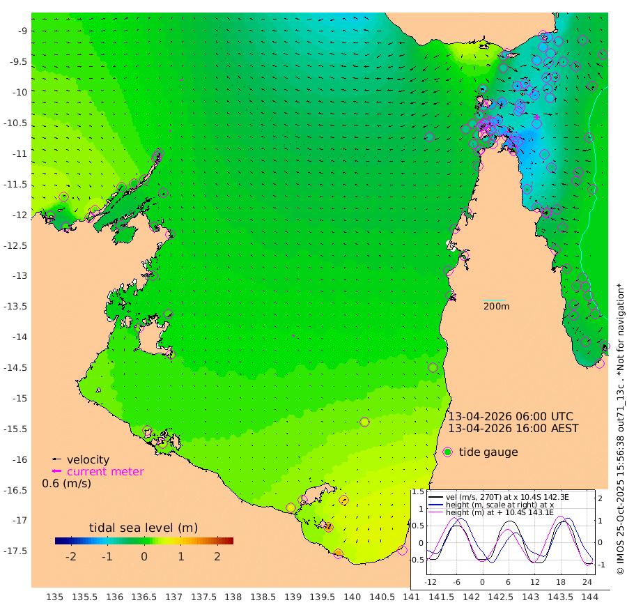 8cm/s -42T +3cm/s rms + 7cm/s -42T. ARA-GOC87 57m 14cm/s -66T +3cm/s rms + 2cm/s -2T. ARA-GOC87 60m 9cm/s -7T +2cm/s rms + 3cm/s 61T. ARA-GOC87 47m -102cm Daru -98cm Bobo Island -26cm Meer Island Barge -55cm Bramble Cay -85cm Unnamed Cay -86cm Pearce Cay -73cm Stephens Island -85cm Merrie England Shoals -111cm Mutacomal Reef -59cm Darnley Island Barge -36cm East Cay -78cm Yorke Island Barge -93cm Rennel Island -90cm Aureed Island -97cm Dungeness Reef -108cm Zagai Island -115cm Yam Island -78cm Dauan Island -86cm Saibai Island -70cm Phipi Reef -106cm Warrior Reef - West -93cm Mabuiag Island Barge -91cm Half Way Island -114cm Coconut Island -102cm Dugong Islet -115cm Poll Island -112cm Kirkcaldie Reef -123cm Suarji Island -107cm Sue Islet -76cm Hawkesbury Island -116cm Alert Patches -124cm Twin Island -81cm Badu Island -124cm St Pauls (Moa Island) -88cm Kubin (Moa Island) -108cm Ince Point -102cm Thursday Island -103cm Nardana Patches -84cm Turtle Head -75cm Round Island -68cm Goods Island -60cm Booby Island -75cm White Rocks Area -67cm Carpentaria -112cm Papou Point -73cm Bampfield Head -44cm Crab Island -72cm Red Wallis Island -87cm Packe Island -122cm Harrington Reef -64cm Herald Camp -35cm Sharp Point -78cm Red Island Point -93cm Possession Island -121cm Alpha Rock -124cm Frederick Point -119cm Wyborn Reef Light -124cm Tetley Island -42cm Triangle Reef -110cm Turtle Head Island -36cm Maclennan Cay -11cm Raine Island -80cm Mcsweeny Reef -65cm Collette Reef -30cm Shadwell Reef -68cm Hannibal Island -59cm Round Point -39cm Vrilya Point -50cm Cape Grenville -39cm Hicks Island -43cm Sir Charles Hardy Island -14cm Harvey Island -36cm Kay Reef -19cm Rocky Island -16cm Chapman Island -14cm Ham Reef -18cm Jubilee Reef -19cm Night Island -19cm Unnamed Reef No. 3 -20cm Morris Island -11cm 1st 3 Mile Opening -17cm Creech Reef -22cm Fife Island -8cm Eden Reef -16cm Stanley Island -23cm Normanby River 21cm Yabooma Island 21cm Hutchison River 26cm Elcho Island 24cm North West Crocodile Island -17cm Cape Wessel 5cm Stevens Island -8cm Guluwuru Island 20cm Hopeful Bay 2cm Auster Point 7cm Two Island Bay 19cm Cadell Strait -27cm Mallison Island -3cm Melville Bay (Gove Harbour) -11cm Truant Island -3cm Cape Arnhem 10cm Cape Grey 21cm Hawk Island 28cm Milner Bay (Groote Eylandt) 32cm Cape Beatrice 33cm West Island 39cm Centre Island 72cm Mornington Island 69cm West Wellesley Islands 90cm Bountiful Island 131cm Albert River Mouth 145cm Sweers Island 130cm Karumba 50cm Nassau River Offshore 24cm Christmas Creek 7cm Archer River -13cm Boyd Point -4cm Weipa (Humbug Point) -12cm Pennefather River -32cm Cullen Point