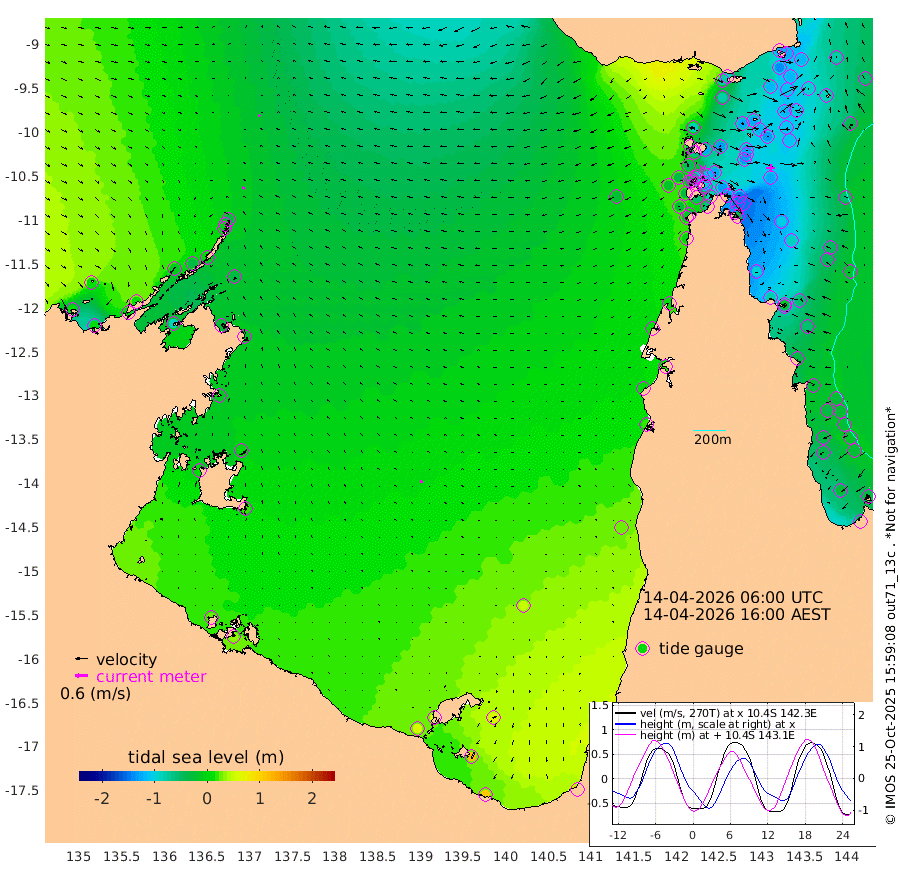 11cm/s -78T +3cm/s rms + 7cm/s -42T. ARA-GOC87 57m 12cm/s -75T +3cm/s rms + 2cm/s -2T. ARA-GOC87 60m 8cm/s -64T +2cm/s rms + 3cm/s 61T. ARA-GOC87 47m -127cm Daru -124cm Bobo Island -42cm Meer Island Barge -78cm Bramble Cay -113cm Unnamed Cay -108cm Pearce Cay -97cm Stephens Island -113cm Merrie England Shoals -138cm Mutacomal Reef -83cm Darnley Island Barge -54cm East Cay -103cm Yorke Island Barge -115cm Rennel Island -110cm Aureed Island -115cm Dungeness Reef -121cm Zagai Island -126cm Yam Island -75cm Dauan Island -87cm Saibai Island -75cm Phipi Reef -117cm Warrior Reef - West -87cm Mabuiag Island Barge -112cm Half Way Island -133cm Coconut Island -122cm Dugong Islet -128cm Poll Island -128cm Kirkcaldie Reef -128cm Suarji Island -124cm Sue Islet -47cm Hawkesbury Island -119cm Alert Patches -127cm Twin Island -56cm Badu Island -126cm St Pauls (Moa Island) -66cm Kubin (Moa Island) -101cm Ince Point -88cm Thursday Island -91cm Nardana Patches -64cm Turtle Head -53cm Round Island -35cm Goods Island -18cm Booby Island -36cm White Rocks Area -25cm Carpentaria -114cm Papou Point -35cm Bampfield Head -8cm Crab Island -29cm Red Wallis Island -55cm Packe Island -143cm Harrington Reef -29cm Herald Camp -37cm Sharp Point -63cm Red Island Point -87cm Possession Island -129cm Alpha Rock -135cm Frederick Point -143cm Wyborn Reef Light -146cm Tetley Island -53cm Triangle Reef -134cm Turtle Head Island -49cm Maclennan Cay -20cm Raine Island -103cm Mcsweeny Reef -89cm Collette Reef -46cm Shadwell Reef -95cm Hannibal Island -81cm Round Point -2cm Vrilya Point -69cm Cape Grenville -57cm Hicks Island -59cm Sir Charles Hardy Island -20cm Harvey Island -54cm Kay Reef -33cm Rocky Island -26cm Chapman Island -25cm Ham Reef -31cm Jubilee Reef -29cm Night Island -28cm Unnamed Reef No. 3 -34cm Morris Island -21cm 1st 3 Mile Opening -28cm Creech Reef -33cm Fife Island -23cm Eden Reef -31cm Stanley Island -40cm Normanby River 10cm Yabooma Island 4cm Hutchison River 15cm Elcho Island 14cm North West Crocodile Island -31cm Cape Wessel -13cm Stevens Island -36cm Guluwuru Island 5cm Hopeful Bay -13cm Auster Point -7cm Two Island Bay -5cm Cadell Strait -84cm Mallison Island -26cm Melville Bay (Gove Harbour) -33cm Truant Island -20cm Cape Arnhem -10cm Cape Grey 5cm Hawk Island 15cm Milner Bay (Groote Eylandt) 21cm Cape Beatrice 25cm West Island 32cm Centre Island 58cm Mornington Island 55cm West Wellesley Islands 66cm Bountiful Island 108cm Albert River Mouth 114cm Sweers Island 107cm Karumba 47cm Nassau River Offshore 29cm Christmas Creek 22cm Archer River 7cm Boyd Point 19cm Weipa (Humbug Point) 11cm Pennefather River 3cm Cullen Point