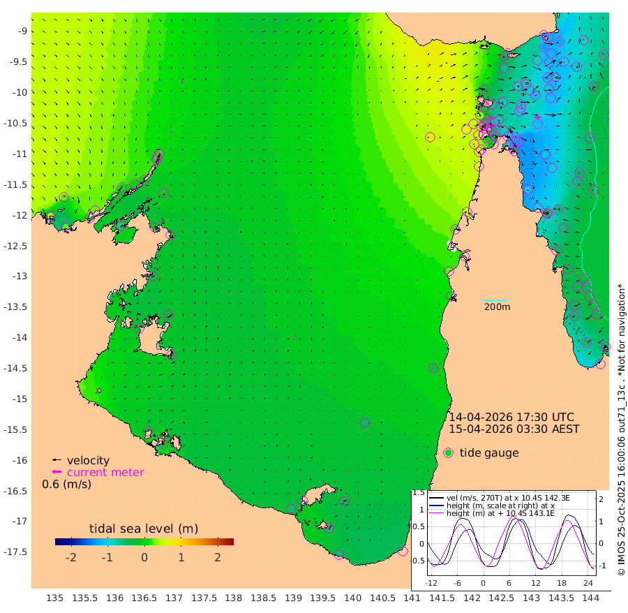 7cm/s 160T +3cm/s rms + 7cm/s -42T. ARA-GOC87 57m 8cm/s 36T +3cm/s rms + 2cm/s -2T. ARA-GOC87 60m 11cm/s 150T +2cm/s rms + 3cm/s 61T. ARA-GOC87 47m -124cm Daru -117cm Bobo Island -48cm Meer Island Barge -85cm Bramble Cay -113cm Unnamed Cay -107cm Pearce Cay -100cm Stephens Island -122cm Merrie England Shoals -132cm Mutacomal Reef -85cm Darnley Island Barge -58cm East Cay -97cm Yorke Island Barge -113cm Rennel Island -102cm Aureed Island -105cm Dungeness Reef -84cm Zagai Island -84cm Yam Island -36cm Dauan Island -30cm Saibai Island -65cm Phipi Reef -89cm Warrior Reef - West -21cm Mabuiag Island Barge -107cm Half Way Island -115cm Coconut Island -109cm Dugong Islet -101cm Poll Island -103cm Kirkcaldie Reef -83cm Suarji Island -90cm Sue Islet 31cm Hawkesbury Island -77cm Alert Patches -79cm Twin Island 21cm Badu Island -74cm St Pauls (Moa Island) 0cm Kubin (Moa Island) -47cm Ince Point -26cm Thursday Island -32cm Nardana Patches -7cm Turtle Head 7cm Round Island 36cm Goods Island 67cm Booby Island 51cm White Rocks Area 79cm Carpentaria -59cm Papou Point 61cm Bampfield Head 51cm Crab Island 52cm Red Wallis Island 5cm Packe Island -125cm Harrington Reef 43cm Herald Camp -27cm Sharp Point -4cm Red Island Point -42cm Possession Island -85cm Alpha Rock -101cm Frederick Point -127cm Wyborn Reef Light -124cm Tetley Island -50cm Triangle Reef -119cm Turtle Head Island -45cm Maclennan Cay -26cm Raine Island -102cm Mcsweeny Reef -94cm Collette Reef -55cm Shadwell Reef -104cm Hannibal Island -91cm Round Point 54cm Vrilya Point -76cm Cape Grenville -62cm Hicks Island -48cm Sir Charles Hardy Island -22cm Harvey Island -59cm Kay Reef -37cm Rocky Island -28cm Chapman Island -24cm Ham Reef -32cm Jubilee Reef -40cm Night Island -30cm Unnamed Reef No. 3 -41cm Morris Island -24cm 1st 3 Mile Opening -33cm Creech Reef -49cm Fife Island -35cm Eden Reef -41cm Stanley Island -48cm Normanby River 39cm Yabooma Island 24cm Hutchison River 28cm Elcho Island 27cm North West Crocodile Island 19cm Cape Wessel 7cm Stevens Island -5cm Guluwuru Island 14cm Hopeful Bay 18cm Auster Point 22cm Two Island Bay 11cm Cadell Strait -79cm Mallison Island -7cm Melville Bay (Gove Harbour) -3cm Truant Island -8cm Cape Arnhem -9cm Cape Grey -26cm Hawk Island -13cm Milner Bay (Groote Eylandt) -24cm Cape Beatrice -23cm West Island -22cm Centre Island -60cm Mornington Island -53cm West Wellesley Islands -43cm Bountiful Island -64cm Albert River Mouth -68cm Sweers Island -71cm Karumba -45cm Nassau River Offshore -24cm Christmas Creek 8cm Archer River 25cm Boyd Point 33cm Weipa (Humbug Point) 19cm Pennefather River 52cm Cullen Point