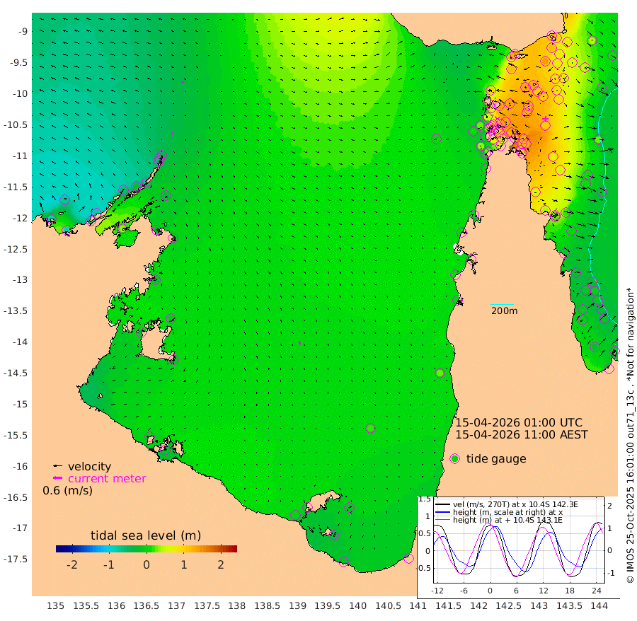 10cm/s -86T +3cm/s rms + 7cm/s -42T. ARA-GOC87 57m 22cm/s 171T +3cm/s rms + 2cm/s -2T. ARA-GOC87 60m 18cm/s -89T +2cm/s rms + 3cm/s 61T. ARA-GOC87 47m 109cm Daru 95cm Bobo Island 4cm Meer Island Barge 38cm Bramble Cay 77cm Unnamed Cay 78cm Pearce Cay 59cm Stephens Island 76cm Merrie England Shoals 115cm Mutacomal Reef 47cm Darnley Island Barge 9cm East Cay 74cm Yorke Island Barge 88cm Rennel Island 86cm Aureed Island 105cm Dungeness Reef 128cm Zagai Island 134cm Yam Island 125cm Dauan Island 120cm Saibai Island 119cm Phipi Reef 142cm Warrior Reef - West 102cm Mabuiag Island Barge 88cm Half Way Island 112cm Coconut Island 103cm Dugong Islet 125cm Poll Island 119cm Kirkcaldie Reef 130cm Suarji Island 118cm Sue Islet 47cm Hawkesbury Island 122cm Alert Patches 128cm Twin Island 61cm Badu Island 137cm St Pauls (Moa Island) 74cm Kubin (Moa Island) 110cm Ince Point 95cm Thursday Island 100cm Nardana Patches 73cm Turtle Head 48cm Round Island 35cm Goods Island 12cm Booby Island 23cm White Rocks Area 4cm Carpentaria 112cm Papou Point -3cm Bampfield Head 8cm Crab Island 32cm Red Wallis Island 69cm Packe Island 116cm Harrington Reef 28cm Herald Camp 49cm Sharp Point 60cm Red Island Point 80cm Possession Island 127cm Alpha Rock 125cm Frederick Point 117cm Wyborn Reef Light 125cm Tetley Island 27cm Triangle Reef 97cm Turtle Head Island 13cm Maclennan Cay -18cm Raine Island 70cm Mcsweeny Reef 55cm Collette Reef 13cm Shadwell Reef 56cm Hannibal Island 39cm Round Point 4cm Vrilya Point 29cm Cape Grenville 15cm Hicks Island 16cm Sir Charles Hardy Island 7cm Harvey Island 7cm Kay Reef -8cm Rocky Island -15cm Chapman Island -16cm Ham Reef -10cm Jubilee Reef -1cm Night Island -11cm Unnamed Reef No. 3 -9cm Morris Island -21cm 1st 3 Mile Opening -12cm Creech Reef -2cm Fife Island -25cm Eden Reef -13cm Stanley Island -11cm Normanby River -87cm Yabooma Island -84cm Hutchison River -80cm Elcho Island -72cm North West Crocodile Island -41cm Cape Wessel -58cm Stevens Island -25cm Guluwuru Island -69cm Hopeful Bay -60cm Auster Point -55cm Two Island Bay -59cm Cadell Strait 33cm Mallison Island -27cm Melville Bay (Gove Harbour) -28cm Truant Island -15cm Cape Arnhem -21cm Cape Grey -11cm Hawk Island -21cm Milner Bay (Groote Eylandt) -8cm Cape Beatrice 0cm West Island -8cm Centre Island 6cm Mornington Island 4cm West Wellesley Islands -14cm Bountiful Island -18cm Albert River Mouth -41cm Sweers Island -15cm Karumba 21cm Nassau River Offshore 23cm Christmas Creek 2cm Archer River 8cm Boyd Point -2cm Weipa (Humbug Point) 3cm Pennefather River 6cm Cullen Point