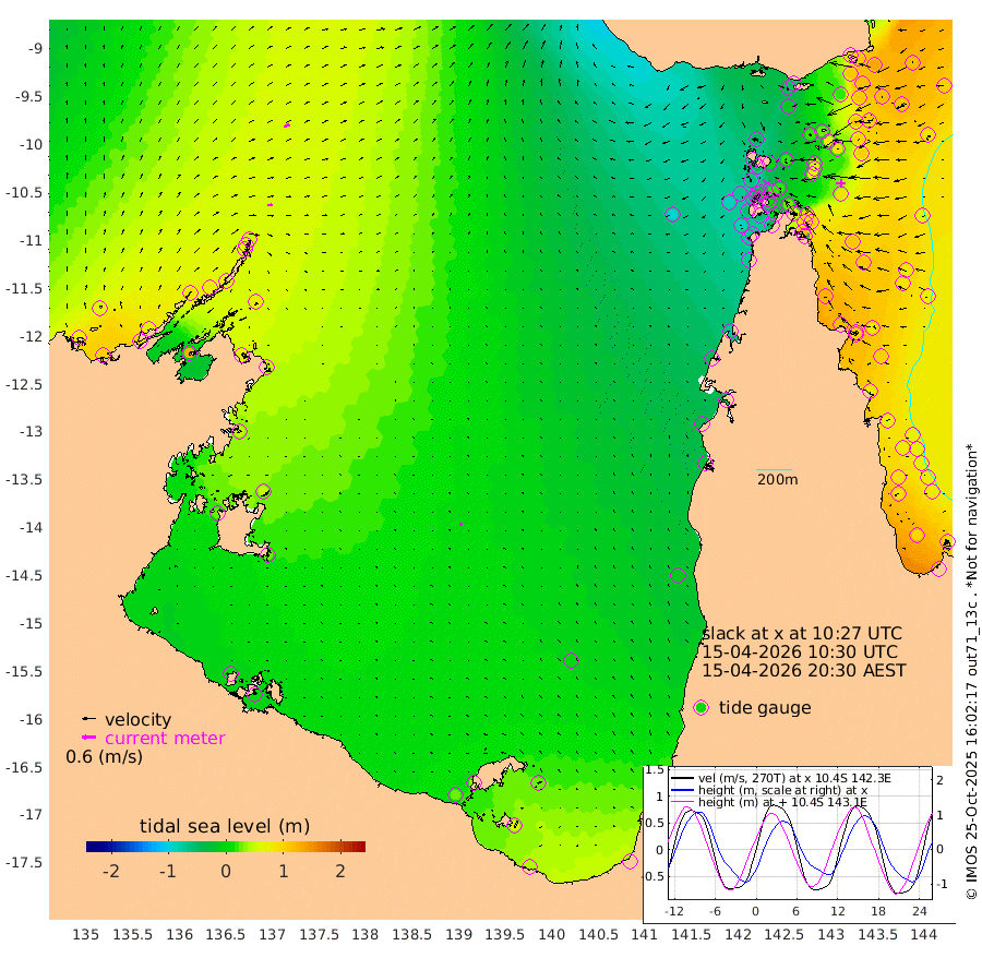 21cm/s 81T +3cm/s rms + 7cm/s -42T. ARA-GOC87 57m 13cm/s -17T +3cm/s rms + 2cm/s -2T. ARA-GOC87 60m 25cm/s 69T +2cm/s rms + 3cm/s 61T. ARA-GOC87 47m 104cm Daru 109cm Bobo Island 88cm Meer Island Barge 113cm Bramble Cay 119cm Unnamed Cay 110cm Pearce Cay 116cm Stephens Island 130cm Merrie England Shoals 109cm Mutacomal Reef 106cm Darnley Island Barge 99cm East Cay 99cm Yorke Island Barge 106cm Rennel Island 94cm Aureed Island 79cm Dungeness Reef 26cm Zagai Island 21cm Yam Island -52cm Dauan Island -53cm Saibai Island -9cm Phipi Reef 16cm Warrior Reef - West -47cm Mabuiag Island Barge 100cm Half Way Island 88cm Coconut Island 88cm Dugong Islet 53cm Poll Island 63cm Kirkcaldie Reef 22cm Suarji Island 45cm Sue Islet -67cm Hawkesbury Island 18cm Alert Patches 19cm Twin Island -64cm Badu Island 2cm St Pauls (Moa Island) -46cm Kubin (Moa Island) -15cm Ince Point -30cm Thursday Island -27cm Nardana Patches -39cm Turtle Head -36cm Round Island -64cm Goods Island -88cm Booby Island -74cm White Rocks Area -97cm Carpentaria 6cm Papou Point -55cm Bampfield Head -69cm Crab Island -88cm Red Wallis Island -55cm Packe Island 102cm Harrington Reef -68cm Herald Camp -4cm Sharp Point -32cm Red Island Point 7cm Possession Island 26cm Alpha Rock 54cm Frederick Point 103cm Wyborn Reef Light 90cm Tetley Island 66cm Triangle Reef 116cm Turtle Head Island 77cm Maclennan Cay 72cm Raine Island 108cm Mcsweeny Reef 107cm Collette Reef 85cm Shadwell Reef 123cm Hannibal Island 119cm Round Point -73cm Vrilya Point 105cm Cape Grenville 99cm Hicks Island 82cm Sir Charles Hardy Island 32cm Harvey Island 100cm Kay Reef 82cm Rocky Island 73cm Chapman Island 68cm Ham Reef 77cm Jubilee Reef 75cm Night Island 71cm Unnamed Reef No. 3 88cm Morris Island 76cm 1st 3 Mile Opening 79cm Creech Reef 89cm Fife Island 96cm Eden Reef 91cm Stanley Island 103cm Normanby River 72cm Yabooma Island 98cm Hutchison River 76cm Elcho Island 66cm North West Crocodile Island 57cm Cape Wessel 88cm Stevens Island 79cm Guluwuru Island 79cm Hopeful Bay 73cm Auster Point 64cm Two Island Bay 93cm Cadell Strait 123cm Mallison Island 74cm Melville Bay (Gove Harbour) 76cm Truant Island 52cm Cape Arnhem 49cm Cape Grey 46cm Hawk Island 29cm Milner Bay (Groote Eylandt) 23cm Cape Beatrice 1cm West Island 4cm Centre Island 30cm Mornington Island 24cm West Wellesley Islands 29cm Bountiful Island 40cm Albert River Mouth 65cm Sweers Island 45cm Karumba 5cm Nassau River Offshore -11cm Christmas Creek -25cm Archer River -44cm Boyd Point -46cm Weipa (Humbug Point) -33cm Pennefather River -75cm Cullen Point