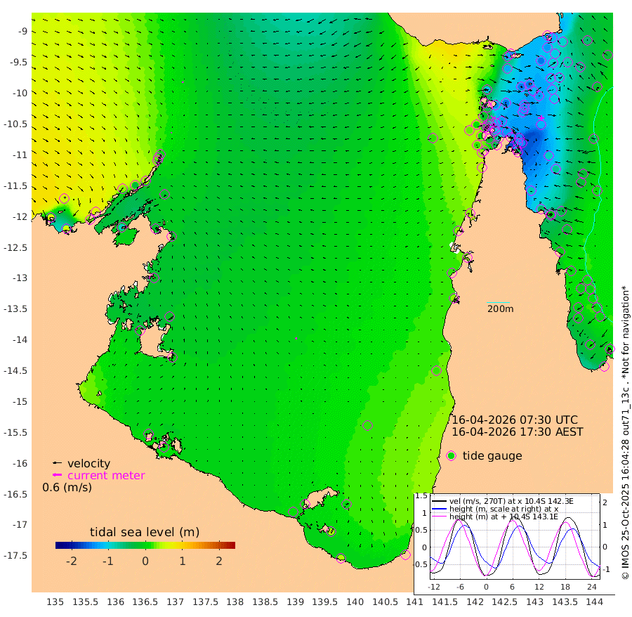 7cm/s -134T +3cm/s rms + 7cm/s -42T. ARA-GOC87 57m 11cm/s -54T +3cm/s rms + 2cm/s -2T. ARA-GOC87 60m 5cm/s -170T +2cm/s rms + 3cm/s 61T. ARA-GOC87 47m -126cm Daru -117cm Bobo Island -21cm Meer Island Barge -53cm Bramble Cay -98cm Unnamed Cay -93cm Pearce Cay -77cm Stephens Island -90cm Merrie England Shoals -129cm Mutacomal Reef -69cm Darnley Island Barge -25cm East Cay -98cm Yorke Island Barge -101cm Rennel Island -105cm Aureed Island -118cm Dungeness Reef -147cm Zagai Island -145cm Yam Island -120cm Dauan Island -133cm Saibai Island -121cm Phipi Reef -149cm Warrior Reef - West -106cm Mabuiag Island Barge -100cm Half Way Island -128cm Coconut Island -116cm Dugong Islet -134cm Poll Island -130cm Kirkcaldie Reef -146cm Suarji Island -139cm Sue Islet -19cm Hawkesbury Island -124cm Alert Patches -132cm Twin Island -39cm Badu Island -141cm St Pauls (Moa Island) -50cm Kubin (Moa Island) -102cm Ince Point -83cm Thursday Island -89cm Nardana Patches -49cm Turtle Head -36cm Round Island -1cm Goods Island 26cm Booby Island 12cm White Rocks Area 17cm Carpentaria -121cm Papou Point 9cm Bampfield Head 32cm Crab Island 16cm Red Wallis Island -26cm Packe Island -132cm Harrington Reef -5cm Herald Camp -50cm Sharp Point -47cm Red Island Point -87cm Possession Island -133cm Alpha Rock -134cm Frederick Point -135cm Wyborn Reef Light -141cm Tetley Island -37cm Triangle Reef -120cm Turtle Head Island -26cm Maclennan Cay 9cm Raine Island -87cm Mcsweeny Reef -72cm Collette Reef -27cm Shadwell Reef -76cm Hannibal Island -51cm Round Point 39cm Vrilya Point -43cm Cape Grenville -32cm Hicks Island -36cm Sir Charles Hardy Island -13cm Harvey Island -23cm Kay Reef -6cm Rocky Island 4cm Chapman Island 3cm Ham Reef -4cm Jubilee Reef -4cm Night Island 3cm Unnamed Reef No. 3 -3cm Morris Island 6cm 1st 3 Mile Opening 1cm Creech Reef 0cm Fife Island 12cm Eden Reef 1cm Stanley Island -4cm Normanby River 61cm Yabooma Island 55cm Hutchison River 61cm Elcho Island 57cm North West Crocodile Island 1cm Cape Wessel 31cm Stevens Island -27cm Guluwuru Island 42cm Hopeful Bay 21cm Auster Point 23cm Two Island Bay 28cm Cadell Strait -87cm Mallison Island -16cm Melville Bay (Gove Harbour) -18cm Truant Island -17cm Cape Arnhem -18cm Cape Grey -10cm Hawk Island -3cm Milner Bay (Groote Eylandt) 2cm Cape Beatrice -5cm West Island 1cm Centre Island 12cm Mornington Island 12cm West Wellesley Islands 7cm Bountiful Island 45cm Albert River Mouth 43cm Sweers Island 43cm Karumba 17cm Nassau River Offshore 16cm Christmas Creek 33cm Archer River 22cm Boyd Point 37cm Weipa (Humbug Point) 36cm Pennefather River 32cm Cullen Point