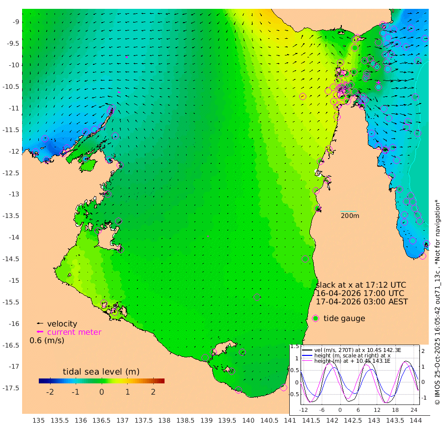 22cm/s -79T +3cm/s rms + 7cm/s -42T. ARA-GOC87 57m 9cm/s 39T +3cm/s rms + 2cm/s -2T. ARA-GOC87 60m 20cm/s -96T +2cm/s rms + 3cm/s 61T. ARA-GOC87 47m -100cm Daru -104cm Bobo Island -85cm Meer Island Barge -111cm Bramble Cay -112cm Unnamed Cay -113cm Pearce Cay -115cm Stephens Island -123cm Merrie England Shoals -105cm Mutacomal Reef -100cm Darnley Island Barge -95cm East Cay -93cm Yorke Island Barge -105cm Rennel Island -89cm Aureed Island -79cm Dungeness Reef -24cm Zagai Island -29cm Yam Island 31cm Dauan Island 46cm Saibai Island 11cm Phipi Reef -25cm Warrior Reef - West 41cm Mabuiag Island Barge -105cm Half Way Island -80cm Coconut Island -94cm Dugong Islet -56cm Poll Island -66cm Kirkcaldie Reef -10cm Suarji Island -39cm Sue Islet 33cm Hawkesbury Island -14cm Alert Patches -22cm Twin Island 38cm Badu Island -7cm St Pauls (Moa Island) 16cm Kubin (Moa Island) 4cm Ince Point 16cm Thursday Island 14cm Nardana Patches 19cm Turtle Head 34cm Round Island 33cm Goods Island 58cm Booby Island 44cm White Rocks Area 85cm Carpentaria -11cm Papou Point 70cm Bampfield Head 45cm Crab Island 49cm Red Wallis Island 19cm Packe Island -98cm Harrington Reef 55cm Herald Camp 5cm Sharp Point 18cm Red Island Point 7cm Possession Island -26cm Alpha Rock -54cm Frederick Point -96cm Wyborn Reef Light -84cm Tetley Island -66cm Triangle Reef -110cm Turtle Head Island -77cm Maclennan Cay -70cm Raine Island -103cm Mcsweeny Reef -97cm Collette Reef -78cm Shadwell Reef -112cm Hannibal Island -116cm Round Point 49cm Vrilya Point -98cm Cape Grenville -95cm Hicks Island -81cm Sir Charles Hardy Island -30cm Harvey Island -92cm Kay Reef -77cm Rocky Island -67cm Chapman Island -64cm Ham Reef -75cm Jubilee Reef -74cm Night Island -69cm Unnamed Reef No. 3 -85cm Morris Island -71cm 1st 3 Mile Opening -76cm Creech Reef -91cm Fife Island -97cm Eden Reef -87cm Stanley Island -103cm Normanby River -127cm Yabooma Island -162cm Hutchison River -132cm Elcho Island -127cm North West Crocodile Island -85cm Cape Wessel -130cm Stevens Island -103cm Guluwuru Island -108cm Hopeful Bay -96cm Auster Point -106cm Two Island Bay -160cm Cadell Strait -124cm Mallison Island -91cm Melville Bay (Gove Harbour) -92cm Truant Island -57cm Cape Arnhem -34cm Cape Grey -27cm Hawk Island 6cm Milner Bay (Groote Eylandt) -1cm Cape Beatrice 36cm West Island 45cm Centre Island 1cm Mornington Island 5cm West Wellesley Islands 11cm Bountiful Island -20cm Albert River Mouth -5cm Sweers Island -16cm Karumba -7cm Nassau River Offshore 1cm Christmas Creek 15cm Archer River 29cm Boyd Point 28cm Weipa (Humbug Point) 21cm Pennefather River 54cm Cullen Point