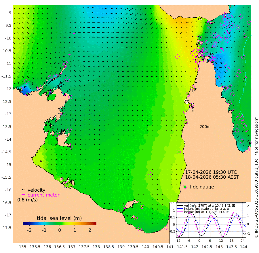 31cm/s -88T +3cm/s rms + 7cm/s -42T. ARA-GOC87 57m 3cm/s -64T +3cm/s rms + 2cm/s -2T. ARA-GOC87 60m 28cm/s -103T +2cm/s rms + 3cm/s 61T. ARA-GOC87 47m -119cm Daru -117cm Bobo Island -41cm Meer Island Barge -71cm Bramble Cay -99cm Unnamed Cay -103cm Pearce Cay -90cm Stephens Island -101cm Merrie England Shoals -116cm Mutacomal Reef -81cm Darnley Island Barge -43cm East Cay -96cm Yorke Island Barge -101cm Rennel Island -100cm Aureed Island -101cm Dungeness Reef -102cm Zagai Island -93cm Yam Island -53cm Dauan Island -48cm Saibai Island -64cm Phipi Reef -99cm Warrior Reef - West -26cm Mabuiag Island Barge -103cm Half Way Island -112cm Coconut Island -104cm Dugong Islet -102cm Poll Island -102cm Kirkcaldie Reef -78cm Suarji Island -95cm Sue Islet 48cm Hawkesbury Island -68cm Alert Patches -79cm Twin Island 25cm Badu Island -80cm St Pauls (Moa Island) 5cm Kubin (Moa Island) -43cm Ince Point -21cm Thursday Island -27cm Nardana Patches 6cm Turtle Head 27cm Round Island 52cm Goods Island 83cm Booby Island 72cm White Rocks Area 78cm Carpentaria -69cm Papou Point 84cm Bampfield Head 61cm Crab Island 69cm Red Wallis Island 25cm Packe Island -118cm Harrington Reef 71cm Herald Camp -29cm Sharp Point 7cm Red Island Point -32cm Possession Island -81cm Alpha Rock -97cm Frederick Point -119cm Wyborn Reef Light -118cm Tetley Island -42cm Triangle Reef -120cm Turtle Head Island -35cm Maclennan Cay -14cm Raine Island -91cm Mcsweeny Reef -79cm Collette Reef -41cm Shadwell Reef -88cm Hannibal Island -70cm Round Point 60cm Vrilya Point -54cm Cape Grenville -48cm Hicks Island -34cm Sir Charles Hardy Island -17cm Harvey Island -35cm Kay Reef -20cm Rocky Island -8cm Chapman Island -8cm Ham Reef -21cm Jubilee Reef -25cm Night Island -12cm Unnamed Reef No. 3 -24cm Morris Island -14cm 1st 3 Mile Opening -19cm Creech Reef -29cm Fife Island -20cm Eden Reef -21cm Stanley Island -28cm Normanby River -4cm Yabooma Island -37cm Hutchison River -20cm Elcho Island -16cm North West Crocodile Island -44cm Cape Wessel -47cm Stevens Island -90cm Guluwuru Island -22cm Hopeful Bay -36cm Auster Point -42cm Two Island Bay -77cm Cadell Strait -177cm Mallison Island -68cm Melville Bay (Gove Harbour) -74cm Truant Island -55cm Cape Arnhem -33cm Cape Grey -29cm Hawk Island -4cm Milner Bay (Groote Eylandt) -3cm Cape Beatrice 21cm West Island 22cm Centre Island 7cm Mornington Island 15cm West Wellesley Islands 45cm Bountiful Island 17cm Albert River Mouth 26cm Sweers Island 23cm Karumba 23cm Nassau River Offshore 29cm Christmas Creek 45cm Archer River 46cm Boyd Point 63cm Weipa (Humbug Point) 31cm Pennefather River 67cm Cullen Point