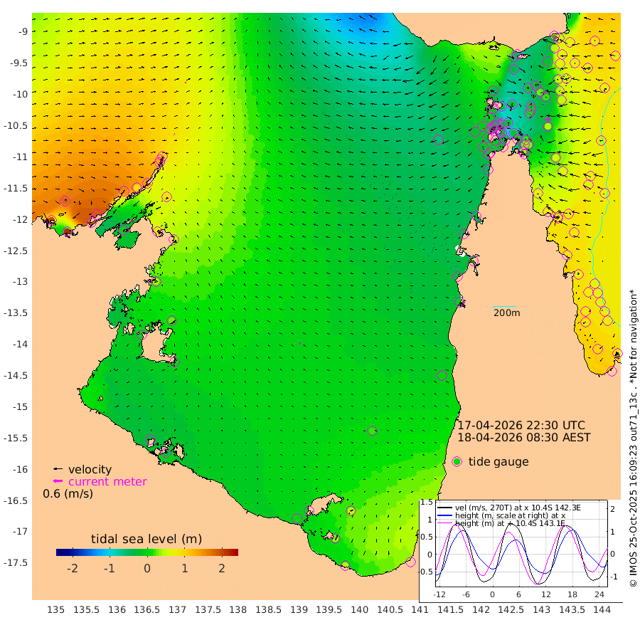 3cm/s 124T +3cm/s rms + 7cm/s -42T. ARA-GOC87 57m 9cm/s -117T +3cm/s rms + 2cm/s -2T. ARA-GOC87 60m 7cm/s 86T +2cm/s rms + 3cm/s 61T. ARA-GOC87 47m 37cm Daru 47cm Bobo Island 69cm Meer Island Barge 77cm Bramble Cay 61cm Unnamed Cay 64cm Pearce Cay 69cm Stephens Island 64cm Merrie England Shoals 41cm Mutacomal Reef 61cm Darnley Island Barge 81cm East Cay 45cm Yorke Island Barge 51cm Rennel Island 41cm Aureed Island 29cm Dungeness Reef -24cm Zagai Island -13cm Yam Island -50cm Dauan Island -58cm Saibai Island -35cm Phipi Reef -20cm Warrior Reef - West -47cm Mabuiag Island Barge 49cm Half Way Island 19cm Coconut Island 40cm Dugong Islet 3cm Poll Island 10cm Kirkcaldie Reef -22cm Suarji Island -8cm Sue Islet -4cm Hawkesbury Island -25cm Alert Patches -21cm Twin Island -22cm Badu Island -33cm St Pauls (Moa Island) -11cm Kubin (Moa Island) -28cm Ince Point -30cm Thursday Island -30cm Nardana Patches -18cm Turtle Head -16cm Round Island -7cm Goods Island -21cm Booby Island -8cm White Rocks Area -59cm Carpentaria -22cm Papou Point -24cm Bampfield Head -31cm Crab Island -24cm Red Wallis Island -14cm Packe Island 35cm Harrington Reef -12cm Herald Camp -23cm Sharp Point -11cm Red Island Point -21cm Possession Island -20cm Alpha Rock 2cm Frederick Point 31cm Wyborn Reef Light 20cm Tetley Island 49cm Triangle Reef 45cm Turtle Head Island 66cm Maclennan Cay 66cm Raine Island 55cm Mcsweeny Reef 54cm Collette Reef 57cm Shadwell Reef 65cm Hannibal Island 80cm Round Point -46cm Vrilya Point 71cm Cape Grenville 76cm Hicks Island 76cm Sir Charles Hardy Island 22cm Harvey Island 77cm Kay Reef 75cm Rocky Island 71cm Chapman Island 67cm Ham Reef 70cm Jubilee Reef 61cm Night Island 67cm Unnamed Reef No. 3 79cm Morris Island 68cm 1st 3 Mile Opening 70cm Creech Reef 77cm Fife Island 94cm Eden Reef 78cm Stanley Island 97cm Normanby River 191cm Yabooma Island 215cm Hutchison River 180cm Elcho Island 179cm North West Crocodile Island 103cm Cape Wessel 152cm Stevens Island 88cm Guluwuru Island 143cm Hopeful Bay 120cm Auster Point 128cm Two Island Bay 173cm Cadell Strait 1cm Mallison Island 88cm Melville Bay (Gove Harbour) 86cm Truant Island 47cm Cape Arnhem 38cm Cape Grey 25cm Hawk Island 1cm Milner Bay (Groote Eylandt) 4cm Cape Beatrice -25cm West Island -37cm Centre Island 0cm Mornington Island 1cm West Wellesley Islands 49cm Bountiful Island 43cm Albert River Mouth 42cm Sweers Island 42cm Karumba 16cm Nassau River Offshore 7cm Christmas Creek -3cm Archer River -15cm Boyd Point 0cm Weipa (Humbug Point) -37cm Pennefather River -35cm Cullen Point