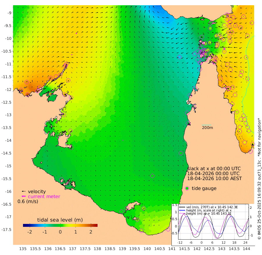 16cm/s 82T +3cm/s rms + 7cm/s -42T. ARA-GOC87 57m 9cm/s -141T +3cm/s rms + 2cm/s -2T. ARA-GOC87 60m 18cm/s 65T +2cm/s rms + 3cm/s 61T. ARA-GOC87 47m 110cm Daru 115cm Bobo Island 77cm Meer Island Barge 104cm Bramble Cay 113cm Unnamed Cay 118cm Pearce Cay 112cm Stephens Island 114cm Merrie England Shoals 112cm Mutacomal Reef 100cm Darnley Island Barge 87cm East Cay 102cm Yorke Island Barge 107cm Rennel Island 100cm Aureed Island 93cm Dungeness Reef 57cm Zagai Island 62cm Yam Island 10cm Dauan Island 5cm Saibai Island 26cm Phipi Reef 62cm Warrior Reef - West -9cm Mabuiag Island Barge 106cm Half Way Island 89cm Coconut Island 104cm Dugong Islet 75cm Poll Island 80cm Kirkcaldie Reef 44cm Suarji Island 66cm Sue Islet -38cm Hawkesbury Island 29cm Alert Patches 40cm Twin Island -38cm Badu Island 34cm St Pauls (Moa Island) -14cm Kubin (Moa Island) 9cm Ince Point -9cm Thursday Island -4cm Nardana Patches -22cm Turtle Head -36cm Round Island -49cm Goods Island -84cm Booby Island -65cm White Rocks Area -111cm Carpentaria 34cm Papou Point -90cm Bampfield Head -82cm Crab Island -77cm Red Wallis Island -34cm Packe Island 107cm Harrington Reef -61cm Herald Camp 5cm Sharp Point -16cm Red Island Point 4cm Possession Island 45cm Alpha Rock 69cm Frederick Point 105cm Wyborn Reef Light 97cm Tetley Island 64cm Triangle Reef 112cm Turtle Head Island 73cm Maclennan Cay 53cm Raine Island 102cm Mcsweeny Reef 93cm Collette Reef 67cm Shadwell Reef 107cm Hannibal Island 105cm Round Point -95cm Vrilya Point 88cm Cape Grenville 87cm Hicks Island 83cm Sir Charles Hardy Island 28cm Harvey Island 80cm Kay Reef 68cm Rocky Island 56cm Chapman Island 54cm Ham Reef 63cm Jubilee Reef 58cm Night Island 54cm Unnamed Reef No. 3 71cm Morris Island 56cm 1st 3 Mile Opening 61cm Creech Reef 72cm Fife Island 79cm Eden Reef 69cm Stanley Island 89cm Normanby River 150cm Yabooma Island 187cm Hutchison River 149cm Elcho Island 148cm North West Crocodile Island 108cm Cape Wessel 143cm Stevens Island 126cm Guluwuru Island 122cm Hopeful Bay 113cm Auster Point 126cm Two Island Bay 180cm Cadell Strait 108cm Mallison Island 112cm Melville Bay (Gove Harbour) 112cm Truant Island 71cm Cape Arnhem 55cm Cape Grey 41cm Hawk Island 10cm Milner Bay (Groote Eylandt) 12cm Cape Beatrice -20cm West Island -34cm Centre Island 7cm Mornington Island 4cm West Wellesley Islands 37cm Bountiful Island 40cm Albert River Mouth 36cm Sweers Island 36cm Karumba 7cm Nassau River Offshore -11cm Christmas Creek -39cm Archer River -49cm Boyd Point -49cm Weipa (Humbug Point) -69cm Pennefather River -84cm Cullen Point