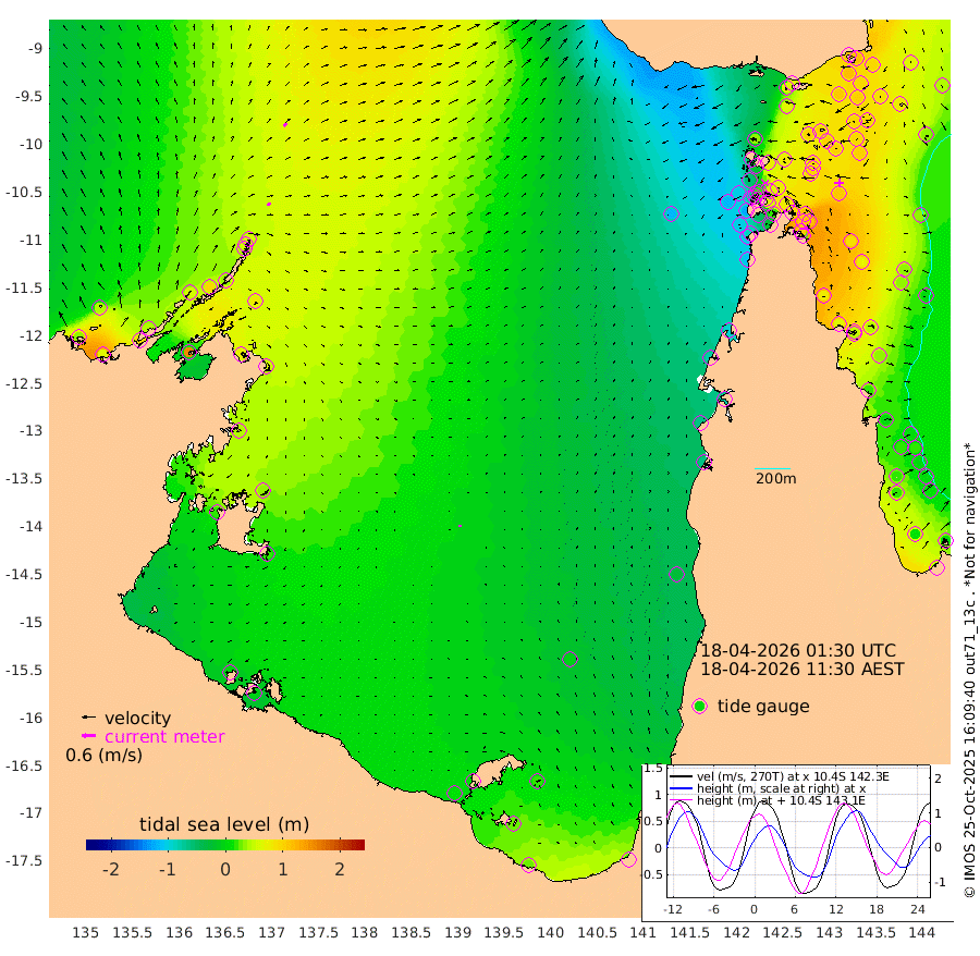 18cm/s 66T +3cm/s rms + 7cm/s -42T. ARA-GOC87 57m 7cm/s -178T +3cm/s rms + 2cm/s -2T. ARA-GOC87 60m 19cm/s 48T +2cm/s rms + 3cm/s 61T. ARA-GOC87 47m 115cm Daru 113cm Bobo Island 36cm Meer Island Barge 67cm Bramble Cay 97cm Unnamed Cay 98cm Pearce Cay 86cm Stephens Island 94cm Merrie England Shoals 115cm Mutacomal Reef 77cm Darnley Island Barge 39cm East Cay 95cm Yorke Island Barge 96cm Rennel Island 97cm Aureed Island 99cm Dungeness Reef 102cm Zagai Island 100cm Yam Island 62cm Dauan Island 65cm Saibai Island 65cm Phipi Reef 106cm Warrior Reef - West 30cm Mabuiag Island Barge 98cm Half Way Island 101cm Coconut Island 105cm Dugong Islet 100cm Poll Island 99cm Kirkcaldie Reef 78cm Suarji Island 98cm Sue Islet -59cm Hawkesbury Island 58cm Alert Patches 72cm Twin Island -43cm Badu Island 76cm St Pauls (Moa Island) -18cm Kubin (Moa Island) 34cm Ince Point 8cm Thursday Island 16cm Nardana Patches -24cm Turtle Head -48cm Round Island -75cm Goods Island -114cm Booby Island -98cm White Rocks Area -114cm Carpentaria 65cm Papou Point -125cm Bampfield Head -102cm Crab Island -99cm Red Wallis Island -47cm Packe Island 112cm Harrington Reef -87cm Herald Camp 29cm Sharp Point -18cm Red Island Point 15cm Possession Island 80cm Alpha Rock 91cm Frederick Point 114cm Wyborn Reef Light 113cm Tetley Island 37cm Triangle Reef 107cm Turtle Head Island 33cm Maclennan Cay 3cm Raine Island 86cm Mcsweeny Reef 72cm Collette Reef 33cm Shadwell Reef 81cm Hannibal Island 63cm Round Point -106cm Vrilya Point 49cm Cape Grenville 43cm Hicks Island 39cm Sir Charles Hardy Island 16cm Harvey Island 32cm Kay Reef 17cm Rocky Island 3cm Chapman Island 5cm Ham Reef 16cm Jubilee Reef 16cm Night Island 5cm Unnamed Reef No. 3 18cm Morris Island 3cm 1st 3 Mile Opening 11cm Creech Reef 20cm Fife Island 13cm Eden Reef 14cm Stanley Island 27cm Normanby River 32cm Yabooma Island 60cm Hutchison River 40cm Elcho Island 44cm North West Crocodile Island 57cm Cape Wessel 59cm Stevens Island 95cm Guluwuru Island 36cm Hopeful Bay 45cm Auster Point 59cm Two Island Bay 94cm Cadell Strait 151cm Mallison Island 75cm Melville Bay (Gove Harbour) 76cm Truant Island 54cm Cape Arnhem 44cm Cape Grey 36cm Hawk Island 17cm Milner Bay (Groote Eylandt) 19cm Cape Beatrice 5cm West Island -7cm Centre Island 14cm Mornington Island 12cm West Wellesley Islands 19cm Bountiful Island 29cm Albert River Mouth 23cm Sweers Island 20cm Karumba -2cm Nassau River Offshore -24cm Christmas Creek -61cm Archer River -64cm Boyd Point -78cm Weipa (Humbug Point) -75cm Pennefather River -97cm Cullen Point