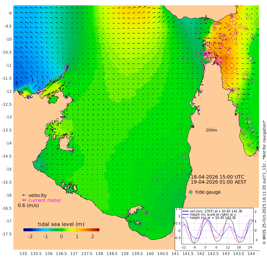 15cm/s 89T +3cm/s rms + 7cm/s -42T. ARA-GOC87 57m 14cm/s 141T +3cm/s rms + 2cm/s -2T. ARA-GOC87 60m 9cm/s 59T +2cm/s rms + 3cm/s 61T. ARA-GOC87 47m 125cm Daru 115cm Bobo Island 39cm Meer Island Barge 59cm Bramble Cay 99cm Unnamed Cay 93cm Pearce Cay 83cm Stephens Island 91cm Merrie England Shoals 119cm Mutacomal Reef 83cm Darnley Island Barge 36cm East Cay 105cm Yorke Island Barge 100cm Rennel Island 109cm Aureed Island 120cm Dungeness Reef 146cm Zagai Island 133cm Yam Island 126cm Dauan Island 127cm Saibai Island 138cm Phipi Reef 146cm Warrior Reef - West 92cm Mabuiag Island Barge 100cm Half Way Island 128cm Coconut Island 112cm Dugong Islet 127cm Poll Island 125cm Kirkcaldie Reef 140cm Suarji Island 132cm Sue Islet 4cm Hawkesbury Island 122cm Alert Patches 123cm Twin Island 33cm Badu Island 133cm St Pauls (Moa Island) 44cm Kubin (Moa Island) 96cm Ince Point 78cm Thursday Island 83cm Nardana Patches 51cm Turtle Head 41cm Round Island 4cm Goods Island -18cm Booby Island -18cm White Rocks Area -4cm Carpentaria 107cm Papou Point 13cm Bampfield Head -15cm Crab Island -15cm Red Wallis Island 27cm Packe Island 125cm Harrington Reef 14cm Herald Camp 47cm Sharp Point 35cm Red Island Point 92cm Possession Island 118cm Alpha Rock 125cm Frederick Point 127cm Wyborn Reef Light 131cm Tetley Island 47cm Triangle Reef 119cm Turtle Head Island 37cm Maclennan Cay 12cm Raine Island 91cm Mcsweeny Reef 82cm Collette Reef 45cm Shadwell Reef 85cm Hannibal Island 57cm Round Point -17cm Vrilya Point 51cm Cape Grenville 44cm Hicks Island 45cm Sir Charles Hardy Island 17cm Harvey Island 32cm Kay Reef 20cm Rocky Island 12cm Chapman Island 11cm Ham Reef 20cm Jubilee Reef 23cm Night Island 11cm Unnamed Reef No. 3 19cm Morris Island 20cm 1st 3 Mile Opening 20cm Creech Reef 16cm Fife Island 11cm Eden Reef 18cm Stanley Island 12cm Normanby River -142cm Yabooma Island -136cm Hutchison River -135cm Elcho Island -140cm North West Crocodile Island -48cm Cape Wessel -94cm Stevens Island 12cm Guluwuru Island -96cm Hopeful Bay -65cm Auster Point -72cm Two Island Bay -83cm Cadell Strait 139cm Mallison Island -3cm Melville Bay (Gove Harbour) 2cm Truant Island 15cm Cape Arnhem 9cm Cape Grey 9cm Hawk Island -2cm Milner Bay (Groote Eylandt) -9cm Cape Beatrice -5cm West Island 2cm Centre Island 7cm Mornington Island 2cm West Wellesley Islands -16cm Bountiful Island -45cm Albert River Mouth -38cm Sweers Island -39cm Karumba 0cm Nassau River Offshore 12cm Christmas Creek -4cm Archer River 3cm Boyd Point -12cm Weipa (Humbug Point) -1cm Pennefather River -11cm Cullen Point
