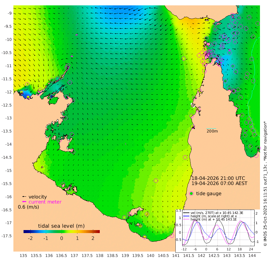 34cm/s -89T +3cm/s rms + 7cm/s -42T. ARA-GOC87 57m 9cm/s -100T +3cm/s rms + 2cm/s -2T. ARA-GOC87 60m 29cm/s -101T +2cm/s rms + 3cm/s 61T. ARA-GOC87 47m -77cm Daru -74cm Bobo Island -10cm Meer Island Barge -27cm Bramble Cay -53cm Unnamed Cay -55cm Pearce Cay -45cm Stephens Island -52cm Merrie England Shoals -71cm Mutacomal Reef -44cm Darnley Island Barge -4cm East Cay -61cm Yorke Island Barge -57cm Rennel Island -63cm Aureed Island -65cm Dungeness Reef -88cm Zagai Island -75cm Yam Island -55cm Dauan Island -60cm Saibai Island -50cm Phipi Reef -81cm Warrior Reef - West -32cm Mabuiag Island Barge -62cm Half Way Island -77cm Coconut Island -66cm Dugong Islet -74cm Poll Island -72cm Kirkcaldie Reef -60cm Suarji Island -77cm Sue Islet 48cm Hawkesbury Island -53cm Alert Patches -62cm Twin Island 24cm Badu Island -69cm St Pauls (Moa Island) 12cm Kubin (Moa Island) -35cm Ince Point -18cm Thursday Island -23cm Nardana Patches 12cm Turtle Head 30cm Round Island 53cm Goods Island 71cm Booby Island 69cm White Rocks Area 42cm Carpentaria -58cm Papou Point 71cm Bampfield Head 49cm Crab Island 60cm Red Wallis Island 31cm Packe Island -76cm Harrington Reef 66cm Herald Camp -30cm Sharp Point 12cm Red Island Point -22cm Possession Island -66cm Alpha Rock -70cm Frederick Point -78cm Wyborn Reef Light -81cm Tetley Island -15cm Triangle Reef -77cm Turtle Head Island -4cm Maclennan Cay 14cm Raine Island -50cm Mcsweeny Reef -41cm Collette Reef -12cm Shadwell Reef -44cm Hannibal Island -23cm Round Point 39cm Vrilya Point -15cm Cape Grenville -10cm Hicks Island -1cm Sir Charles Hardy Island -6cm Harvey Island 1cm Kay Reef 12cm Rocky Island 20cm Chapman Island 16cm Ham Reef 7cm Jubilee Reef 3cm Night Island 15cm Unnamed Reef No. 3 11cm Morris Island 13cm 1st 3 Mile Opening 10cm Creech Reef 7cm Fife Island 17cm Eden Reef 11cm Stanley Island 12cm Normanby River 66cm Yabooma Island 48cm Hutchison River 50cm Elcho Island 54cm North West Crocodile Island -14cm Cape Wessel 13cm Stevens Island -63cm Guluwuru Island 32cm Hopeful Bay 4cm Auster Point -1cm Two Island Bay -14cm Cadell Strait -186cm Mallison Island -37cm Melville Bay (Gove Harbour) -46cm Truant Island -39cm Cape Arnhem -20cm Cape Grey -13cm Hawk Island -1cm Milner Bay (Groote Eylandt) 6cm Cape Beatrice 18cm West Island 15cm Centre Island 29cm Mornington Island 32cm West Wellesley Islands 80cm Bountiful Island 63cm Albert River Mouth 70cm Sweers Island 71cm Karumba 47cm Nassau River Offshore 44cm Christmas Creek 48cm Archer River 39cm Boyd Point 63cm Weipa (Humbug Point) 20cm Pennefather River 49cm Cullen Point