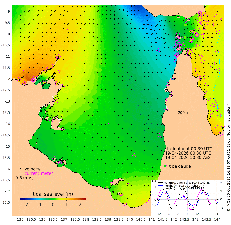 14cm/s 71T +3cm/s rms + 7cm/s -42T. ARA-GOC87 57m 10cm/s -102T +3cm/s rms + 2cm/s -2T. ARA-GOC87 60m 20cm/s 57T +2cm/s rms + 3cm/s 61T. ARA-GOC87 47m 83cm Daru 91cm Bobo Island 60cm Meer Island Barge 80cm Bramble Cay 85cm Unnamed Cay 93cm Pearce Cay 86cm Stephens Island 83cm Merrie England Shoals 81cm Mutacomal Reef 77cm Darnley Island Barge 68cm East Cay 78cm Yorke Island Barge 80cm Rennel Island 79cm Aureed Island 71cm Dungeness Reef 43cm Zagai Island 43cm Yam Island 5cm Dauan Island -1cm Saibai Island 23cm Phipi Reef 48cm Warrior Reef - West -22cm Mabuiag Island Barge 78cm Half Way Island 65cm Coconut Island 76cm Dugong Islet 53cm Poll Island 53cm Kirkcaldie Reef 29cm Suarji Island 43cm Sue Islet -62cm Hawkesbury Island 7cm Alert Patches 18cm Twin Island -57cm Badu Island 14cm St Pauls (Moa Island) -34cm Kubin (Moa Island) -11cm Ince Point -30cm Thursday Island -24cm Nardana Patches -42cm Turtle Head -52cm Round Island -70cm Goods Island -106cm Booby Island -88cm White Rocks Area -134cm Carpentaria 14cm Papou Point -110cm Bampfield Head -102cm Crab Island -100cm Red Wallis Island -56cm Packe Island 77cm Harrington Reef -79cm Herald Camp 0cm Sharp Point -35cm Red Island Point -12cm Possession Island 21cm Alpha Rock 44cm Frederick Point 76cm Wyborn Reef Light 69cm Tetley Island 48cm Triangle Reef 80cm Turtle Head Island 54cm Maclennan Cay 39cm Raine Island 76cm Mcsweeny Reef 69cm Collette Reef 49cm Shadwell Reef 80cm Hannibal Island 80cm Round Point -118cm Vrilya Point 64cm Cape Grenville 67cm Hicks Island 63cm Sir Charles Hardy Island 21cm Harvey Island 58cm Kay Reef 52cm Rocky Island 41cm Chapman Island 39cm Ham Reef 46cm Jubilee Reef 43cm Night Island 38cm Unnamed Reef No. 3 54cm Morris Island 40cm 1st 3 Mile Opening 45cm Creech Reef 54cm Fife Island 62cm Eden Reef 49cm Stanley Island 69cm Normanby River 159cm Yabooma Island 201cm Hutchison River 162cm Elcho Island 161cm North West Crocodile Island 111cm Cape Wessel 150cm Stevens Island 127cm Guluwuru Island 132cm Hopeful Bay 119cm Auster Point 131cm Two Island Bay 187cm Cadell Strait 87cm Mallison Island 116cm Melville Bay (Gove Harbour) 115cm Truant Island 75cm Cape Arnhem 62cm Cape Grey 53cm Hawk Island 24cm Milner Bay (Groote Eylandt) 25cm Cape Beatrice -5cm West Island -17cm Centre Island 31cm Mornington Island 25cm West Wellesley Islands 70cm Bountiful Island 85cm Albert River Mouth 87cm Sweers Island 79cm Karumba 20cm Nassau River Offshore -9cm Christmas Creek -46cm Archer River -60cm Boyd Point -57cm Weipa (Humbug Point) -84cm Pennefather River -100cm Cullen Point
