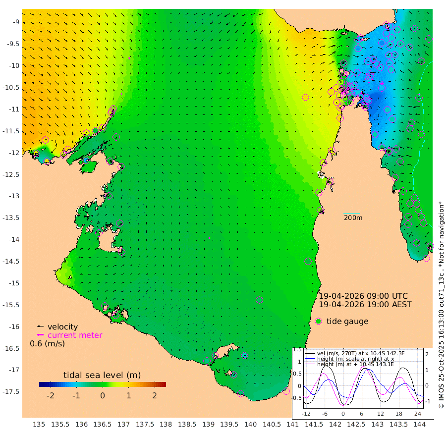 11cm/s 177T +3cm/s rms + 7cm/s -42T. ARA-GOC87 57m 16cm/s -2T +3cm/s rms + 2cm/s -2T. ARA-GOC87 60m 17cm/s 160T +2cm/s rms + 3cm/s 61T. ARA-GOC87 47m -120cm Daru -111cm Bobo Island -39cm Meer Island Barge -60cm Bramble Cay -97cm Unnamed Cay -91cm Pearce Cay -82cm Stephens Island -86cm Merrie England Shoals -114cm Mutacomal Reef -82cm Darnley Island Barge -36cm East Cay -103cm Yorke Island Barge -95cm Rennel Island -106cm Aureed Island -114cm Dungeness Reef -133cm Zagai Island -124cm Yam Island -118cm Dauan Island -120cm Saibai Island -129cm Phipi Reef -142cm Warrior Reef - West -68cm Mabuiag Island Barge -94cm Half Way Island -110cm Coconut Island -109cm Dugong Islet -114cm Poll Island -110cm Kirkcaldie Reef -121cm Suarji Island -122cm Sue Islet 45cm Hawkesbury Island -90cm Alert Patches -95cm Twin Island 20cm Badu Island -107cm St Pauls (Moa Island) -3cm Kubin (Moa Island) -62cm Ince Point -37cm Thursday Island -45cm Nardana Patches -6cm Turtle Head 11cm Round Island 52cm Goods Island 89cm Booby Island 82cm White Rocks Area 83cm Carpentaria -81cm Papou Point 73cm Bampfield Head 87cm Crab Island 82cm Red Wallis Island 24cm Packe Island -113cm Harrington Reef 39cm Herald Camp -42cm Sharp Point 5cm Red Island Point -52cm Possession Island -98cm Alpha Rock -104cm Frederick Point -114cm Wyborn Reef Light -116cm Tetley Island -44cm Triangle Reef -100cm Turtle Head Island -37cm Maclennan Cay -5cm Raine Island -86cm Mcsweeny Reef -77cm Collette Reef -41cm Shadwell Reef -82cm Hannibal Island -54cm Round Point 93cm Vrilya Point -50cm Cape Grenville -43cm Hicks Island -50cm Sir Charles Hardy Island -16cm Harvey Island -31cm Kay Reef -22cm Rocky Island -9cm Chapman Island -10cm Ham Reef -18cm Jubilee Reef -20cm Night Island -7cm Unnamed Reef No. 3 -18cm Morris Island -13cm 1st 3 Mile Opening -16cm Creech Reef -16cm Fife Island -13cm Eden Reef -16cm Stanley Island -18cm Normanby River 105cm Yabooma Island 97cm Hutchison River 100cm Elcho Island 98cm North West Crocodile Island 34cm Cape Wessel 71cm Stevens Island -26cm Guluwuru Island 70cm Hopeful Bay 51cm Auster Point 48cm Two Island Bay 49cm Cadell Strait -124cm Mallison Island -13cm Melville Bay (Gove Harbour) -11cm Truant Island -21cm Cape Arnhem -27cm Cape Grey -30cm Hawk Island -22cm Milner Bay (Groote Eylandt) -23cm Cape Beatrice -35cm West Island -31cm Centre Island -64cm Mornington Island -62cm West Wellesley Islands -84cm Bountiful Island -59cm Albert River Mouth -70cm Sweers Island -60cm Karumba -47cm Nassau River Offshore -29cm Christmas Creek 24cm Archer River 28cm Boyd Point 39cm Weipa (Humbug Point) 59cm Pennefather River 68cm Cullen Point