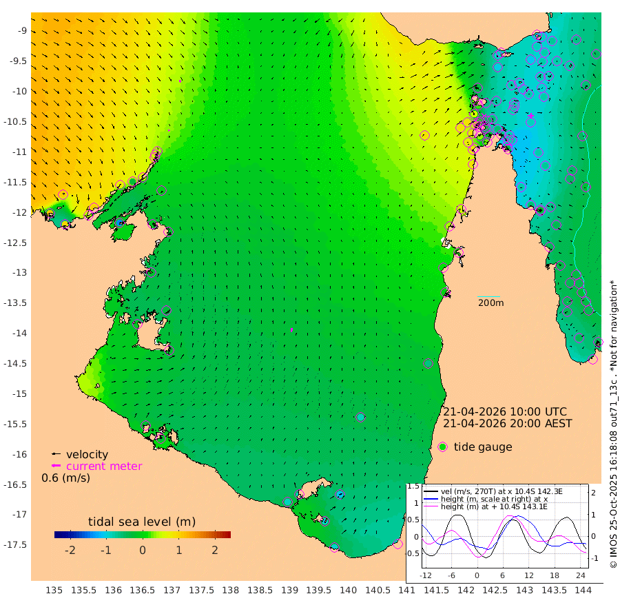 9cm/s 166T +3cm/s rms + 7cm/s -42T. ARA-GOC87 57m 27cm/s 9T +3cm/s rms + 2cm/s -2T. ARA-GOC87 60m 17cm/s 148T +2cm/s rms + 3cm/s 61T. ARA-GOC87 47m -94cm Daru -88cm Bobo Island -54cm Meer Island Barge -63cm Bramble Cay -81cm Unnamed Cay -81cm Pearce Cay -76cm Stephens Island -73cm Merrie England Shoals -85cm Mutacomal Reef -81cm Darnley Island Barge -50cm East Cay -89cm Yorke Island Barge -77cm Rennel Island -90cm Aureed Island -90cm Dungeness Reef -92cm Zagai Island -82cm Yam Island -92cm Dauan Island -85cm Saibai Island -101cm Phipi Reef -107cm Warrior Reef - West -29cm Mabuiag Island Barge -77cm Half Way Island -78cm Coconut Island -85cm Dugong Islet -78cm Poll Island -75cm Kirkcaldie Reef -77cm Suarji Island -83cm Sue Islet 60cm Hawkesbury Island -50cm Alert Patches -53cm Twin Island 36cm Badu Island -61cm St Pauls (Moa Island) 16cm Kubin (Moa Island) -27cm Ince Point -7cm Thursday Island -14cm Nardana Patches 8cm Turtle Head 34cm Round Island 54cm Goods Island 86cm Booby Island 85cm White Rocks Area 89cm Carpentaria -38cm Papou Point 87cm Bampfield Head 83cm Crab Island 80cm Red Wallis Island 31cm Packe Island -80cm Harrington Reef 48cm Herald Camp -25cm Sharp Point 25cm Red Island Point -16cm Possession Island -54cm Alpha Rock -65cm Frederick Point -78cm Wyborn Reef Light -76cm Tetley Island -50cm Triangle Reef -67cm Turtle Head Island -49cm Maclennan Cay -28cm Raine Island -75cm Mcsweeny Reef -71cm Collette Reef -52cm Shadwell Reef -77cm Hannibal Island -57cm Round Point 87cm Vrilya Point -55cm Cape Grenville -53cm Hicks Island -63cm Sir Charles Hardy Island -18cm Harvey Island -43cm Kay Reef -41cm Rocky Island -33cm Chapman Island -32cm Ham Reef -38cm Jubilee Reef -39cm Night Island -30cm Unnamed Reef No. 3 -39cm Morris Island -37cm 1st 3 Mile Opening -39cm Creech Reef -40cm Fife Island -45cm Eden Reef -39cm Stanley Island -40cm Normanby River 105cm Yabooma Island 97cm Hutchison River 100cm Elcho Island 101cm North West Crocodile Island 44cm Cape Wessel 79cm Stevens Island -23cm Guluwuru Island 72cm Hopeful Bay 59cm Auster Point 54cm Two Island Bay 43cm Cadell Strait -136cm Mallison Island -10cm Melville Bay (Gove Harbour) -5cm Truant Island -19cm Cape Arnhem -19cm Cape Grey -26cm Hawk Island -13cm Milner Bay (Groote Eylandt) -21cm Cape Beatrice -28cm West Island -24cm Centre Island -85cm Mornington Island -85cm West Wellesley Islands -108cm Bountiful Island -95cm Albert River Mouth -96cm Sweers Island -93cm Karumba -83cm Nassau River Offshore -65cm Christmas Creek -5cm Archer River 9cm Boyd Point 11cm Weipa (Humbug Point) 45cm Pennefather River 58cm Cullen Point
