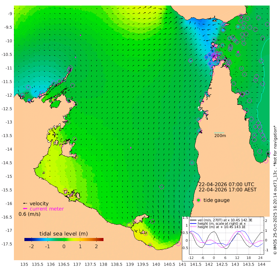 21cm/s -1T +3cm/s rms + 7cm/s -42T. ARA-GOC87 57m 28cm/s 10T +3cm/s rms + 2cm/s -2T. ARA-GOC87 60m 20cm/s 9T +2cm/s rms + 3cm/s 61T. ARA-GOC87 47m -44cm Daru -43cm Bobo Island -40cm Meer Island Barge -42cm Bramble Cay -38cm Unnamed Cay -54cm Pearce Cay -41cm Stephens Island -32cm Merrie England Shoals -39cm Mutacomal Reef -35cm Darnley Island Barge -45cm East Cay -35cm Yorke Island Barge -45cm Rennel Island -45cm Aureed Island -59cm Dungeness Reef -58cm Zagai Island -63cm Yam Island -105cm Dauan Island -78cm Saibai Island -113cm Phipi Reef -77cm Warrior Reef - West -81cm Mabuiag Island Barge -38cm Half Way Island -52cm Coconut Island -42cm Dugong Islet -56cm Poll Island -53cm Kirkcaldie Reef -73cm Suarji Island -40cm Sue Islet -144cm Hawkesbury Island -75cm Alert Patches -70cm Twin Island -149cm Badu Island -73cm St Pauls (Moa Island) -127cm Kubin (Moa Island) -87cm Ince Point -97cm Thursday Island -96cm Nardana Patches -126cm Turtle Head -123cm Round Island -151cm Goods Island -147cm Booby Island -144cm White Rocks Area -79cm Carpentaria -65cm Papou Point -141cm Bampfield Head -119cm Crab Island -140cm Red Wallis Island -142cm Packe Island -41cm Harrington Reef -142cm Herald Camp -7cm Sharp Point -106cm Red Island Point -83cm Possession Island -44cm Alpha Rock -58cm Frederick Point -40cm Wyborn Reef Light -43cm Tetley Island -47cm Triangle Reef -43cm Turtle Head Island -45cm Maclennan Cay -48cm Raine Island -38cm Mcsweeny Reef -35cm Collette Reef -39cm Shadwell Reef -36cm Hannibal Island -46cm Round Point -90cm Vrilya Point -36cm Cape Grenville -45cm Hicks Island -53cm Sir Charles Hardy Island -11cm Harvey Island -37cm Kay Reef -46cm Rocky Island -51cm Chapman Island -42cm Ham Reef -42cm Jubilee Reef -41cm Night Island -45cm Unnamed Reef No. 3 -46cm Morris Island -48cm 1st 3 Mile Opening -45cm Creech Reef -41cm Fife Island -52cm Eden Reef -39cm Stanley Island -40cm Normanby River -97cm Yabooma Island -124cm Hutchison River -94cm Elcho Island -90cm North West Crocodile Island -30cm Cape Wessel -64cm Stevens Island -29cm Guluwuru Island -60cm Hopeful Bay -44cm Auster Point -41cm Two Island Bay -82cm Cadell Strait 53cm Mallison Island -33cm Melville Bay (Gove Harbour) -31cm Truant Island -15cm Cape Arnhem 11cm Cape Grey 16cm Hawk Island 57cm Milner Bay (Groote Eylandt) 51cm Cape Beatrice 88cm West Island 88cm Centre Island 31cm Mornington Island 40cm West Wellesley Islands 9cm Bountiful Island 24cm Albert River Mouth 55cm Sweers Island 14cm Karumba -32cm Nassau River Offshore -67cm Christmas Creek -83cm Archer River -82cm Boyd Point -106cm Weipa (Humbug Point) -64cm Pennefather River -94cm Cullen Point