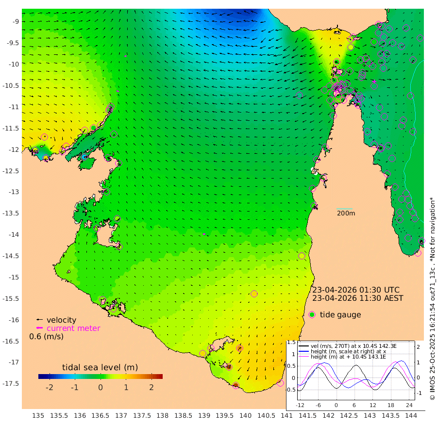 21cm/s -83T +3cm/s rms + 7cm/s -42T. ARA-GOC87 57m 20cm/s -99T +3cm/s rms + 2cm/s -2T. ARA-GOC87 60m 17cm/s -76T +2cm/s rms + 3cm/s 61T. ARA-GOC87 47m -43cm Daru -44cm Bobo Island -40cm Meer Island Barge -44cm Bramble Cay -53cm Unnamed Cay -41cm Pearce Cay -52cm Stephens Island -59cm Merrie England Shoals -50cm Mutacomal Reef -53cm Darnley Island Barge -42cm East Cay -50cm Yorke Island Barge -46cm Rennel Island -40cm Aureed Island -29cm Dungeness Reef -11cm Zagai Island -16cm Yam Island 41cm Dauan Island 20cm Saibai Island 53cm Phipi Reef 7cm Warrior Reef - West 3cm Mabuiag Island Barge -54cm Half Way Island -40cm Coconut Island -51cm Dugong Islet -28cm Poll Island -41cm Kirkcaldie Reef -5cm Suarji Island -39cm Sue Islet -13cm Hawkesbury Island -23cm Alert Patches -27cm Twin Island 9cm Badu Island -18cm St Pauls (Moa Island) -6cm Kubin (Moa Island) -16cm Ince Point -17cm Thursday Island -13cm Nardana Patches -1cm Turtle Head -7cm Round Island -2cm Goods Island -17cm Booby Island -13cm White Rocks Area -66cm Carpentaria -24cm Papou Point -36cm Bampfield Head -20cm Crab Island -17cm Red Wallis Island -5cm Packe Island -57cm Harrington Reef -13cm Herald Camp -5cm Sharp Point -11cm Red Island Point -19cm Possession Island -37cm Alpha Rock -39cm Frederick Point -52cm Wyborn Reef Light -49cm Tetley Island -29cm Triangle Reef -68cm Turtle Head Island -38cm Maclennan Cay -29cm Raine Island -51cm Mcsweeny Reef -48cm Collette Reef -37cm Shadwell Reef -53cm Hannibal Island -46cm Round Point -44cm Vrilya Point -49cm Cape Grenville -42cm Hicks Island -41cm Sir Charles Hardy Island -15cm Harvey Island -48cm Kay Reef -32cm Rocky Island -29cm Chapman Island -35cm Ham Reef -37cm Jubilee Reef -31cm Night Island -35cm Unnamed Reef No. 3 -36cm Morris Island -34cm 1st 3 Mile Opening -38cm Creech Reef -36cm Fife Island -36cm Eden Reef -44cm Stanley Island -46cm Normanby River 77cm Yabooma Island 101cm Hutchison River 90cm Elcho Island 92cm North West Crocodile Island 3cm Cape Wessel 50cm Stevens Island -5cm Guluwuru Island 54cm Hopeful Bay 22cm Auster Point 18cm Two Island Bay 50cm Cadell Strait -116cm Mallison Island 13cm Melville Bay (Gove Harbour) 0cm Truant Island 3cm Cape Arnhem 12cm Cape Grey 32cm Hawk Island 30cm Milner Bay (Groote Eylandt) 42cm Cape Beatrice 36cm West Island 35cm Centre Island 104cm Mornington Island 94cm West Wellesley Islands 154cm Bountiful Island 204cm Albert River Mouth 199cm Sweers Island 198cm Karumba 95cm Nassau River Offshore 58cm Christmas Creek 21cm Archer River -3cm Boyd Point 18cm Weipa (Humbug Point) -26cm Pennefather River -23cm Cullen Point