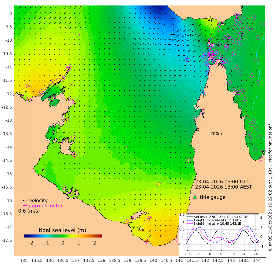 9cm/s 3T +3cm/s rms + 7cm/s -42T. ARA-GOC87 57m 19cm/s -76T +3cm/s rms + 2cm/s -2T. ARA-GOC87 60m 17cm/s 23T +2cm/s rms + 3cm/s 61T. ARA-GOC87 47m -48cm Daru -41cm Bobo Island -24cm Meer Island Barge -34cm Bramble Cay -51cm Unnamed Cay -38cm Pearce Cay -44cm Stephens Island -57cm Merrie England Shoals -59cm Mutacomal Reef -37cm Darnley Island Barge -30cm East Cay -42cm Yorke Island Barge -52cm Rennel Island -37cm Aureed Island -45cm Dungeness Reef -33cm Zagai Island -50cm Yam Island -9cm Dauan Island -19cm Saibai Island -1cm Phipi Reef -23cm Warrior Reef - West -58cm Mabuiag Island Barge -57cm Half Way Island -56cm Coconut Island -60cm Dugong Islet -54cm Poll Island -69cm Kirkcaldie Reef -51cm Suarji Island -57cm Sue Islet -117cm Hawkesbury Island -78cm Alert Patches -76cm Twin Island -90cm Badu Island -70cm St Pauls (Moa Island) -92cm Kubin (Moa Island) -81cm Ince Point -91cm Thursday Island -85cm Nardana Patches -88cm Turtle Head -98cm Round Island -104cm Goods Island -127cm Booby Island -122cm White Rocks Area -146cm Carpentaria -70cm Papou Point -141cm Bampfield Head -113cm Crab Island -124cm Red Wallis Island -102cm Packe Island -71cm Harrington Reef -116cm Herald Camp -17cm Sharp Point -90cm Red Island Point -81cm Possession Island -73cm Alpha Rock -72cm Frederick Point -63cm Wyborn Reef Light -65cm Tetley Island -26cm Triangle Reef -78cm Turtle Head Island -32cm Maclennan Cay -22cm Raine Island -48cm Mcsweeny Reef -42cm Collette Reef -28cm Shadwell Reef -43cm Hannibal Island -40cm Round Point -127cm Vrilya Point -42cm Cape Grenville -33cm Hicks Island -32cm Sir Charles Hardy Island -12cm Harvey Island -38cm Kay Reef -23cm Rocky Island -20cm Chapman Island -25cm Ham Reef -26cm Jubilee Reef -23cm Night Island -27cm Unnamed Reef No. 3 -26cm Morris Island -26cm 1st 3 Mile Opening -27cm Creech Reef -23cm Fife Island -18cm Eden Reef -32cm Stanley Island -30cm Normanby River 84cm Yabooma Island 117cm Hutchison River 103cm Elcho Island 99cm North West Crocodile Island 47cm Cape Wessel 80cm Stevens Island 64cm Guluwuru Island 80cm Hopeful Bay 57cm Auster Point 59cm Two Island Bay 102cm Cadell Strait 37cm Mallison Island 66cm Melville Bay (Gove Harbour) 58cm Truant Island 47cm Cape Arnhem 47cm Cape Grey 60cm Hawk Island 54cm Milner Bay (Groote Eylandt) 57cm Cape Beatrice 44cm West Island 43cm Centre Island 107cm Mornington Island 100cm West Wellesley Islands 151cm Bountiful Island 211cm Albert River Mouth 218cm Sweers Island 193cm Karumba 73cm Nassau River Offshore 23cm Christmas Creek -28cm Archer River -54cm Boyd Point -44cm Weipa (Humbug Point) -81cm Pennefather River -98cm Cullen Point