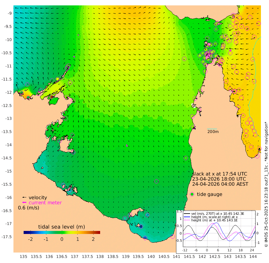28cm/s 113T +3cm/s rms + 7cm/s -42T. ARA-GOC87 57m 35cm/s 160T +3cm/s rms + 2cm/s -2T. ARA-GOC87 60m 16cm/s 114T +2cm/s rms + 3cm/s 61T. ARA-GOC87 47m 83cm Daru 88cm Bobo Island 97cm Meer Island Barge 97cm Bramble Cay 94cm Unnamed Cay 96cm Pearce Cay 101cm Stephens Island 95cm Merrie England Shoals 81cm Mutacomal Reef 106cm Darnley Island Barge 98cm East Cay 97cm Yorke Island Barge 85cm Rennel Island 89cm Aureed Island 74cm Dungeness Reef 47cm Zagai Island 47cm Yam Island 31cm Dauan Island 33cm Saibai Island 20cm Phipi Reef 50cm Warrior Reef - West 16cm Mabuiag Island Barge 90cm Half Way Island 70cm Coconut Island 87cm Dugong Islet 57cm Poll Island 66cm Kirkcaldie Reef 30cm Suarji Island 63cm Sue Islet 39cm Hawkesbury Island 38cm Alert Patches 44cm Twin Island 26cm Badu Island 36cm St Pauls (Moa Island) 36cm Kubin (Moa Island) 33cm Ince Point 33cm Thursday Island 31cm Nardana Patches 34cm Turtle Head 21cm Round Island 36cm Goods Island 35cm Booby Island 26cm White Rocks Area 44cm Carpentaria 33cm Papou Point 34cm Bampfield Head 27cm Crab Island 35cm Red Wallis Island 40cm Packe Island 80cm Harrington Reef 39cm Herald Camp 3cm Sharp Point 29cm Red Island Point 26cm Possession Island 43cm Alpha Rock 59cm Frederick Point 76cm Wyborn Reef Light 71cm Tetley Island 82cm Triangle Reef 90cm Turtle Head Island 91cm Maclennan Cay 83cm Raine Island 93cm Mcsweeny Reef 92cm Collette Reef 88cm Shadwell Reef 100cm Hannibal Island 98cm Round Point 36cm Vrilya Point 95cm Cape Grenville 95cm Hicks Island 109cm Sir Charles Hardy Island 30cm Harvey Island 97cm Kay Reef 90cm Rocky Island 91cm Chapman Island 91cm Ham Reef 93cm Jubilee Reef 83cm Night Island 91cm Unnamed Reef No. 3 93cm Morris Island 90cm 1st 3 Mile Opening 95cm Creech Reef 94cm Fife Island 110cm Eden Reef 99cm Stanley Island 104cm Normanby River -42cm Yabooma Island -45cm Hutchison River -54cm Elcho Island -61cm North West Crocodile Island 17cm Cape Wessel -25cm Stevens Island 61cm Guluwuru Island -26cm Hopeful Bay -3cm Auster Point 6cm Two Island Bay 21cm Cadell Strait 215cm Mallison Island 33cm Melville Bay (Gove Harbour) 43cm Truant Island 29cm Cape Arnhem -4cm Cape Grey -26cm Hawk Island -63cm Milner Bay (Groote Eylandt) -64cm Cape Beatrice -87cm West Island -91cm Centre Island -80cm Mornington Island -72cm West Wellesley Islands -100cm Bountiful Island -160cm Albert River Mouth -176cm Sweers Island -152cm Karumba -27cm Nassau River Offshore 20cm Christmas Creek 33cm Archer River 44cm Boyd Point 39cm Weipa (Humbug Point) 32cm Pennefather River 36cm Cullen Point