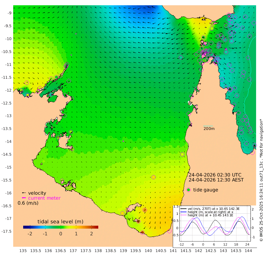 17cm/s -81T +3cm/s rms + 7cm/s -42T. ARA-GOC87 57m 19cm/s -97T +3cm/s rms + 2cm/s -2T. ARA-GOC87 60m 13cm/s -68T +2cm/s rms + 3cm/s 61T. ARA-GOC87 47m -71cm Daru -73cm Bobo Island -58cm Meer Island Barge -69cm Bramble Cay -82cm Unnamed Cay -70cm Pearce Cay -81cm Stephens Island -89cm Merrie England Shoals -81cm Mutacomal Reef -75cm Darnley Island Barge -64cm East Cay -74cm Yorke Island Barge -76cm Rennel Island -66cm Aureed Island -56cm Dungeness Reef -28cm Zagai Island -38cm Yam Island 34cm Dauan Island 16cm Saibai Island 39cm Phipi Reef -12cm Warrior Reef - West -8cm Mabuiag Island Barge -83cm Half Way Island -68cm Coconut Island -80cm Dugong Islet -53cm Poll Island -68cm Kirkcaldie Reef -31cm Suarji Island -59cm Sue Islet -31cm Hawkesbury Island -45cm Alert Patches -51cm Twin Island -5cm Badu Island -40cm St Pauls (Moa Island) -26cm Kubin (Moa Island) -35cm Ince Point -35cm Thursday Island -32cm Nardana Patches -19cm Turtle Head -29cm Round Island -18cm Goods Island -29cm Booby Island -30cm White Rocks Area -69cm Carpentaria -45cm Papou Point -56cm Bampfield Head -27cm Crab Island -30cm Red Wallis Island -24cm Packe Island -91cm Harrington Reef -35cm Herald Camp -9cm Sharp Point -28cm Red Island Point -42cm Possession Island -59cm Alpha Rock -66cm Frederick Point -83cm Wyborn Reef Light -79cm Tetley Island -46cm Triangle Reef -101cm Turtle Head Island -58cm Maclennan Cay -43cm Raine Island -77cm Mcsweeny Reef -72cm Collette Reef -54cm Shadwell Reef -79cm Hannibal Island -74cm Round Point -45cm Vrilya Point -73cm Cape Grenville -65cm Hicks Island -63cm Sir Charles Hardy Island -23cm Harvey Island -69cm Kay Reef -50cm Rocky Island -44cm Chapman Island -49cm Ham Reef -52cm Jubilee Reef -47cm Night Island -50cm Unnamed Reef No. 3 -54cm Morris Island -50cm 1st 3 Mile Opening -54cm Creech Reef -54cm Fife Island -54cm Eden Reef -62cm Stanley Island -68cm Normanby River 51cm Yabooma Island 72cm Hutchison River 67cm Elcho Island 69cm North West Crocodile Island -8cm Cape Wessel 32cm Stevens Island -8cm Guluwuru Island 37cm Hopeful Bay 8cm Auster Point 5cm Two Island Bay 36cm Cadell Strait -85cm Mallison Island 7cm Melville Bay (Gove Harbour) -6cm Truant Island 2cm Cape Arnhem 11cm Cape Grey 30cm Hawk Island 32cm Milner Bay (Groote Eylandt) 43cm Cape Beatrice 39cm West Island 40cm Centre Island 105cm Mornington Island 97cm West Wellesley Islands 148cm Bountiful Island 208cm Albert River Mouth 201cm Sweers Island 197cm Karumba 93cm Nassau River Offshore 55cm Christmas Creek 20cm Archer River -5cm Boyd Point 13cm Weipa (Humbug Point) -24cm Pennefather River -26cm Cullen Point