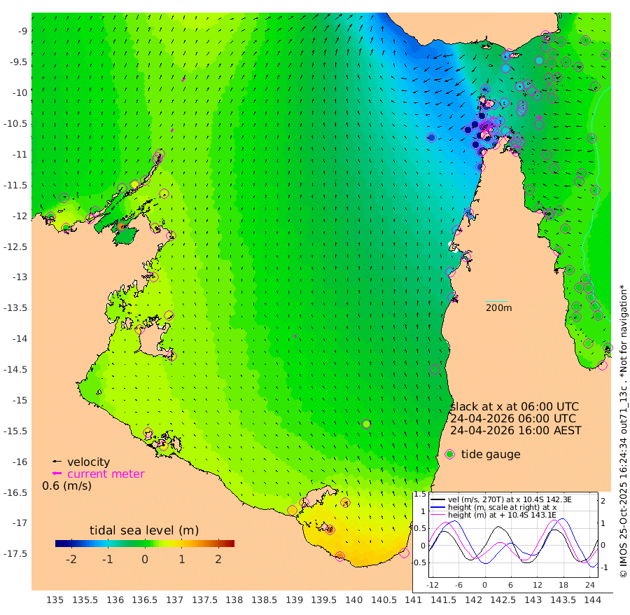 22cm/s 31T +3cm/s rms + 7cm/s -42T. ARA-GOC87 57m 19cm/s -27T +3cm/s rms + 2cm/s -2T. ARA-GOC87 60m 30cm/s 34T +2cm/s rms + 3cm/s 61T. ARA-GOC87 47m -41cm Daru -27cm Bobo Island 8cm Meer Island Barge -2cm Bramble Cay -23cm Unnamed Cay -24cm Pearce Cay -13cm Stephens Island -19cm Merrie England Shoals -45cm Mutacomal Reef -2cm Darnley Island Barge 3cm East Cay -18cm Yorke Island Barge -36cm Rennel Island -24cm Aureed Island -56cm Dungeness Reef -76cm Zagai Island -95cm Yam Island -114cm Dauan Island -104cm Saibai Island -109cm Phipi Reef -84cm Warrior Reef - West -136cm Mabuiag Island Barge -36cm Half Way Island -59cm Coconut Island -48cm Dugong Islet -78cm Poll Island -82cm Kirkcaldie Reef -104cm Suarji Island -71cm Sue Islet -212cm Hawkesbury Island -124cm Alert Patches -118cm Twin Island -198cm Badu Island -126cm St Pauls (Moa Island) -177cm Kubin (Moa Island) -142cm Ince Point -157cm Thursday Island -153cm Nardana Patches -169cm Turtle Head -180cm Round Island -195cm Goods Island -210cm Booby Island -205cm White Rocks Area -172cm Carpentaria -116cm Papou Point -212cm Bampfield Head -178cm Crab Island -205cm Red Wallis Island -189cm Packe Island -57cm Harrington Reef -203cm Herald Camp -30cm Sharp Point -159cm Red Island Point -133cm Possession Island -96cm Alpha Rock -92cm Frederick Point -54cm Wyborn Reef Light -64cm Tetley Island -12cm Triangle Reef -59cm Turtle Head Island -6cm Maclennan Cay 3cm Raine Island -20cm Mcsweeny Reef -11cm Collette Reef 0cm Shadwell Reef -6cm Hannibal Island -7cm Round Point -165cm Vrilya Point -4cm Cape Grenville -2cm Hicks Island -6cm Sir Charles Hardy Island -1cm Harvey Island 3cm Kay Reef 6cm Rocky Island 5cm Chapman Island 6cm Ham Reef 6cm Jubilee Reef 5cm Night Island 4cm Unnamed Reef No. 3 7cm Morris Island 3cm 1st 3 Mile Opening 5cm Creech Reef 15cm Fife Island 21cm Eden Reef 10cm Stanley Island 15cm Normanby River -1cm Yabooma Island 9cm Hutchison River 14cm Elcho Island 7cm North West Crocodile Island 32cm Cape Wessel 25cm Stevens Island 61cm Guluwuru Island 30cm Hopeful Bay 27cm Auster Point 29cm Two Island Bay 42cm Cadell Strait 154cm Mallison Island 52cm Melville Bay (Gove Harbour) 50cm Truant Island 46cm Cape Arnhem 52cm Cape Grey 58cm Hawk Island 71cm Milner Bay (Groote Eylandt) 68cm Cape Beatrice 73cm West Island 73cm Centre Island 94cm Mornington Island 99cm West Wellesley Islands 105cm Bountiful Island 151cm Albert River Mouth 178cm Sweers Island 130cm Karumba 34cm Nassau River Offshore -19cm Christmas Creek -68cm Archer River -90cm Boyd Point -99cm Weipa (Humbug Point) -102cm Pennefather River -145cm Cullen Point