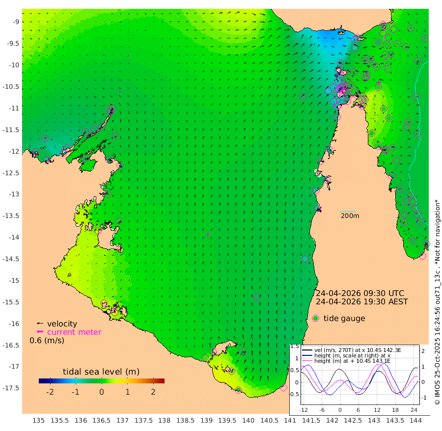 16cm/s -10T +3cm/s rms + 7cm/s -42T. ARA-GOC87 57m 35cm/s 9T +3cm/s rms + 2cm/s -2T. ARA-GOC87 60m 12cm/s 13T +2cm/s rms + 3cm/s 61T. ARA-GOC87 47m 9cm Daru 10cm Bobo Island -12cm Meer Island Barge -1cm Bramble Cay 14cm Unnamed Cay -1cm Pearce Cay 9cm Stephens Island 21cm Merrie England Shoals 18cm Mutacomal Reef 2cm Darnley Island Barge -8cm East Cay 6cm Yorke Island Barge 12cm Rennel Island 3cm Aureed Island -5cm Dungeness Reef -19cm Zagai Island -18cm Yam Island -90cm Dauan Island -72cm Saibai Island -79cm Phipi Reef -41cm Warrior Reef - West -50cm Mabuiag Island Barge 14cm Half Way Island 9cm Coconut Island 11cm Dugong Islet -3cm Poll Island 4cm Kirkcaldie Reef -11cm Suarji Island 0cm Sue Islet -89cm Hawkesbury Island -15cm Alert Patches -12cm Twin Island -96cm Badu Island -19cm St Pauls (Moa Island) -70cm Kubin (Moa Island) -34cm Ince Point -43cm Thursday Island -42cm Nardana Patches -69cm Turtle Head -58cm Round Island -92cm Goods Island -91cm Booby Island -78cm White Rocks Area -41cm Carpentaria -12cm Papou Point -62cm Bampfield Head -72cm Crab Island -86cm Red Wallis Island -81cm Packe Island 27cm Harrington Reef -81cm Herald Camp 2cm Sharp Point -55cm Red Island Point -19cm Possession Island 4cm Alpha Rock 3cm Frederick Point 20cm Wyborn Reef Light 17cm Tetley Island -18cm Triangle Reef 25cm Turtle Head Island -12cm Maclennan Cay -22cm Raine Island 10cm Mcsweeny Reef 7cm Collette Reef -11cm Shadwell Reef 10cm Hannibal Island 1cm Round Point -56cm Vrilya Point 4cm Cape Grenville -5cm Hicks Island -22cm Sir Charles Hardy Island 1cm Harvey Island -3cm Kay Reef -18cm Rocky Island -28cm Chapman Island -22cm Ham Reef -18cm Jubilee Reef -14cm Night Island -21cm Unnamed Reef No. 3 -15cm Morris Island -20cm 1st 3 Mile Opening -18cm Creech Reef -13cm Fife Island -26cm Eden Reef -11cm Stanley Island -7cm Normanby River -49cm Yabooma Island -65cm Hutchison River -47cm Elcho Island -46cm North West Crocodile Island -14cm Cape Wessel -29cm Stevens Island -30cm Guluwuru Island -30cm Hopeful Bay -16cm Auster Point -21cm Two Island Bay -64cm Cadell Strait -38cm Mallison Island -25cm Melville Bay (Gove Harbour) -23cm Truant Island -14cm Cape Arnhem 12cm Cape Grey 15cm Hawk Island 52cm Milner Bay (Groote Eylandt) 43cm Cape Beatrice 74cm West Island 76cm Centre Island 14cm Mornington Island 18cm West Wellesley Islands -10cm Bountiful Island -2cm Albert River Mouth 28cm Sweers Island -5cm Karumba -45cm Nassau River Offshore -70cm Christmas Creek -73cm Archer River -68cm Boyd Point -87cm Weipa (Humbug Point) -45cm Pennefather River -66cm Cullen Point