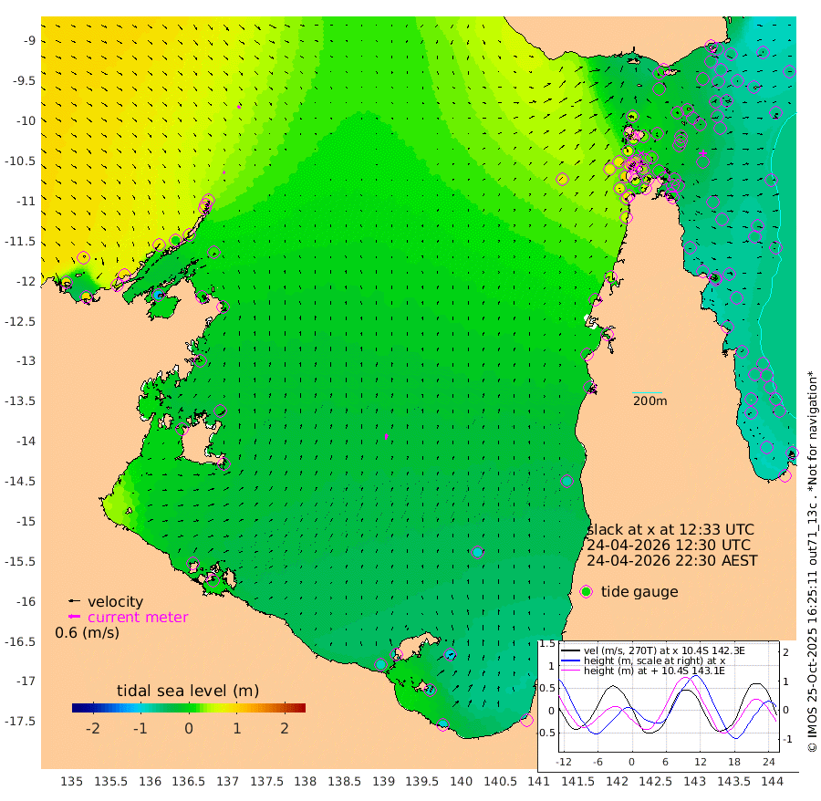 9cm/s 131T +3cm/s rms + 7cm/s -42T. ARA-GOC87 57m 31cm/s 11T +3cm/s rms + 2cm/s -2T. ARA-GOC87 60m 17cm/s 125T +2cm/s rms + 3cm/s 61T. ARA-GOC87 47m -45cm Daru -47cm Bobo Island -65cm Meer Island Barge -65cm Bramble Cay -55cm Unnamed Cay -58cm Pearce Cay -63cm Stephens Island -60cm Merrie England Shoals -43cm Mutacomal Reef -69cm Darnley Island Barge -66cm East Cay -57cm Yorke Island Barge -47cm Rennel Island -53cm Aureed Island -37cm Dungeness Reef -2cm Zagai Island 2cm Yam Island 5cm Dauan Island 11cm Saibai Island -3cm Phipi Reef -17cm Warrior Reef - West 44cm Mabuiag Island Barge -49cm Half Way Island -23cm Coconut Island -44cm Dugong Islet -12cm Poll Island -17cm Kirkcaldie Reef 13cm Suarji Island -14cm Sue Islet 70cm Hawkesbury Island 18cm Alert Patches 17cm Twin Island 66cm Badu Island 24cm St Pauls (Moa Island) 52cm Kubin (Moa Island) 32cm Ince Point 42cm Thursday Island 40cm Nardana Patches 40cm Turtle Head 72cm Round Island 58cm Goods Island 74cm Booby Island 76cm White Rocks Area 76cm Carpentaria 32cm Papou Point 102cm Bampfield Head 65cm Crab Island 68cm Red Wallis Island 46cm Packe Island -32cm Harrington Reef 68cm Herald Camp 5cm Sharp Point 46cm Red Island Point 44cm Possession Island 12cm Alpha Rock -4cm Frederick Point -26cm Wyborn Reef Light -17cm Tetley Island -49cm Triangle Reef -24cm Turtle Head Island -58cm Maclennan Cay -56cm Raine Island -56cm Mcsweeny Reef -59cm Collette Reef -60cm Shadwell Reef -67cm Hannibal Island -64cm Round Point 57cm Vrilya Point -63cm Cape Grenville -61cm Hicks Island -69cm Sir Charles Hardy Island -20cm Harvey Island -66cm Kay Reef -63cm Rocky Island -63cm Chapman Island -60cm Ham Reef -62cm Jubilee Reef -60cm Night Island -62cm Unnamed Reef No. 3 -66cm Morris Island -59cm 1st 3 Mile Opening -65cm Creech Reef -74cm Fife Island -81cm Eden Reef -70cm Stanley Island -75cm Normanby River 91cm Yabooma Island 94cm Hutchison River 89cm Elcho Island 89cm North West Crocodile Island 51cm Cape Wessel 75cm Stevens Island 4cm Guluwuru Island 63cm Hopeful Bay 62cm Auster Point 58cm Two Island Bay 41cm Cadell Strait -120cm Mallison Island 12cm Melville Bay (Gove Harbour) 19cm Truant Island 2cm Cape Arnhem 1cm Cape Grey -7cm Hawk Island 3cm Milner Bay (Groote Eylandt) -16cm Cape Beatrice -24cm West Island -17cm Centre Island -84cm Mornington Island -90cm West Wellesley Islands -98cm Bountiful Island -94cm Albert River Mouth -89cm Sweers Island -94cm Karumba -97cm Nassau River Offshore -81cm Christmas Creek -33cm Archer River -9cm Boyd Point -11cm Weipa (Humbug Point) 16cm Pennefather River 40cm Cullen Point