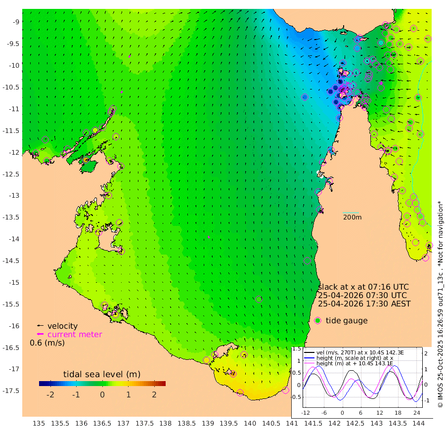 21cm/s 31T +3cm/s rms + 7cm/s -42T. ARA-GOC87 57m 21cm/s -14T +3cm/s rms + 2cm/s -2T. ARA-GOC87 60m 27cm/s 36T +2cm/s rms + 3cm/s 61T. ARA-GOC87 47m -8cm Daru 7cm Bobo Island 35cm Meer Island Barge 33cm Bramble Cay 16cm Unnamed Cay 11cm Pearce Cay 27cm Stephens Island 25cm Merrie England Shoals -7cm Mutacomal Reef 31cm Darnley Island Barge 37cm East Cay 12cm Yorke Island Barge 2cm Rennel Island 7cm Aureed Island -29cm Dungeness Reef -69cm Zagai Island -84cm Yam Island -137cm Dauan Island -124cm Saibai Island -122cm Phipi Reef -83cm Warrior Reef - West -139cm Mabuiag Island Barge 2cm Half Way Island -25cm Coconut Island -13cm Dugong Islet -54cm Poll Island -52cm Kirkcaldie Reef -87cm Suarji Island -52cm Sue Islet -198cm Hawkesbury Island -102cm Alert Patches -96cm Twin Island -190cm Badu Island -111cm St Pauls (Moa Island) -165cm Kubin (Moa Island) -126cm Ince Point -140cm Thursday Island -138cm Nardana Patches -154cm Turtle Head -163cm Round Island -179cm Goods Island -192cm Booby Island -181cm White Rocks Area -149cm Carpentaria -100cm Papou Point -183cm Bampfield Head -160cm Crab Island -185cm Red Wallis Island -171cm Packe Island -14cm Harrington Reef -188cm Herald Camp -29cm Sharp Point -142cm Red Island Point -113cm Possession Island -74cm Alpha Rock -62cm Frederick Point -16cm Wyborn Reef Light -30cm Tetley Island 10cm Triangle Reef -15cm Turtle Head Island 22cm Maclennan Cay 28cm Raine Island 17cm Mcsweeny Reef 23cm Collette Reef 27cm Shadwell Reef 32cm Hannibal Island 32cm Round Point -145cm Vrilya Point 33cm Cape Grenville 31cm Hicks Island 22cm Sir Charles Hardy Island 11cm Harvey Island 39cm Kay Reef 33cm Rocky Island 30cm Chapman Island 31cm Ham Reef 32cm Jubilee Reef 31cm Night Island 31cm Unnamed Reef No. 3 37cm Morris Island 30cm 1st 3 Mile Opening 34cm Creech Reef 47cm Fife Island 50cm Eden Reef 43cm Stanley Island 51cm Normanby River -9cm Yabooma Island -3cm Hutchison River 3cm Elcho Island -6cm North West Crocodile Island 27cm Cape Wessel 18cm Stevens Island 49cm Guluwuru Island 21cm Hopeful Bay 23cm Auster Point 19cm Two Island Bay 24cm Cadell Strait 134cm Mallison Island 41cm Melville Bay (Gove Harbour) 41cm Truant Island 37cm Cape Arnhem 46cm Cape Grey 49cm Hawk Island 66cm Milner Bay (Groote Eylandt) 63cm Cape Beatrice 71cm West Island 71cm Centre Island 79cm Mornington Island 85cm West Wellesley Islands 79cm Bountiful Island 113cm Albert River Mouth 142cm Sweers Island 96cm Karumba 21cm Nassau River Offshore -24cm Christmas Creek -63cm Archer River -84cm Boyd Point -94cm Weipa (Humbug Point) -87cm Pennefather River -133cm Cullen Point