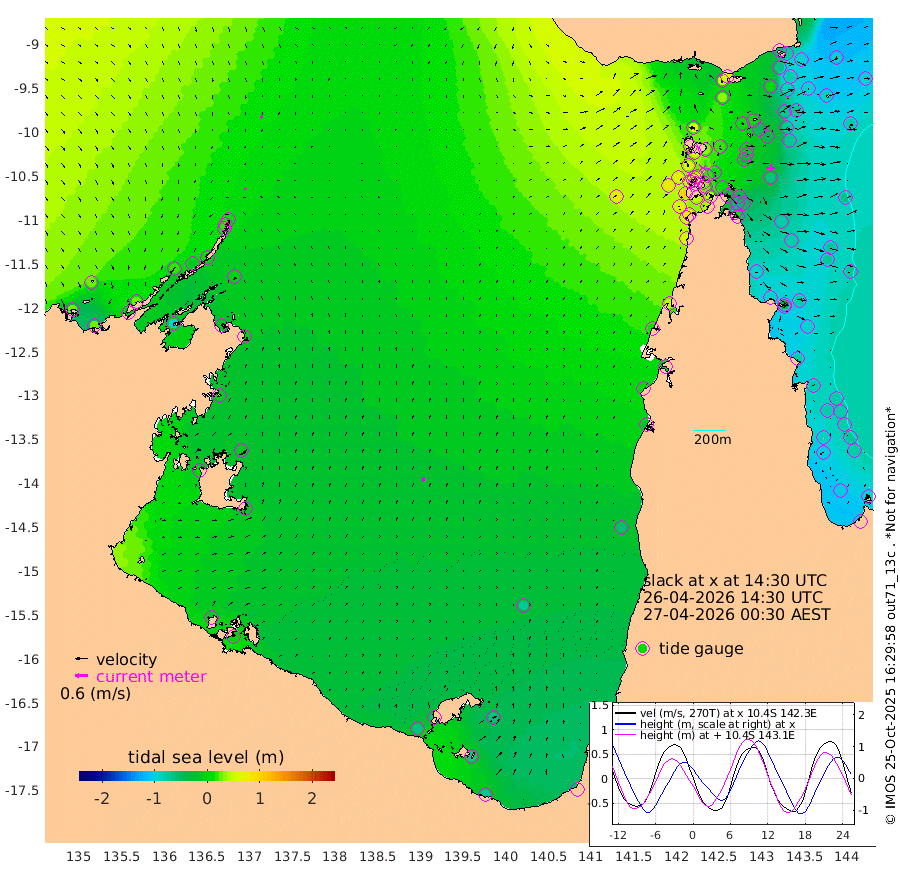 5cm/s 147T +3cm/s rms + 7cm/s -42T. ARA-GOC87 57m 22cm/s 15T +3cm/s rms + 2cm/s -2T. ARA-GOC87 60m 10cm/s 135T +2cm/s rms + 3cm/s 61T. ARA-GOC87 47m -64cm Daru -72cm Bobo Island -81cm Meer Island Barge -92cm Bramble Cay -80cm Unnamed Cay -87cm Pearce Cay -90cm Stephens Island -92cm Merrie England Shoals -67cm Mutacomal Reef -86cm Darnley Island Barge -91cm East Cay -71cm Yorke Island Barge -73cm Rennel Island -70cm Aureed Island -47cm Dungeness Reef 10cm Zagai Island 9cm Yam Island 50cm Dauan Island 54cm Saibai Island 31cm Phipi Reef 1cm Warrior Reef - West 65cm Mabuiag Island Barge -73cm Half Way Island -43cm Coconut Island -62cm Dugong Islet -19cm Poll Island -29cm Kirkcaldie Reef 20cm Suarji Island -13cm Sue Islet 67cm Hawkesbury Island 17cm Alert Patches 14cm Twin Island 72cm Badu Island 30cm St Pauls (Moa Island) 55cm Kubin (Moa Island) 36cm Ince Point 46cm Thursday Island 45cm Nardana Patches 45cm Turtle Head 73cm Round Island 59cm Goods Island 76cm Booby Island 70cm White Rocks Area 82cm Carpentaria 30cm Papou Point 103cm Bampfield Head 61cm Crab Island 66cm Red Wallis Island 46cm Packe Island -61cm Harrington Reef 78cm Herald Camp 11cm Sharp Point 38cm Red Island Point 42cm Possession Island 9cm Alpha Rock -17cm Frederick Point -50cm Wyborn Reef Light -38cm Tetley Island -62cm Triangle Reef -56cm Turtle Head Island -74cm Maclennan Cay -72cm Raine Island -80cm Mcsweeny Reef -80cm Collette Reef -74cm Shadwell Reef -92cm Hannibal Island -97cm Round Point 53cm Vrilya Point -89cm Cape Grenville -84cm Hicks Island -81cm Sir Charles Hardy Island -27cm Harvey Island -91cm Kay Reef -81cm Rocky Island -79cm Chapman Island -75cm Ham Reef -78cm Jubilee Reef -76cm Night Island -80cm Unnamed Reef No. 3 -86cm Morris Island -71cm 1st 3 Mile Opening -81cm Creech Reef -98cm Fife Island -102cm Eden Reef -90cm Stanley Island -103cm Normanby River 29cm Yabooma Island 23cm Hutchison River 25cm Elcho Island 25cm North West Crocodile Island 14cm Cape Wessel 17cm Stevens Island -12cm Guluwuru Island 13cm Hopeful Bay 18cm Auster Point 15cm Two Island Bay -12cm Cadell Strait -96cm Mallison Island -8cm Melville Bay (Gove Harbour) -2cm Truant Island -5cm Cape Arnhem -5cm Cape Grey -10cm Hawk Island 5cm Milner Bay (Groote Eylandt) -14cm Cape Beatrice -13cm West Island -4cm Centre Island -63cm Mornington Island -66cm West Wellesley Islands -66cm Bountiful Island -69cm Albert River Mouth -68cm Sweers Island -75cm Karumba -75cm Nassau River Offshore -58cm Christmas Creek -22cm Archer River 4cm Boyd Point 3cm Weipa (Humbug Point) 13cm Pennefather River 48cm Cullen Point