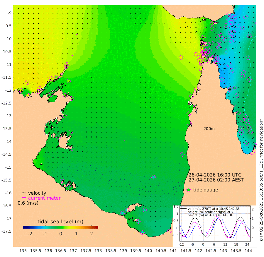 14cm/s 129T +3cm/s rms + 7cm/s -42T. ARA-GOC87 57m 11cm/s 24T +3cm/s rms + 2cm/s -2T. ARA-GOC87 60m 18cm/s 124T +2cm/s rms + 3cm/s 61T. ARA-GOC87 47m -102cm Daru -104cm Bobo Island -63cm Meer Island Barge -87cm Bramble Cay -99cm Unnamed Cay -106cm Pearce Cay -103cm Stephens Island -109cm Merrie England Shoals -104cm Mutacomal Reef -90cm Darnley Island Barge -74cm East Cay -92cm Yorke Island Barge -101cm Rennel Island -97cm Aureed Island -88cm Dungeness Reef -44cm Zagai Island -45cm Yam Island 16cm Dauan Island 21cm Saibai Island -15cm Phipi Reef -49cm Warrior Reef - West 27cm Mabuiag Island Barge -103cm Half Way Island -89cm Coconut Island -100cm Dugong Islet -71cm Poll Island -82cm Kirkcaldie Reef -46cm Suarji Island -60cm Sue Islet 70cm Hawkesbury Island -39cm Alert Patches -43cm Twin Island 64cm Badu Island -32cm St Pauls (Moa Island) 38cm Kubin (Moa Island) -9cm Ince Point 9cm Thursday Island 5cm Nardana Patches 25cm Turtle Head 57cm Round Island 62cm Goods Island 86cm Booby Island 73cm White Rocks Area 85cm Carpentaria -24cm Papou Point 105cm Bampfield Head 67cm Crab Island 73cm Red Wallis Island 39cm Packe Island -112cm Harrington Reef 81cm Herald Camp -14cm Sharp Point 18cm Red Island Point -2cm Possession Island -43cm Alpha Rock -70cm Frederick Point -92cm Wyborn Reef Light -84cm Tetley Island -52cm Triangle Reef -99cm Turtle Head Island -61cm Maclennan Cay -43cm Raine Island -97cm Mcsweeny Reef -89cm Collette Reef -60cm Shadwell Reef -100cm Hannibal Island -91cm Round Point 60cm Vrilya Point -82cm Cape Grenville -73cm Hicks Island -60cm Sir Charles Hardy Island -26cm Harvey Island -70cm Kay Reef -53cm Rocky Island -43cm Chapman Island -42cm Ham Reef -50cm Jubilee Reef -55cm Night Island -48cm Unnamed Reef No. 3 -60cm Morris Island -45cm 1st 3 Mile Opening -54cm Creech Reef -70cm Fife Island -61cm Eden Reef -61cm Stanley Island -73cm Normanby River 92cm Yabooma Island 86cm Hutchison River 81cm Elcho Island 76cm North West Crocodile Island 57cm Cape Wessel 69cm Stevens Island 30cm Guluwuru Island 69cm Hopeful Bay 62cm Auster Point 63cm Two Island Bay 56cm Cadell Strait 2cm Mallison Island 29cm Melville Bay (Gove Harbour) 37cm Truant Island 17cm Cape Arnhem -1cm Cape Grey -12cm Hawk Island -17cm Milner Bay (Groote Eylandt) -36cm Cape Beatrice -56cm West Island -50cm Centre Island -90cm Mornington Island -89cm West Wellesley Islands -81cm Bountiful Island -93cm Albert River Mouth -97cm Sweers Island -100cm Karumba -76cm Nassau River Offshore -47cm Christmas Creek -1cm Archer River 22cm Boyd Point 29cm Weipa (Humbug Point) 19cm Pennefather River 61cm Cullen Point