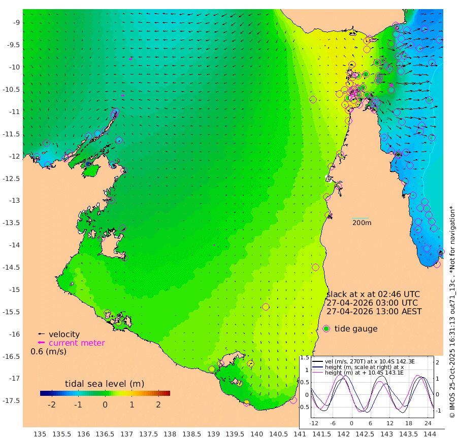 25cm/s -95T +3cm/s rms + 7cm/s -42T. ARA-GOC87 57m 12cm/s -141T +3cm/s rms + 2cm/s -2T. ARA-GOC87 60m 27cm/s -99T +2cm/s rms + 3cm/s 61T. ARA-GOC87 47m -76cm Daru -92cm Bobo Island -98cm Meer Island Barge -110cm Bramble Cay -103cm Unnamed Cay -97cm Pearce Cay -110cm Stephens Island -110cm Merrie England Shoals -84cm Mutacomal Reef -104cm Darnley Island Barge -110cm East Cay -89cm Yorke Island Barge -89cm Rennel Island -85cm Aureed Island -53cm Dungeness Reef -2cm Zagai Island -1cm Yam Island 80cm Dauan Island 67cm Saibai Island 72cm Phipi Reef 14cm Warrior Reef - West 60cm Mabuiag Island Barge -86cm Half Way Island -64cm Coconut Island -75cm Dugong Islet -30cm Poll Island -37cm Kirkcaldie Reef 1cm Suarji Island -26cm Sue Islet 59cm Hawkesbury Island 10cm Alert Patches 0cm Twin Island 73cm Badu Island 21cm St Pauls (Moa Island) 43cm Kubin (Moa Island) 29cm Ince Point 38cm Thursday Island 38cm Nardana Patches 46cm Turtle Head 37cm Round Island 54cm Goods Island 62cm Booby Island 48cm White Rocks Area 35cm Carpentaria 9cm Papou Point 20cm Bampfield Head 60cm Crab Island 59cm Red Wallis Island 45cm Packe Island -83cm Harrington Reef 44cm Herald Camp 16cm Sharp Point 42cm Red Island Point 12cm Possession Island -14cm Alpha Rock -34cm Frederick Point -82cm Wyborn Reef Light -69cm Tetley Island -75cm Triangle Reef -90cm Turtle Head Island -92cm Maclennan Cay -85cm Raine Island -97cm Mcsweeny Reef -97cm Collette Reef -86cm Shadwell Reef -111cm Hannibal Island -115cm Round Point 58cm Vrilya Point -108cm Cape Grenville -105cm Hicks Island -106cm Sir Charles Hardy Island -33cm Harvey Island -111cm Kay Reef -96cm Rocky Island -93cm Chapman Island -91cm Ham Reef -93cm Jubilee Reef -85cm Night Island -93cm Unnamed Reef No. 3 -102cm Morris Island -90cm 1st 3 Mile Opening -95cm Creech Reef -105cm Fife Island -116cm Eden Reef -106cm Stanley Island -122cm Normanby River -78cm Yabooma Island -88cm Hutchison River -69cm Elcho Island -57cm North West Crocodile Island -99cm Cape Wessel -88cm Stevens Island -103cm Guluwuru Island -82cm Hopeful Bay -90cm Auster Point -89cm Two Island Bay -94cm Cadell Strait -175cm Mallison Island -87cm Melville Bay (Gove Harbour) -99cm Truant Island -63cm Cape Arnhem -40cm Cape Grey -21cm Hawk Island -3cm Milner Bay (Groote Eylandt) 11cm Cape Beatrice 34cm West Island 36cm Centre Island 54cm Mornington Island 48cm West Wellesley Islands 60cm Bountiful Island 94cm Albert River Mouth 80cm Sweers Island 97cm Karumba 59cm Nassau River Offshore 48cm Christmas Creek 41cm Archer River 35cm Boyd Point 42cm Weipa (Humbug Point) 46cm Pennefather River 51cm Cullen Point