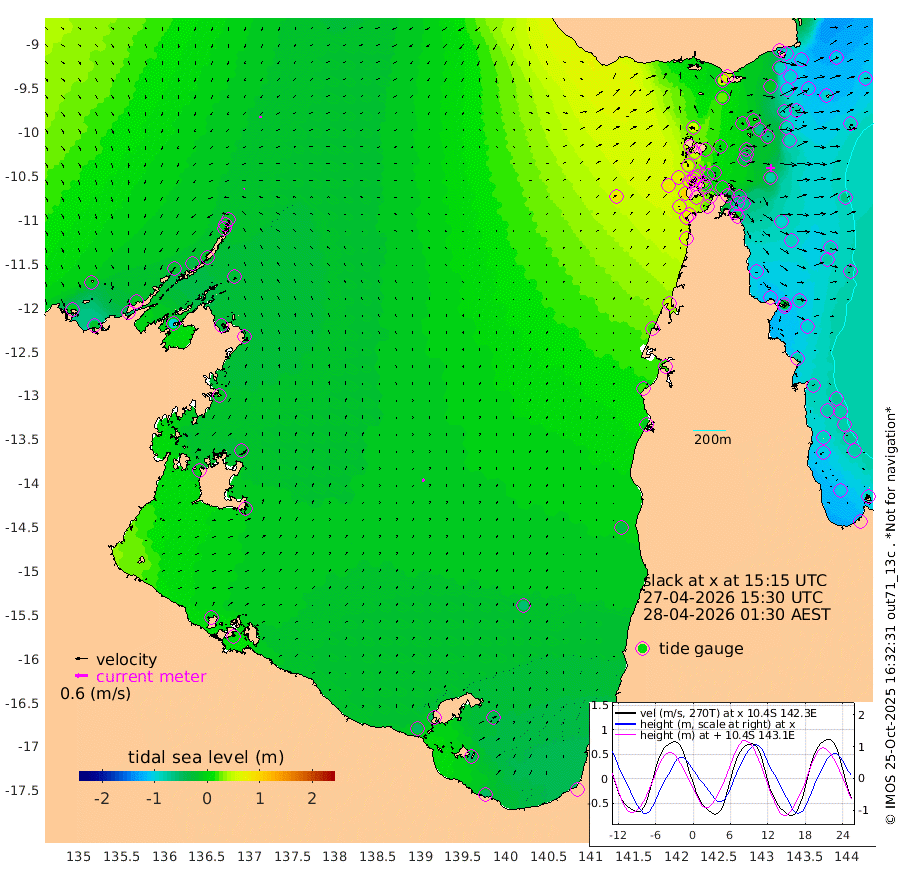4cm/s -125T +3cm/s rms + 7cm/s -42T. ARA-GOC87 57m 16cm/s 18T +3cm/s rms + 2cm/s -2T. ARA-GOC87 60m 6cm/s -178T +2cm/s rms + 3cm/s 61T. ARA-GOC87 47m -80cm Daru -91cm Bobo Island -83cm Meer Island Barge -101cm Bramble Cay -92cm Unnamed Cay -103cm Pearce Cay -102cm Stephens Island -105cm Merrie England Shoals -84cm Mutacomal Reef -94cm Darnley Island Barge -96cm East Cay -82cm Yorke Island Barge -88cm Rennel Island -84cm Aureed Island -61cm Dungeness Reef -4cm Zagai Island -4cm Yam Island 50cm Dauan Island 53cm Saibai Island 26cm Phipi Reef -10cm Warrior Reef - West 59cm Mabuiag Island Barge -87cm Half Way Island -63cm Coconut Island -76cm Dugong Islet -36cm Poll Island -45cm Kirkcaldie Reef 4cm Suarji Island -26cm Sue Islet 62cm Hawkesbury Island 4cm Alert Patches -2cm Twin Island 67cm Badu Island 16cm St Pauls (Moa Island) 48cm Kubin (Moa Island) 25cm Ince Point 38cm Thursday Island 36cm Nardana Patches 41cm Turtle Head 66cm Round Island 59cm Goods Island 79cm Booby Island 68cm White Rocks Area 87cm Carpentaria 13cm Papou Point 100cm Bampfield Head 62cm Crab Island 67cm Red Wallis Island 43cm Packe Island -81cm Harrington Reef 80cm Herald Camp 8cm Sharp Point 29cm Red Island Point 28cm Possession Island -6cm Alpha Rock -36cm Frederick Point -71cm Wyborn Reef Light -59cm Tetley Island -66cm Triangle Reef -79cm Turtle Head Island -76cm Maclennan Cay -70cm Raine Island -91cm Mcsweeny Reef -89cm Collette Reef -75cm Shadwell Reef -102cm Hannibal Island -107cm Round Point 57cm Vrilya Point -94cm Cape Grenville -89cm Hicks Island -81cm Sir Charles Hardy Island -29cm Harvey Island -93cm Kay Reef -80cm Rocky Island -77cm Chapman Island -72cm Ham Reef -77cm Jubilee Reef -76cm Night Island -79cm Unnamed Reef No. 3 -87cm Morris Island -68cm 1st 3 Mile Opening -80cm Creech Reef -99cm Fife Island -99cm Eden Reef -89cm Stanley Island -105cm Normanby River -7cm Yabooma Island -22cm Hutchison River -13cm Elcho Island -13cm North West Crocodile Island -13cm Cape Wessel -20cm Stevens Island -33cm Guluwuru Island -17cm Hopeful Bay -11cm Auster Point -14cm Two Island Bay -48cm Cadell Strait -91cm Mallison Island -28cm Melville Bay (Gove Harbour) -24cm Truant Island -18cm Cape Arnhem -13cm Cape Grey -16cm Hawk Island 3cm Milner Bay (Groote Eylandt) -12cm Cape Beatrice -3cm West Island 5cm Centre Island -47cm Mornington Island -45cm West Wellesley Islands -43cm Bountiful Island -51cm Albert River Mouth -52cm Sweers Island -59cm Karumba -54cm Nassau River Offshore -37cm Christmas Creek -8cm Archer River 16cm Boyd Point 17cm Weipa (Humbug Point) 19cm Pennefather River 56cm Cullen Point