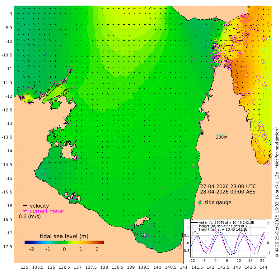 1cm/s -107T +3cm/s rms + 7cm/s -42T. ARA-GOC87 57m 24cm/s 170T +3cm/s rms + 2cm/s -2T. ARA-GOC87 60m 8cm/s -80T +2cm/s rms + 3cm/s 61T. ARA-GOC87 47m 143cm Daru 144cm Bobo Island 83cm Meer Island Barge 114cm Bramble Cay 136cm Unnamed Cay 144cm Pearce Cay 135cm Stephens Island 140cm Merrie England Shoals 149cm Mutacomal Reef 119cm Darnley Island Barge 97cm East Cay 129cm Yorke Island Barge 139cm Rennel Island 134cm Aureed Island 131cm Dungeness Reef 97cm Zagai Island 109cm Yam Island 47cm Dauan Island 44cm Saibai Island 59cm Phipi Reef 105cm Warrior Reef - West 38cm Mabuiag Island Barge 142cm Half Way Island 132cm Coconut Island 146cm Dugong Islet 123cm Poll Island 130cm Kirkcaldie Reef 99cm Suarji Island 112cm Sue Islet 26cm Hawkesbury Island 93cm Alert Patches 104cm Twin Island 11cm Badu Island 97cm St Pauls (Moa Island) 46cm Kubin (Moa Island) 73cm Ince Point 58cm Thursday Island 60cm Nardana Patches 39cm Turtle Head 25cm Round Island 10cm Goods Island -14cm Booby Island -2cm White Rocks Area -22cm Carpentaria 86cm Papou Point -16cm Bampfield Head -17cm Crab Island 1cm Red Wallis Island 42cm Packe Island 157cm Harrington Reef 17cm Herald Camp 27cm Sharp Point 42cm Red Island Point 64cm Possession Island 102cm Alpha Rock 127cm Frederick Point 144cm Wyborn Reef Light 141cm Tetley Island 80cm Triangle Reef 150cm Turtle Head Island 86cm Maclennan Cay 54cm Raine Island 129cm Mcsweeny Reef 115cm Collette Reef 77cm Shadwell Reef 126cm Hannibal Island 120cm Round Point -19cm Vrilya Point 106cm Cape Grenville 97cm Hicks Island 95cm Sir Charles Hardy Island 34cm Harvey Island 90cm Kay Reef 71cm Rocky Island 60cm Chapman Island 60cm Ham Reef 66cm Jubilee Reef 69cm Night Island 64cm Unnamed Reef No. 3 75cm Morris Island 56cm 1st 3 Mile Opening 68cm Creech Reef 82cm Fife Island 75cm Eden Reef 75cm Stanley Island 92cm Normanby River -18cm Yabooma Island -12cm Hutchison River -24cm Elcho Island -18cm North West Crocodile Island 8cm Cape Wessel -7cm Stevens Island 21cm Guluwuru Island -14cm Hopeful Bay -4cm Auster Point 9cm Two Island Bay 17cm Cadell Strait 54cm Mallison Island 14cm Melville Bay (Gove Harbour) 15cm Truant Island 8cm Cape Arnhem -4cm Cape Grey -4cm Hawk Island -30cm Milner Bay (Groote Eylandt) -20cm Cape Beatrice -24cm West Island -34cm Centre Island -14cm Mornington Island -18cm West Wellesley Islands -24cm Bountiful Island -61cm Albert River Mouth -68cm Sweers Island -43cm Karumba 11cm Nassau River Offshore 18cm Christmas Creek -1cm Archer River 0cm Boyd Point -8cm Weipa (Humbug Point) -11cm Pennefather River -13cm Cullen Point
