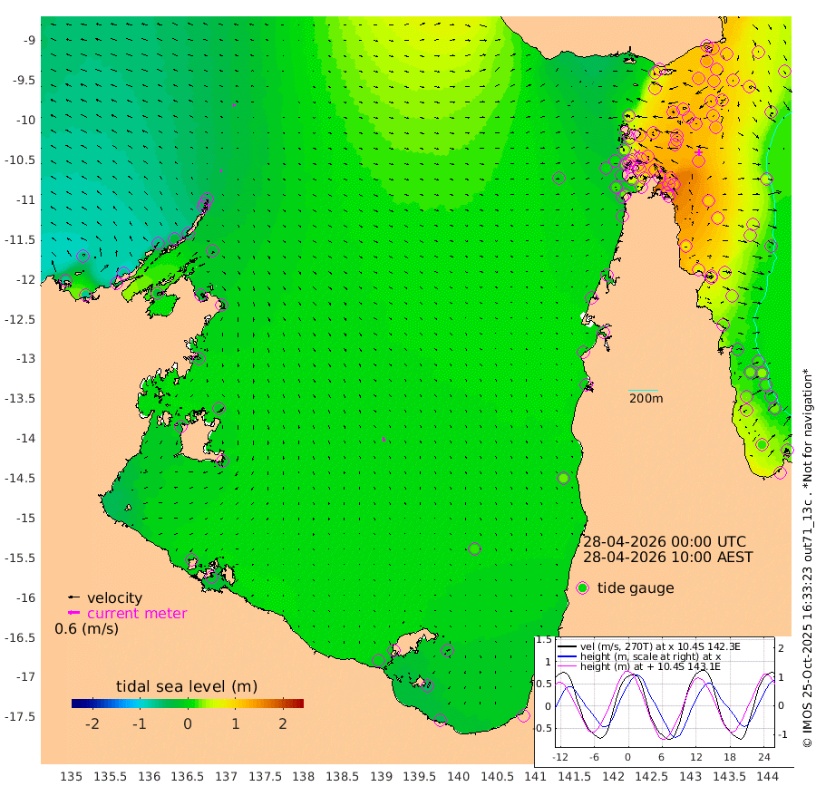 9cm/s -85T +3cm/s rms + 7cm/s -42T. ARA-GOC87 57m 22cm/s 170T +3cm/s rms + 2cm/s -2T. ARA-GOC87 60m 16cm/s -86T +2cm/s rms + 3cm/s 61T. ARA-GOC87 47m 129cm Daru 123cm Bobo Island 42cm Meer Island Barge 72cm Bramble Cay 105cm Unnamed Cay 115cm Pearce Cay 99cm Stephens Island 104cm Merrie England Shoals 130cm Mutacomal Reef 85cm Darnley Island Barge 51cm East Cay 105cm Yorke Island Barge 116cm Rennel Island 114cm Aureed Island 125cm Dungeness Reef 117cm Zagai Island 128cm Yam Island 87cm Dauan Island 81cm Saibai Island 97cm Phipi Reef 127cm Warrior Reef - West 72cm Mabuiag Island Barge 121cm Half Way Island 125cm Coconut Island 132cm Dugong Islet 130cm Poll Island 135cm Kirkcaldie Reef 122cm Suarji Island 121cm Sue Islet 42cm Hawkesbury Island 114cm Alert Patches 123cm Twin Island 36cm Badu Island 126cm St Pauls (Moa Island) 65cm Kubin (Moa Island) 97cm Ince Point 83cm Thursday Island 86cm Nardana Patches 59cm Turtle Head 41cm Round Island 23cm Goods Island 1cm Booby Island 10cm White Rocks Area -7cm Carpentaria 108cm Papou Point -10cm Bampfield Head -1cm Crab Island 16cm Red Wallis Island 56cm Packe Island 145cm Harrington Reef 30cm Herald Camp 41cm Sharp Point 60cm Red Island Point 83cm Possession Island 115cm Alpha Rock 132cm Frederick Point 129cm Wyborn Reef Light 132cm Tetley Island 50cm Triangle Reef 134cm Turtle Head Island 49cm Maclennan Cay 13cm Raine Island 99cm Mcsweeny Reef 82cm Collette Reef 40cm Shadwell Reef 89cm Hannibal Island 75cm Round Point -2cm Vrilya Point 65cm Cape Grenville 56cm Hicks Island 51cm Sir Charles Hardy Island 21cm Harvey Island 42cm Kay Reef 27cm Rocky Island 13cm Chapman Island 15cm Ham Reef 23cm Jubilee Reef 31cm Night Island 19cm Unnamed Reef No. 3 28cm Morris Island 15cm 1st 3 Mile Opening 25cm Creech Reef 33cm Fife Island 19cm Eden Reef 26cm Stanley Island 37cm Normanby River -73cm Yabooma Island -72cm Hutchison River -74cm Elcho Island -63cm North West Crocodile Island -38cm Cape Wessel -60cm Stevens Island -24cm Guluwuru Island -66cm Hopeful Bay -50cm Auster Point -37cm Two Island Bay -41cm Cadell Strait -27cm Mallison Island -26cm Melville Bay (Gove Harbour) -28cm Truant Island -18cm Cape Arnhem -18cm Cape Grey -11cm Hawk Island -25cm Milner Bay (Groote Eylandt) -12cm Cape Beatrice -1cm West Island -8cm Centre Island 4cm Mornington Island -2cm West Wellesley Islands -11cm Bountiful Island -38cm Albert River Mouth -46cm Sweers Island -20cm Karumba 21cm Nassau River Offshore 23cm Christmas Creek 1cm Archer River 4cm Boyd Point -7cm Weipa (Humbug Point) 1cm Pennefather River -1cm Cullen Point