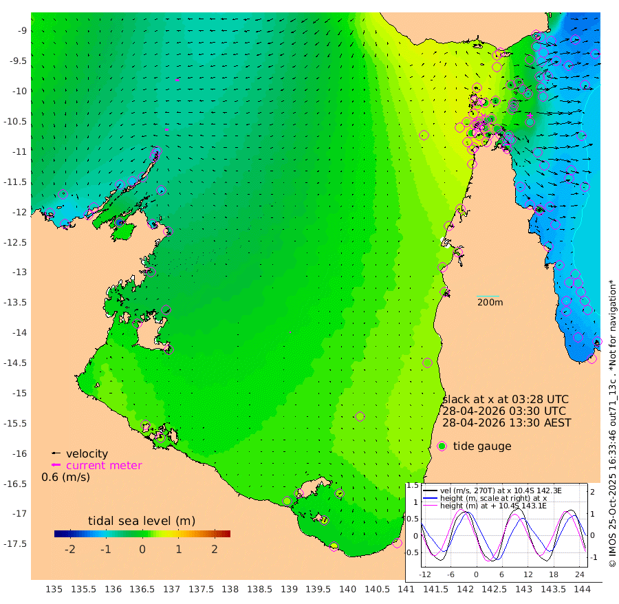 22cm/s -92T +3cm/s rms + 7cm/s -42T. ARA-GOC87 57m 7cm/s -147T +3cm/s rms + 2cm/s -2T. ARA-GOC87 60m 24cm/s -97T +2cm/s rms + 3cm/s 61T. ARA-GOC87 47m -85cm Daru -100cm Bobo Island -102cm Meer Island Barge -117cm Bramble Cay -110cm Unnamed Cay -105cm Pearce Cay -116cm Stephens Island -117cm Merrie England Shoals -93cm Mutacomal Reef -108cm Darnley Island Barge -116cm East Cay -94cm Yorke Island Barge -97cm Rennel Island -93cm Aureed Island -63cm Dungeness Reef -13cm Zagai Island -11cm Yam Island 63cm Dauan Island 54cm Saibai Island 50cm Phipi Reef -1cm Warrior Reef - West 50cm Mabuiag Island Barge -91cm Half Way Island -74cm Coconut Island -81cm Dugong Islet -40cm Poll Island -44cm Kirkcaldie Reef -13cm Suarji Island -32cm Sue Islet 50cm Hawkesbury Island 0cm Alert Patches -9cm Twin Island 57cm Badu Island 11cm St Pauls (Moa Island) 33cm Kubin (Moa Island) 19cm Ince Point 28cm Thursday Island 27cm Nardana Patches 33cm Turtle Head 28cm Round Island 41cm Goods Island 53cm Booby Island 37cm White Rocks Area 40cm Carpentaria 2cm Papou Point 14cm Bampfield Head 54cm Crab Island 50cm Red Wallis Island 32cm Packe Island -90cm Harrington Reef 36cm Herald Camp 15cm Sharp Point 32cm Red Island Point 4cm Possession Island -21cm Alpha Rock -43cm Frederick Point -90cm Wyborn Reef Light -76cm Tetley Island -81cm Triangle Reef -93cm Turtle Head Island -96cm Maclennan Cay -91cm Raine Island -104cm Mcsweeny Reef -103cm Collette Reef -92cm Shadwell Reef -117cm Hannibal Island -123cm Round Point 59cm Vrilya Point -113cm Cape Grenville -110cm Hicks Island -113cm Sir Charles Hardy Island -34cm Harvey Island -117cm Kay Reef -102cm Rocky Island -100cm Chapman Island -96cm Ham Reef -97cm Jubilee Reef -90cm Night Island -98cm Unnamed Reef No. 3 -108cm Morris Island -95cm 1st 3 Mile Opening -100cm Creech Reef -110cm Fife Island -122cm Eden Reef -110cm Stanley Island -127cm Normanby River -92cm Yabooma Island -109cm Hutchison River -86cm Elcho Island -73cm North West Crocodile Island -100cm Cape Wessel -99cm Stevens Island -105cm Guluwuru Island -92cm Hopeful Bay -93cm Auster Point -88cm Two Island Bay -103cm Cadell Strait -163cm Mallison Island -92cm Melville Bay (Gove Harbour) -101cm Truant Island -65cm Cape Arnhem -42cm Cape Grey -25cm Hawk Island -4cm Milner Bay (Groote Eylandt) 7cm Cape Beatrice 33cm West Island 35cm Centre Island 36cm Mornington Island 32cm West Wellesley Islands 32cm Bountiful Island 59cm Albert River Mouth 51cm Sweers Island 64cm Karumba 37cm Nassau River Offshore 29cm Christmas Creek 29cm Archer River 28cm Boyd Point 29cm Weipa (Humbug Point) 45cm Pennefather River 48cm Cullen Point