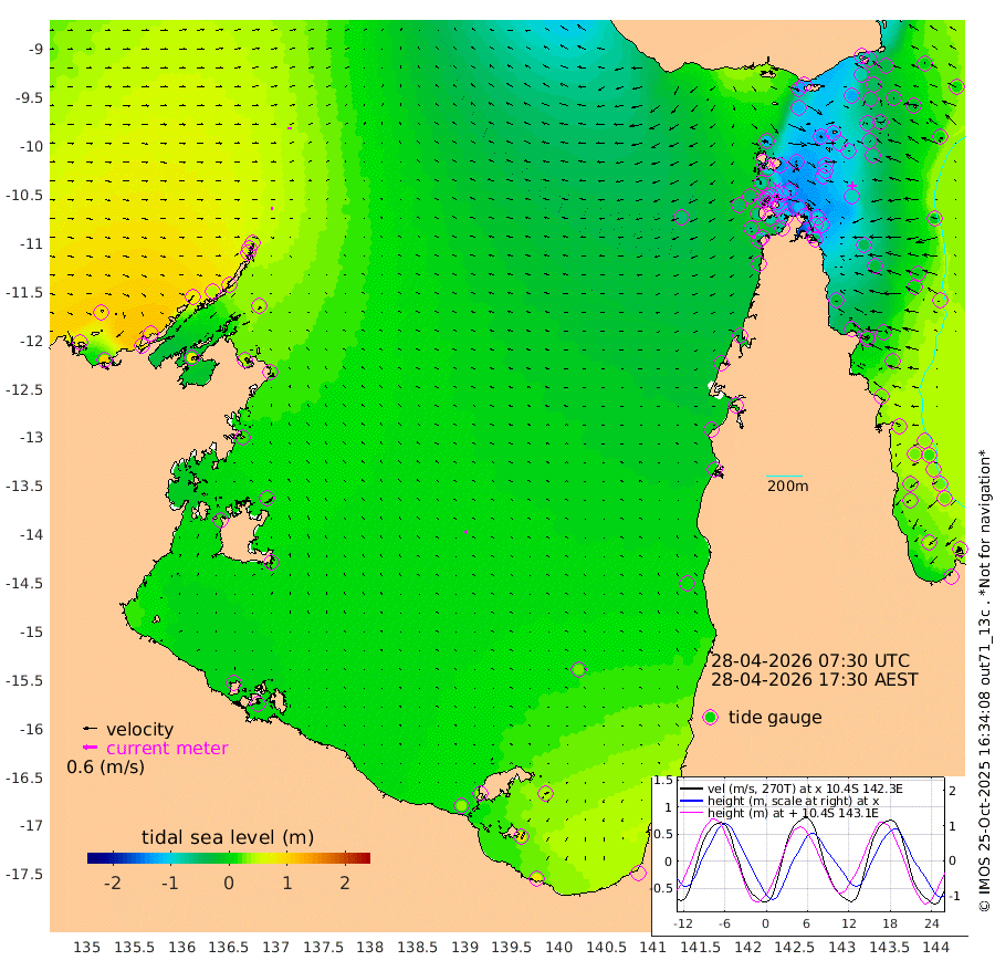 10cm/s 96T +3cm/s rms + 7cm/s -42T. ARA-GOC87 57m 12cm/s -51T +3cm/s rms + 2cm/s -2T. ARA-GOC87 60m 15cm/s 84T +2cm/s rms + 3cm/s 61T. ARA-GOC87 47m -78cm Daru -65cm Bobo Island 9cm Meer Island Barge -6cm Bramble Cay -48cm Unnamed Cay -47cm Pearce Cay -35cm Stephens Island -36cm Merrie England Shoals -76cm Mutacomal Reef -27cm Darnley Island Barge 11cm East Cay -55cm Yorke Island Barge -60cm Rennel Island -63cm Aureed Island -87cm Dungeness Reef -121cm Zagai Island -130cm Yam Island -122cm Dauan Island -120cm Saibai Island -114cm Phipi Reef -124cm Warrior Reef - West -113cm Mabuiag Island Barge -66cm Half Way Island -87cm Coconut Island -85cm Dugong Islet -110cm Poll Island -107cm Kirkcaldie Reef -133cm Suarji Island -109cm Sue Islet -73cm Hawkesbury Island -118cm Alert Patches -125cm Twin Island -73cm Badu Island -140cm St Pauls (Moa Island) -94cm Kubin (Moa Island) -115cm Ince Point -107cm Thursday Island -110cm Nardana Patches -83cm Turtle Head -85cm Round Island -56cm Goods Island -47cm Booby Island -51cm White Rocks Area -55cm Carpentaria -120cm Papou Point -63cm Bampfield Head -31cm Crab Island -54cm Red Wallis Island -79cm Packe Island -95cm Harrington Reef -83cm Herald Camp -47cm Sharp Point -71cm Red Island Point -105cm Possession Island -117cm Alpha Rock -112cm Frederick Point -86cm Wyborn Reef Light -97cm Tetley Island -9cm Triangle Reef -83cm Turtle Head Island -2cm Maclennan Cay 32cm Raine Island -42cm Mcsweeny Reef -26cm Collette Reef 7cm Shadwell Reef -24cm Hannibal Island -4cm Round Point -26cm Vrilya Point -5cm Cape Grenville 1cm Hicks Island -3cm Sir Charles Hardy Island -3cm Harvey Island 18cm Kay Reef 24cm Rocky Island 36cm Chapman Island 31cm Ham Reef 25cm Jubilee Reef 18cm Night Island 33cm Unnamed Reef No. 3 27cm Morris Island 26cm 1st 3 Mile Opening 25cm Creech Reef 32cm Fife Island 45cm Eden Reef 30cm Stanley Island 31cm Normanby River 85cm Yabooma Island 98cm Hutchison River 93cm Elcho Island 84cm North West Crocodile Island 43cm Cape Wessel 80cm Stevens Island 40cm Guluwuru Island 83cm Hopeful Bay 58cm Auster Point 48cm Two Island Bay 84cm Cadell Strait 75cm Mallison Island 41cm Melville Bay (Gove Harbour) 38cm Truant Island 25cm Cape Arnhem 22cm Cape Grey 20cm Hawk Island 15cm Milner Bay (Groote Eylandt) 17cm Cape Beatrice -3cm West Island -1cm Centre Island 31cm Mornington Island 33cm West Wellesley Islands 41cm Bountiful Island 81cm Albert River Mouth 88cm Sweers Island 72cm Karumba 25cm Nassau River Offshore 10cm Christmas Creek 15cm Archer River -10cm Boyd Point 2cm Weipa (Humbug Point) -1cm Pennefather River -31cm Cullen Point