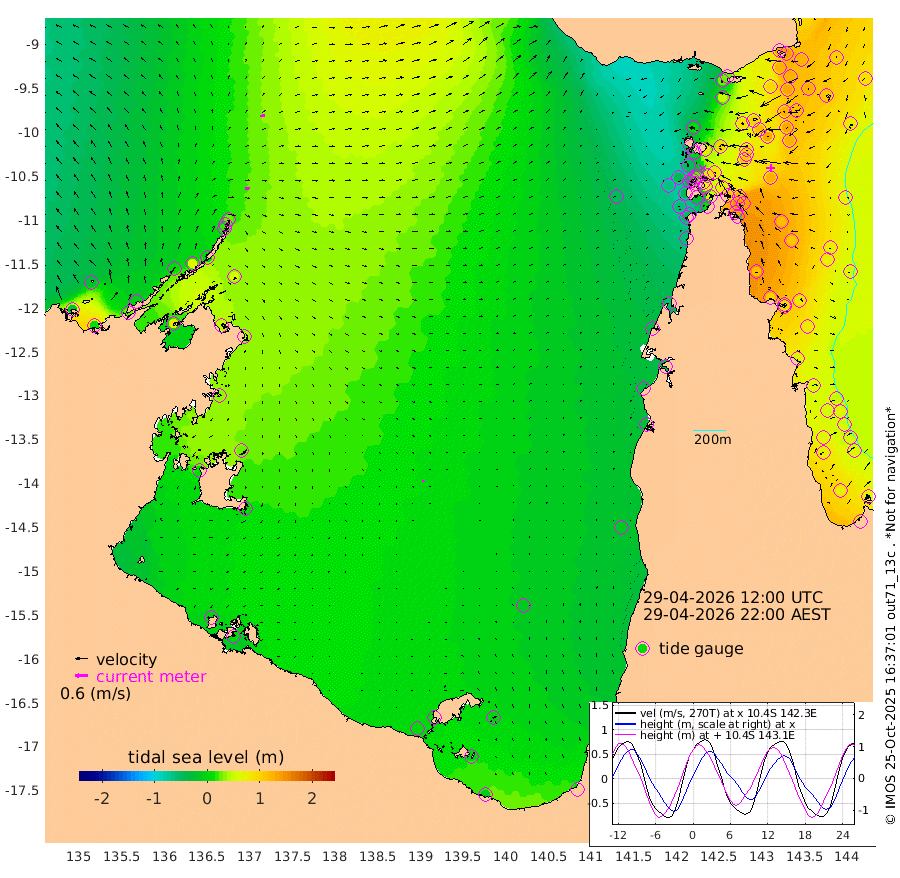 21cm/s 88T +3cm/s rms + 7cm/s -42T. ARA-GOC87 57m 7cm/s 26T +3cm/s rms + 2cm/s -2T. ARA-GOC87 60m 22cm/s 79T +2cm/s rms + 3cm/s 61T. ARA-GOC87 47m 130cm Daru 141cm Bobo Island 76cm Meer Island Barge 102cm Bramble Cay 120cm Unnamed Cay 133cm Pearce Cay 122cm Stephens Island 122cm Merrie England Shoals 126cm Mutacomal Reef 111cm Darnley Island Barge 87cm East Cay 118cm Yorke Island Barge 124cm Rennel Island 131cm Aureed Island 118cm Dungeness Reef 98cm Zagai Island 86cm Yam Island 23cm Dauan Island 26cm Saibai Island 52cm Phipi Reef 90cm Warrior Reef - West 14cm Mabuiag Island Barge 121cm Half Way Island 133cm Coconut Island 120cm Dugong Islet 108cm Poll Island 110cm Kirkcaldie Reef 102cm Suarji Island 97cm Sue Islet -49cm Hawkesbury Island 77cm Alert Patches 85cm Twin Island -24cm Badu Island 77cm St Pauls (Moa Island) -7cm Kubin (Moa Island) 45cm Ince Point 25cm Thursday Island 30cm Nardana Patches 4cm Turtle Head -15cm Round Island -36cm Goods Island -62cm Booby Island -45cm White Rocks Area -50cm Carpentaria 71cm Papou Point -38cm Bampfield Head -51cm Crab Island -54cm Red Wallis Island -18cm Packe Island 144cm Harrington Reef -53cm Herald Camp 21cm Sharp Point 7cm Red Island Point 50cm Possession Island 78cm Alpha Rock 109cm Frederick Point 129cm Wyborn Reef Light 124cm Tetley Island 70cm Triangle Reef 136cm Turtle Head Island 74cm Maclennan Cay 53cm Raine Island 117cm Mcsweeny Reef 106cm Collette Reef 71cm Shadwell Reef 117cm Hannibal Island 105cm Round Point -56cm Vrilya Point 91cm Cape Grenville 87cm Hicks Island 77cm Sir Charles Hardy Island 29cm Harvey Island 77cm Kay Reef 62cm Rocky Island 54cm Chapman Island 51cm Ham Reef 59cm Jubilee Reef 61cm Night Island 56cm Unnamed Reef No. 3 67cm Morris Island 57cm 1st 3 Mile Opening 63cm Creech Reef 70cm Fife Island 69cm Eden Reef 64cm Stanley Island 75cm Normanby River -22cm Yabooma Island 10cm Hutchison River -7cm Elcho Island -15cm North West Crocodile Island 29cm Cape Wessel 9cm Stevens Island 62cm Guluwuru Island -3cm Hopeful Bay 19cm Auster Point 7cm Two Island Bay 26cm Cadell Strait 77cm Mallison Island 48cm Melville Bay (Gove Harbour) 53cm Truant Island 43cm Cape Arnhem 36cm Cape Grey 26cm Hawk Island 14cm Milner Bay (Groote Eylandt) 10cm Cape Beatrice -1cm West Island 3cm Centre Island 12cm Mornington Island 7cm West Wellesley Islands -6cm Bountiful Island -11cm Albert River Mouth -4cm Sweers Island -12cm Karumba -8cm Nassau River Offshore -12cm Christmas Creek -27cm Archer River -30cm Boyd Point -42cm Weipa (Humbug Point) -31cm Pennefather River -58cm Cullen Point